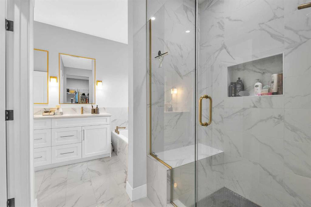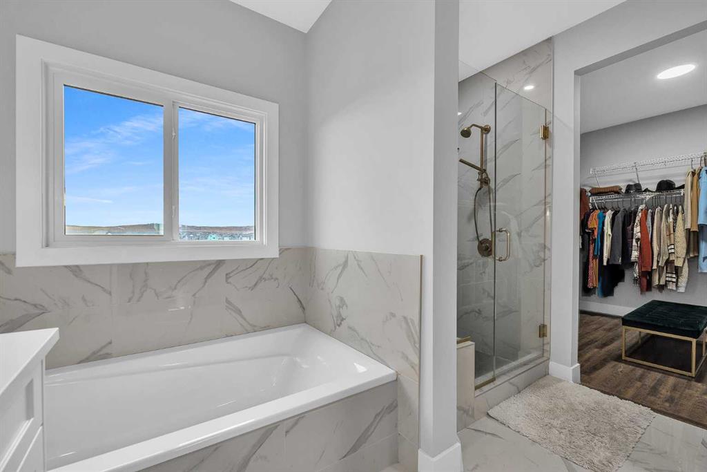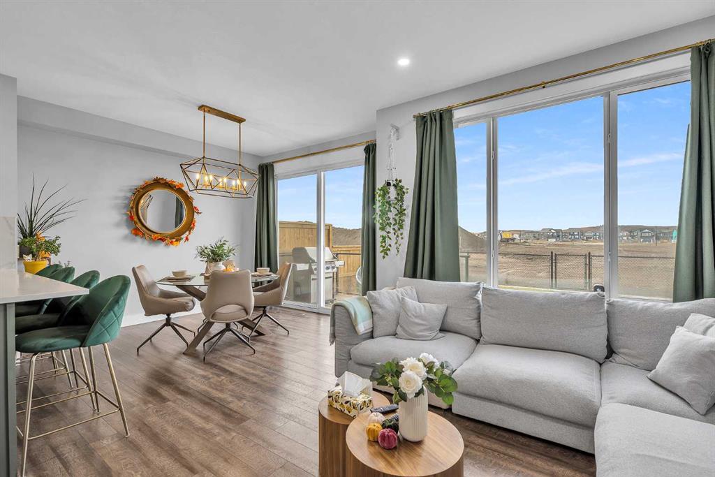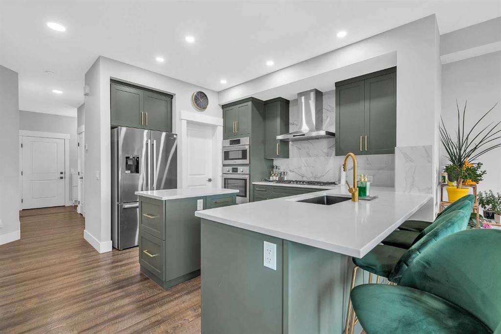 5 Bedrooms Above Grade | 4 Bathrooms | Three Level Design | Backs Onto Green Space | Upgraded Bosch Appliances | 9 ft Ceilings on All Levels | Heated Garage. Welcome to this stunning 2024 built home in Pine Creek, offering more than 2,700 square feet across three beautifully designed levels. Warm, bright, and thoughtfully upgraded, this home blends comfort, style, and modern convenience in a truly welcoming way. The main floor features a sun filled open layout with upgraded LVP flooring and a gorgeous chef’s kitchen equipped with Bosch appliances, a gas cooktop, hood fan, quartz countertops throughout, and a Silgranit upgraded sink. The kitchen flows seamlessly into the bright living and dining areas, all overlooking the peaceful green space behind the home. This level also includes a main floor bedroom and a full four piece bathroom, offering exceptional flexibility for guests, extended family, or a private workspace. The second level offers three spacious bedrooms, each with its own walk in closet, along with a bright bonus room and a full four piece bathroom. One bedroom enjoys its own ensuite, and the laundry room is conveniently located on this floor. The third level is a private retreat featuring the primary bedroom, a relaxing five piece ensuite, a generous walk in closet, a sunny balcony, and an additional flex room perfect for a lounge, workspace, or nursery. This home includes nine foot ceilings on every level, CAT 6 wiring throughout, a water softener, central AC, EV charger rough in, a gas line for backyard barbecues, and a heated garage for year round comfort. The backyard is a standout feature, backing directly onto quiet green space with no neighbors behind. Modern, spacious, and perfectly located in beautiful Pine Creek, this home is ready to welcome its next family.