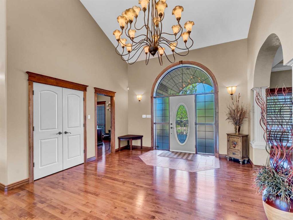 Welcome to your dream home! This extraordinary custom built riverfront estate is beautifully situated on a private .99 acre lot, with its blend of luxurious interior features, architectural distinction, and peaceful surroundings, this home is truly a rare offering. Whether you are looking to entertain in grand style or retreat into your own sanctuary, this property delivers on every level. Enter through an impressive stone columned portico with dramatic archways and recessed lighting, setting the tone for the sophisticated interiors that lie beyond. The richly textured stone is complemented by the stunning custom glass front door with oval insert and transom window, filling the entryway with natural light. Soaring vaulted ceilings create a sense of value and space, anchored by a custom built stone fireplace, the perfect setting for cozy nights or elegant evenings. Oversized triple pane windows bring the outdoors in ,flooding the space with natural light and offering outstanding views of the river. Rich hardwood flooring flows throughout, seamlessly connecting open spaces with warmth and elegance. Gourmet kitchen designed to satisfy the home chef: custom cabinetry, granite countertops, high end appliances, double ovens, warming oven, induction cooktop, large island with sink, a second island with seating, and walk thru pantry. And you will love the formal dining for all those special moments with family and friends. The massive primary bedroom offers a personal sanctuary, private sitting area and cozy nook with large windows that provides a quiet place to unwind, read, or enjoy morning coffee with river views. French doors open to a sun filled room, a perfect yoga space and a hot tub, ideal for relaxing year round while enjoying the surrounding nature. Luxurious spa like ensuite with infloor heat, soaking tub, tiled shower, double vanities, and a generous boutique style walk in closet featuring custom cabinetry. The large laundry room with sink is also conveniently located on the mail floor. The additional bathroom with steam shower is also the perfect addition. Two additional spacious bedrooms with ample closet space and home office/bedroom. There is also a large theatre room with 2 pc bath and Large bonus room with a beautiful view, the space is endless. Step outside to your own private oasis - a sprawling, multi-level brick patio designed for both entertaining and peaceful relaxation. Maximizing the breath taking river views, this beautiful crafted outdoor space offers seamless blend of charm, functionality and natural beauty. Plenty of room for gardening, perfect for kayaking, fishing, floating or simply enjoying the view! Just when you think it can't get any better, wait until you see this massive garage with in floor heat, 2 pc bathroom, and it also includes a large separate bay for your car collection with glass viewing windows. This exquisite property showcases impeccable craftsmanship and timeless architectural details throughout.