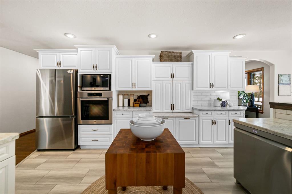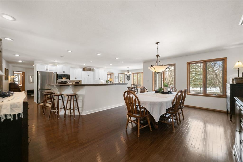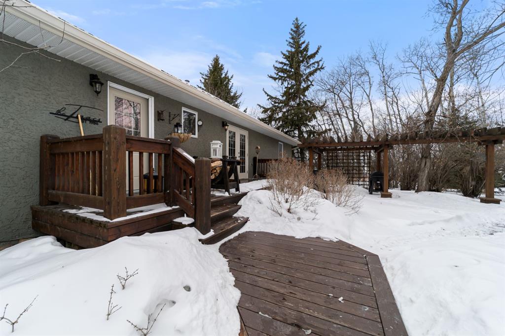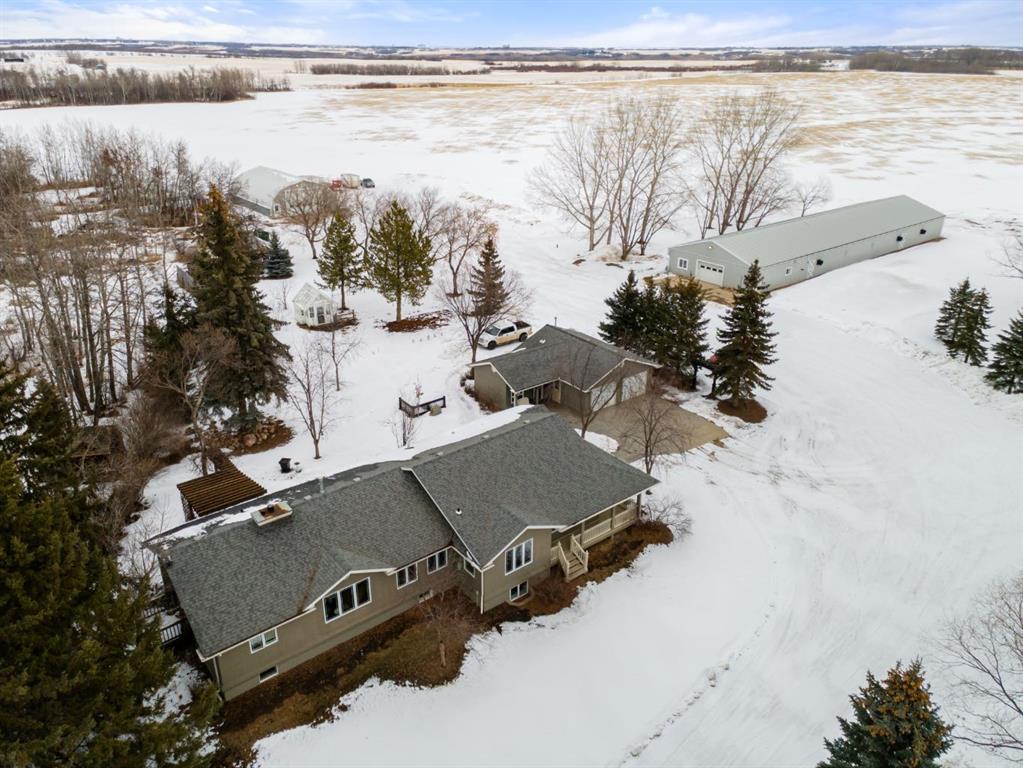 Welcome to this immaculately maintained 9.3 acreage offering the perfect blend of space, comfort, and a feeling of paradise- just minutes from Dried Meat Lake. This impressive 2000 square foot bungalow features a thoughtfully designed layout with a large addition completed in 2001, highlighted by a stunning main floor retreat. This spacious room includes a beautiful ensuite with a relaxing soaking tub and access to a private balcony - the perfect spot for a future hot tub. The newly renovated kitchen is the heart of the home, complete with a massive island designed for gathering, updated finishes, and plenty of space to cook and entertain. This home features a large front entry , 2 living rooms- a formal space, and a cozy spot with a wood burning fireplace, and large dining area. Convenience continues with main floor laundry, complete with sink, and additional storage. The spacious basement features 5 bedrooms and 2 full bathrooms!! Perfect for a growing family! Not to mention 2 stairways on both sides of the home. There's a large recreation space and office area with built-in cabinets- great for crafts, school work and storage. Outside, the property truly shines with exceptional outbuildings and outdoor living areas. The heated double garage features in-floor heat, epoxy floor, full garden- prep kitchen, 3 piece bathroom, and a separate office, man-cave, or guest sleeping area complete with a stunning rock gas fireplace. Additional outbuildings include a 40x120 storage barn (partially heated), and a 40x60 Quonset with in-floor heat and floor drain, offering incredible versatility for equipment, storage, hobbies, or business use with upper mezzanine for coffee breaks! Enjoy the outdoors with a beautiful stamped concrete patio and driveway, pergolas, and deck space perfect for summer entertaining, along with fire pit area and wood storage ready for a summer gathering! This home has 2 furnaces, new HWT, and a brand new septic system. A rare opportunity to own a beautifully maintained acreage with exceptional space, privacy, and amenities- a truly must see.