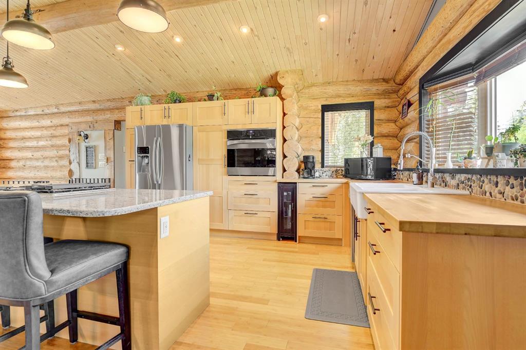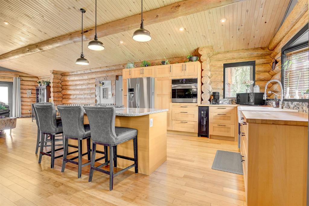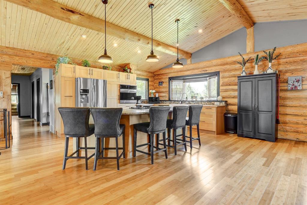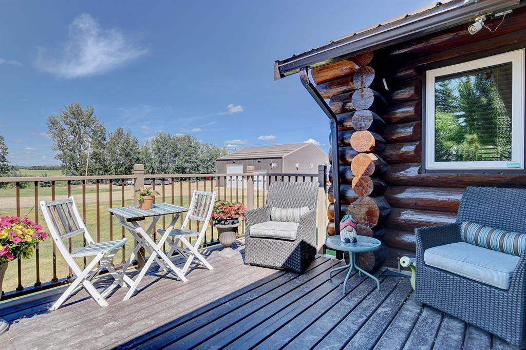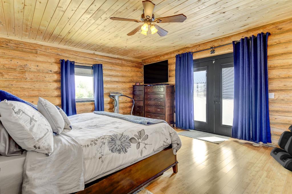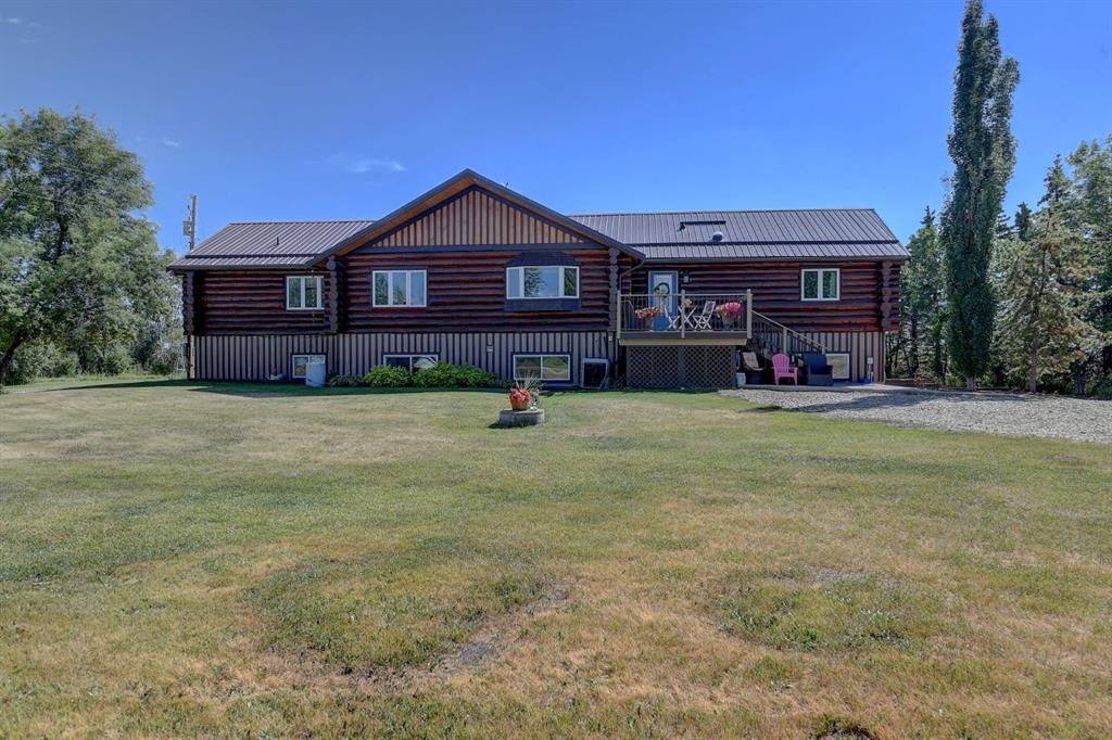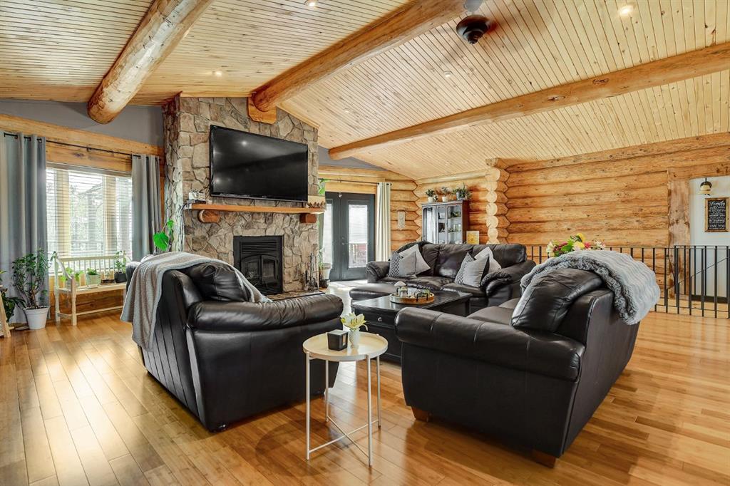 PRIVATE GATED 7-ACRE RETREAT WITH LUXURY LOG HOME AND 60’x60’ HEATED SHOP! Welcome to this extraordinary 7-acre gated and fully fenced estate, showcasing a stunning 2,518 sq ft custom log home built in 2009. This one-of-a-kind property is the perfect blend of rustic elegance and modern comfort, featuring 4 spacious bedrooms, 3 luxurious bathrooms, and a heated 26’ x 28’ attached garage. Step into the open-concept main floor, where you’ll find soaring ceilings, warm bamboo flooring, and a cozy wood-burning fireplace in the expansive living area. The chef’s kitchen is a true highlight with stainless steel appliances, a massive island with quartz counter tops, and ample cabinetry—perfect for entertaining. Enjoy ultimate relaxation in the massive primary suite complete with access to the private deck, pool, and hot tub. The ensuite boasts a steam shower and jetted jacuzzi tub. Three additional bedrooms, a full bathroom with charming clawfoot tub, main floor laundry, and deck access from both the primary and living areas complete the main floor. The fully finished basement features in-floor heating, a large craft room (easily converted back to a 5th bedroom), a gym area, a spacious theatre room, a third full bathroom, and a built-in sauna. Extensive Upgrades Include: • All exterior logs professionally refinished with premium log oil stain • All surrounding decks refinished with high-quality products • New 200,000 BTU boiler • New high-velocity air exchanger • New Boiler Mate hot water system • Central A/C • In-floor basement heat + forced air heating throughout Backyard Oasis: • Above-ground pool with gas heater • Hot tub in enclosed gazebo • 3 natural gas BBQ hookups • Private powered entrance gate Massive 60’ x 60’ Heated Shop: • Fully finished with 11’ x 48’ mezzanine man cave • In-floor heat with insulated floor • Full-length radiant make-up heater • Dual stainless steel sink, shower, RV sewer dump • 50-amp interior & exterior RV plugs • Multiple 20-amp plugs throughout • 220V outlets for welder, air compressor, and pressure washer *. Dug out water source for water all outside areas and trees This exceptional property offers peace, privacy, and high-end amenities rarely found together. Whether you’re seeking a luxurious family retreat or a hobbyist’s paradise, this property delivers it all.