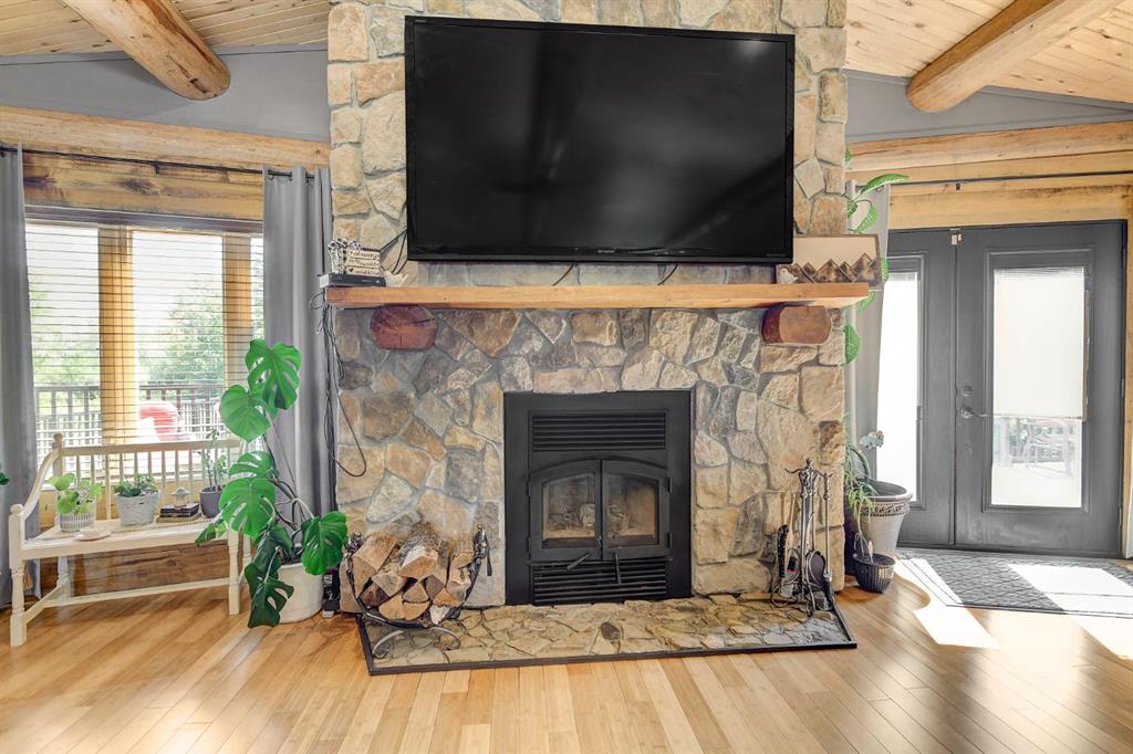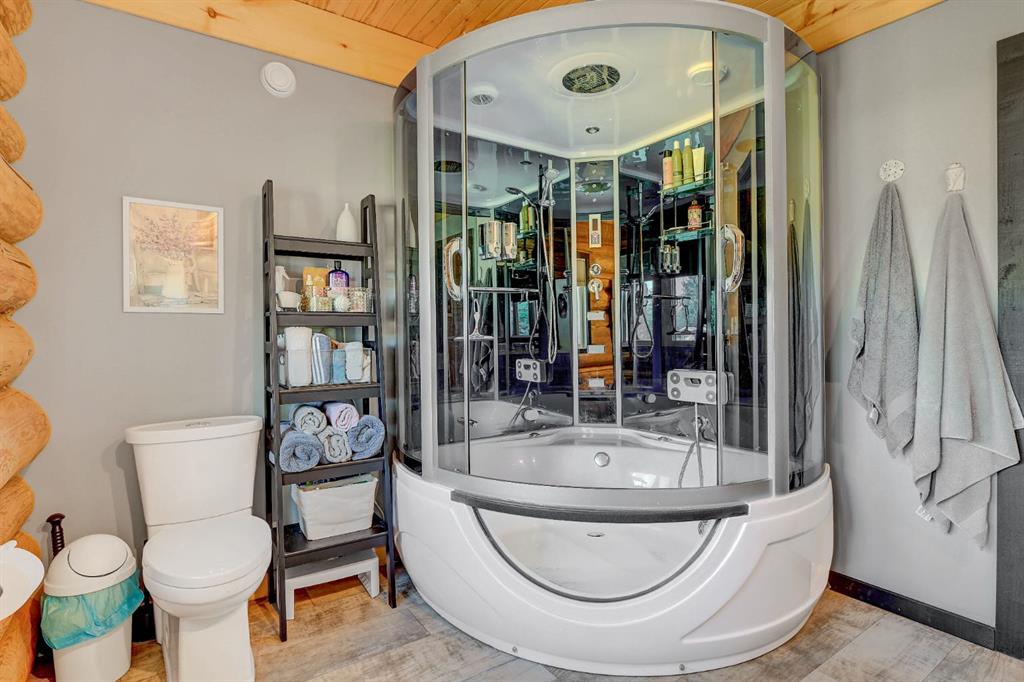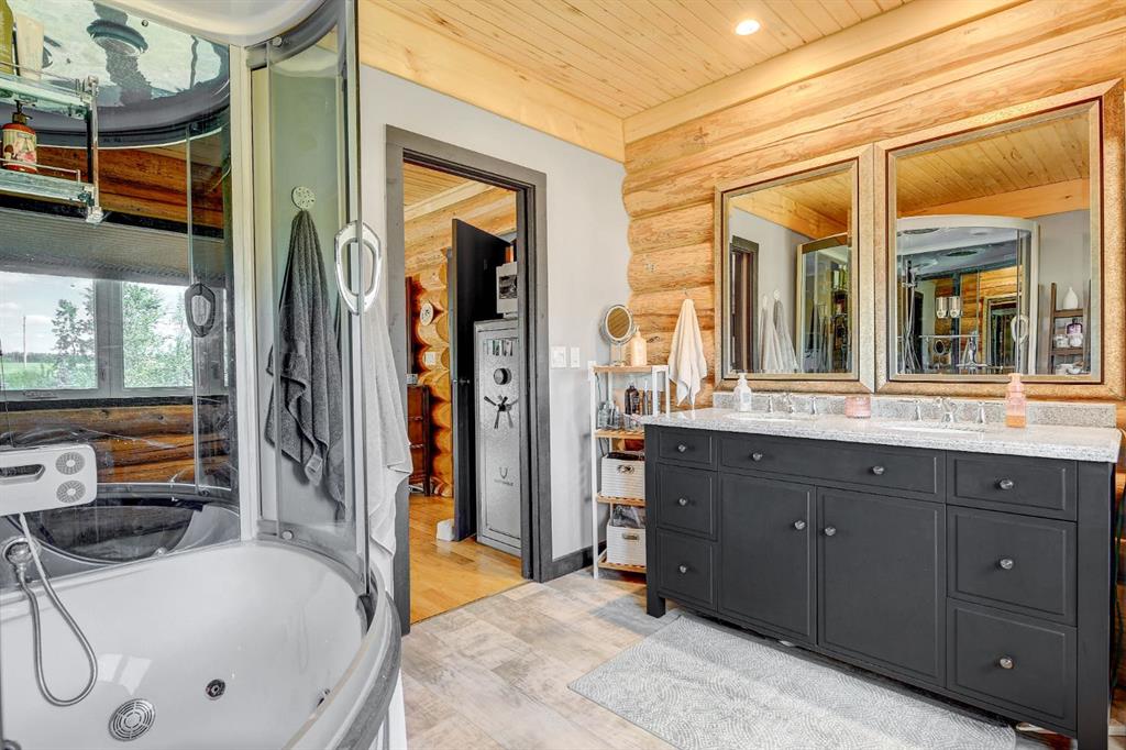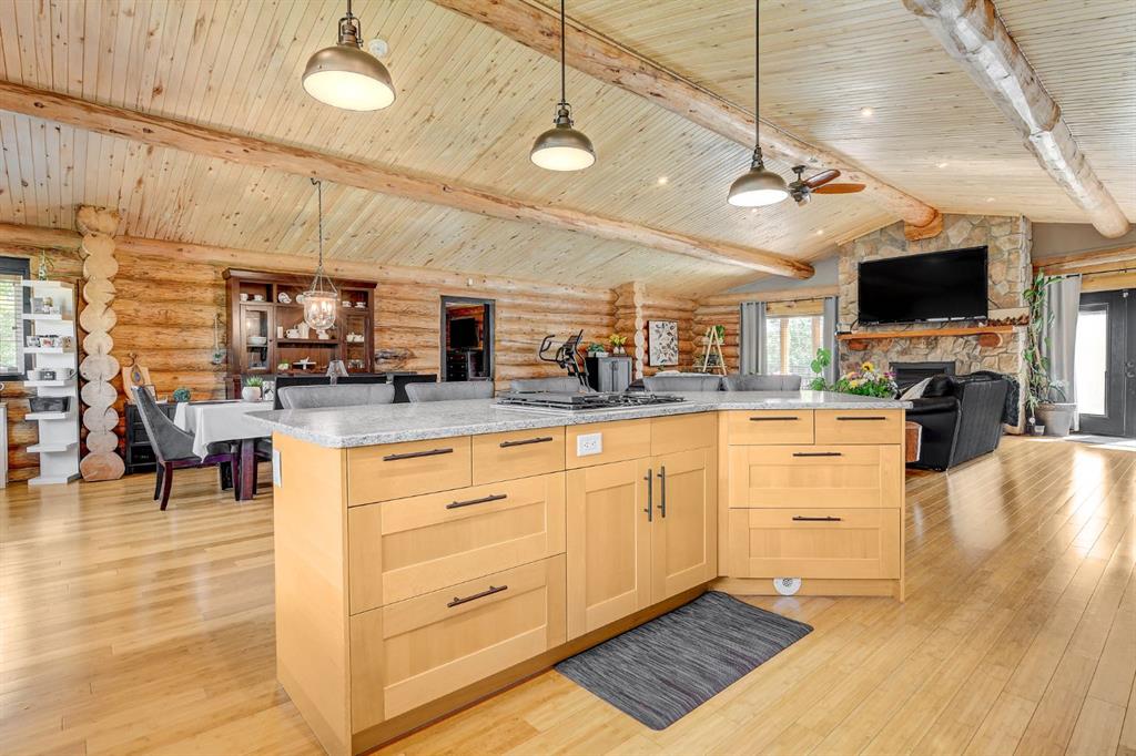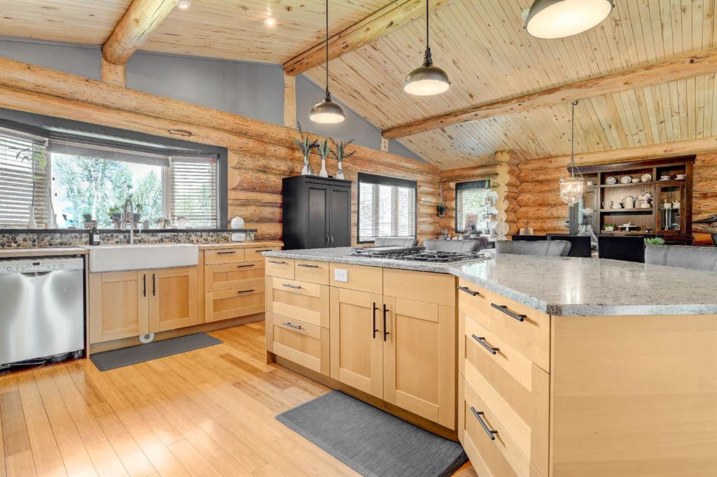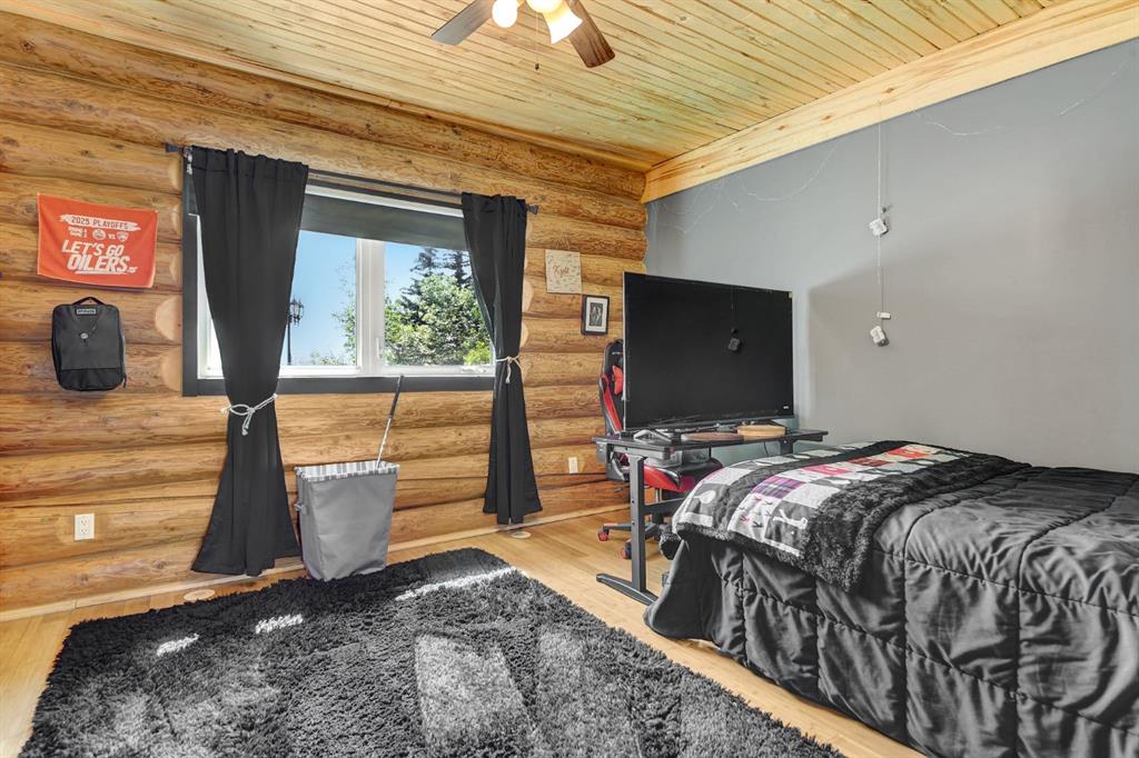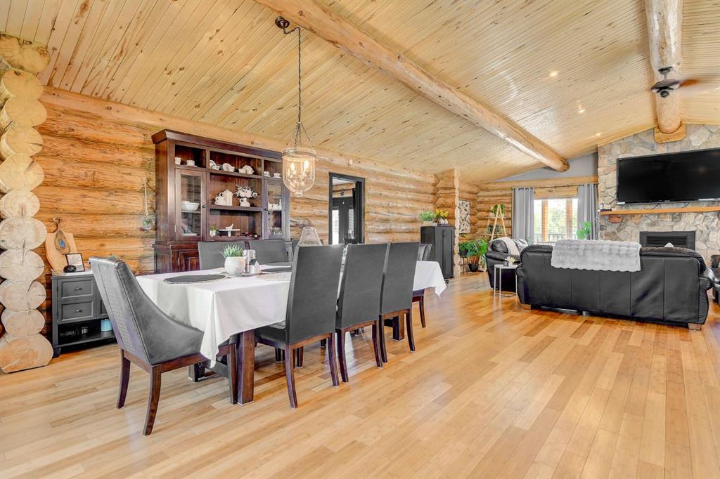PRIVATE GATED 7-ACRE RETREAT WITH LUXURY LOG HOME AND 60’x60’ HEATED SHOP! Welcome to this extraordinary 7-acre gated and fully fenced estate, showcasing a stunning 2,518 sq ft custom log home built in 2009. This one-of-a-kind property is the perfect blend of rustic elegance and modern comfort, featuring 4 spacious bedrooms, 3 luxurious bathrooms, and a heated 26’ x 28’ attached garage. Step into the open-concept main floor, where you’ll find soaring ceilings, warm bamboo flooring, and a cozy wood-burning fireplace in the expansive living area. The chef’s kitchen is a true highlight with stainless steel appliances, a massive island with quartz counter tops, and ample cabinetry—perfect for entertaining. Enjoy ultimate relaxation in the massive primary suite complete with access to the private deck, pool, and hot tub. The ensuite boasts a steam shower and jetted jacuzzi tub. Three additional bedrooms, a full bathroom with charming clawfoot tub, main floor laundry, and deck access from both the primary and living areas complete the main floor. The fully finished basement features in-floor heating, a large craft room (easily converted back to a 5th bedroom), a gym area, a spacious theatre room, a third full bathroom, and a built-in sauna. Extensive Upgrades Include: • All exterior logs professionally refinished with premium log oil stain • All surrounding decks refinished with high-quality products • New 200,000 BTU boiler • New high-velocity air exchanger • New Boiler Mate hot water system • Central A/C • In-floor basement heat + forced air heating throughout Backyard Oasis: • Above-ground pool with gas heater • Hot tub in enclosed gazebo • 3 natural gas BBQ hookups • Private powered entrance gate Massive 60’ x 60’ Heated Shop: • Fully finished with 11’ x 48’ mezzanine man cave • In-floor heat with insulated floor • Full-length radiant make-up heater • Dual stainless steel sink, shower, RV sewer dump • 50-amp interior & exterior RV plugs • Multiple 20-amp plugs throughout • 220V outlets for welder, air compressor, and pressure washer *. Dug out water source for water all outside areas and trees This exceptional property offers peace, privacy, and high-end amenities rarely found together. Whether you’re seeking a luxurious family retreat or a hobbyist’s paradise, this property delivers it all.