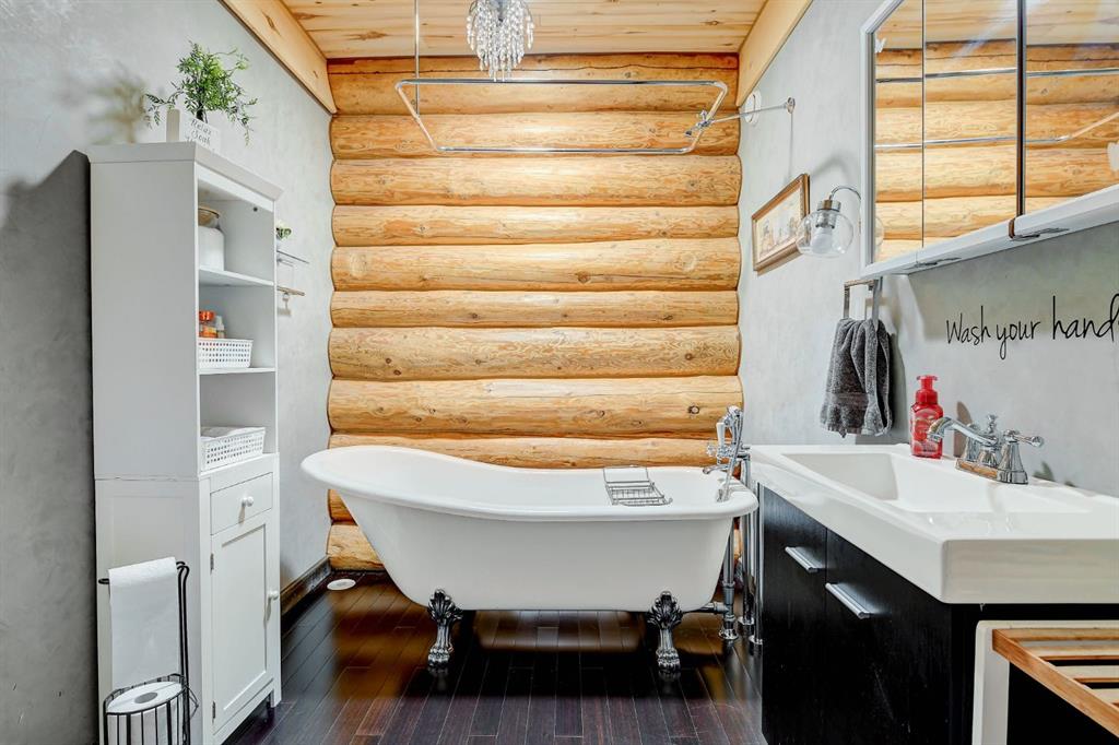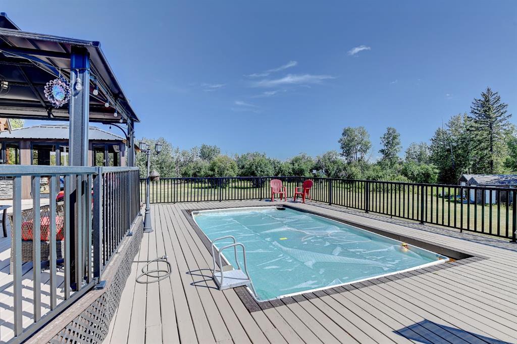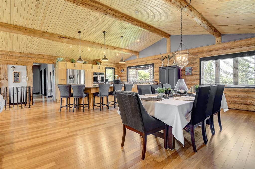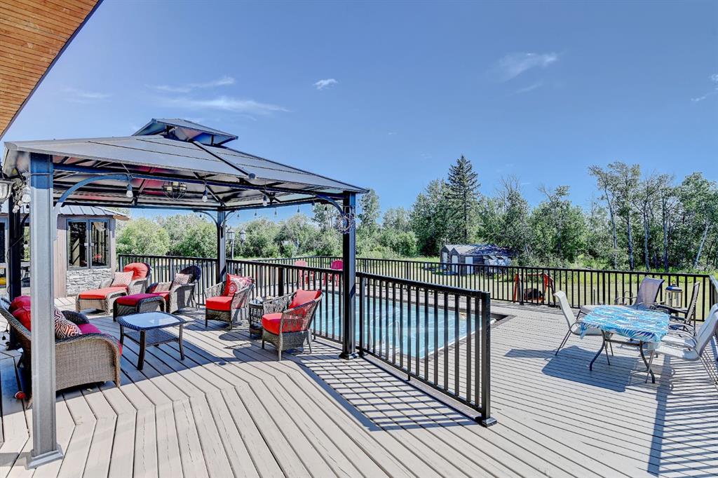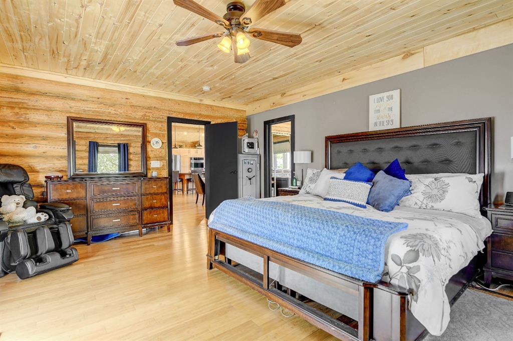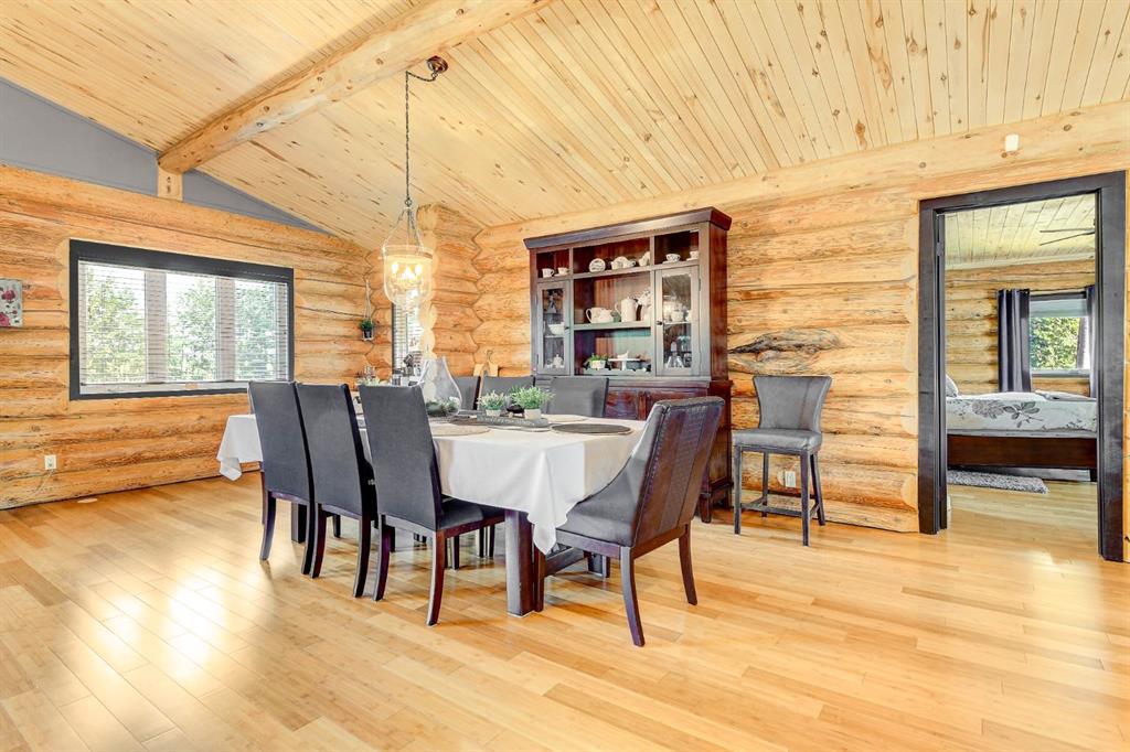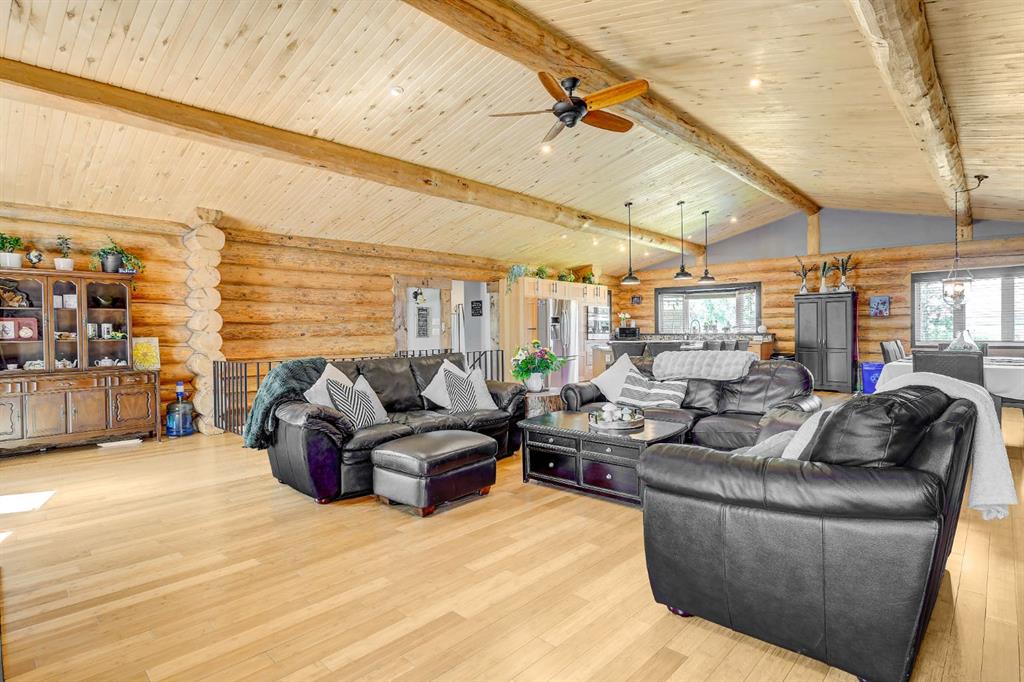 PRIVATE GATED 7-ACRE RETREAT WITH LUXURY LOG HOME AND 60’x60’ HEATED SHOP! Welcome to this extraordinary 7-acre gated and fully fenced estate, showcasing a stunning 2,518 sq ft custom log home built in 2009. This one-of-a-kind property is the perfect blend of rustic elegance and modern comfort, featuring 4 spacious bedrooms, 3 luxurious bathrooms, and a heated 26’ x 28’ attached garage. Step into the open-concept main floor, where you’ll find soaring ceilings, warm bamboo flooring, and a cozy wood-burning fireplace in the expansive living area. The chef’s kitchen is a true highlight with stainless steel appliances, a massive island with quartz counter tops, and ample cabinetry—perfect for entertaining. Enjoy ultimate relaxation in the massive primary suite complete with access to the private deck, pool, and hot tub. The ensuite boasts a steam shower and jetted jacuzzi tub. Three additional bedrooms, a full bathroom with charming clawfoot tub, main floor laundry, and deck access from both the primary and living areas complete the main floor. The fully finished basement features in-floor heating, a large craft room (easily converted back to a 5th bedroom), a gym area, a spacious theatre room, a third full bathroom, and a built-in sauna. Extensive Upgrades Include: • All exterior logs professionally refinished with premium log oil stain • All surrounding decks refinished with high-quality products • New 200,000 BTU boiler • New high-velocity air exchanger • New Boiler Mate hot water system • Central A/C • In-floor basement heat + forced air heating throughout Backyard Oasis: • Above-ground pool with gas heater • Hot tub in enclosed gazebo • 3 natural gas BBQ hookups • Private powered entrance gate Massive 60’ x 60’ Heated Shop: • Fully finished with 11’ x 48’ mezzanine man cave • In-floor heat with insulated floor • Full-length radiant make-up heater • Dual stainless steel sink, shower, RV sewer dump • 50-amp interior & exterior RV plugs • Multiple 20-amp plugs throughout • 220V outlets for welder, air compressor, and pressure washer *. Dug out water source for water all outside areas and trees This exceptional property offers peace, privacy, and high-end amenities rarely found together. Whether you’re seeking a luxurious family retreat or a hobbyist’s paradise, this property delivers it all.