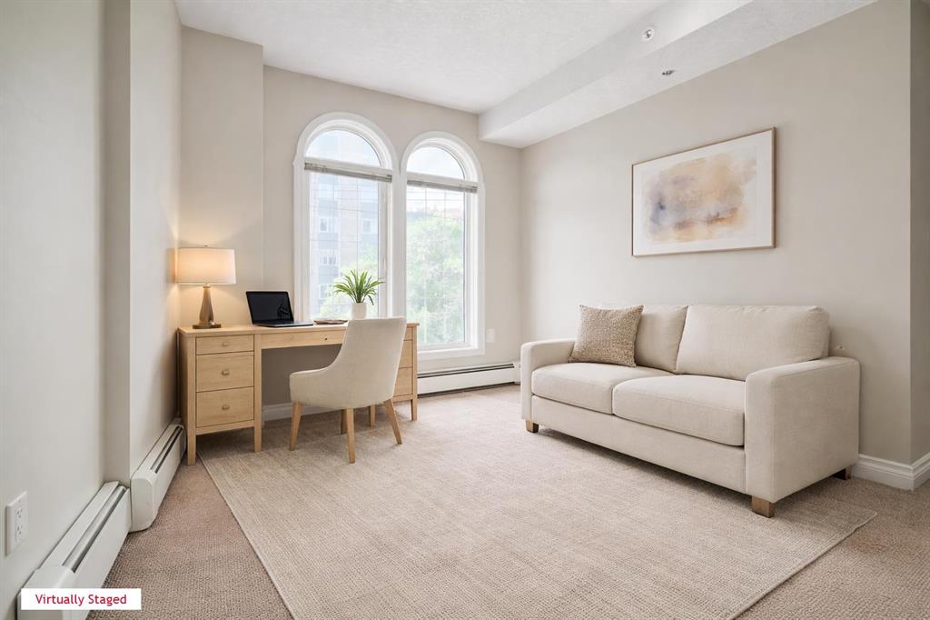 Forget the noise of the city and step into this sun-drenched, south-facing retreat. Perfectly positioned on the quiet side of the building—and ELEVATED ON THE THIRD FLOOR —this 826 sq. ft. home offers the rare combination of urban energy and total tranquillity. The chef-inspired kitchen is the heart of the home, featuring premium granite countertops, a GAS RANGE, and a central social island made for entertaining. After dinner, cozy up by the gas fireplace or head out to your private south-facing 91 sq. ft. balcony (complete with a BBQ gas hookup) to soak up the sun. The “split-wing” floor plan ensures total privacy, with the primary suite featuring mirrored closets and boasting a spa-like soaker tub in the four-piece ensuite. The second bedroom offers easy access to a second bathroom with a sleek walk-in shower. In-suite laundry with ample storage completes the home. With titled underground parking and Walk & Bike Scores that put Calgary’s best eateries and the Bow River pathways at your doorstep! Come and see where inner-city convenience meets comfort and tranquillity with this outstanding Beltline opportunity.
