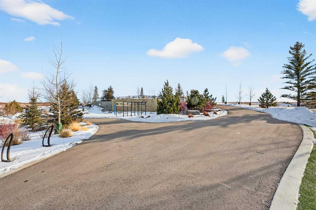 Experience the height of sophisticated living in this highly coveted luxury townhome, where a generous floor plan meets modern comfort and refined finishes. Proudly presented by StreetSide – this thoughtfully designed unit features 3 bedrooms, 2.5 bathrooms, and a front attached double car garage. The heart of the home is a spacious kitchen with a large central island, polished white quartz countertops, upgraded stainless steel appliances, and elegant sliding French patio doors that open to your covered deck area—ideal for both everyday living and entertaining. Light floods into the living room with ease through the large window, while luxury vinyl plank flooring flows throughout the main floor living areas, and carpeted stairs leading to the upper level and bedrooms provide extra warmth. The primary ensuite is a private sanctuary, complete with tile flooring, double sinks, a freestanding soaker tub, and an oversized tile-and-glass shower delivering spa-inspired comfort at home. The unfinished basement with roughed-in plumbing provides future potential for additional living space tailored to your needs. Professional landscaping and fencing complete your new home. Ideally located in the award-winning community of Harmony, residents enjoy Mickelson National Golf Course, private lake amenities, scenic walking and biking trails, and a wellness-focused lifestyle—just a shorty drive from Calgary city minutes and 45 minutes from the Rocky Mountains, where nature and convenience come together effortlessly