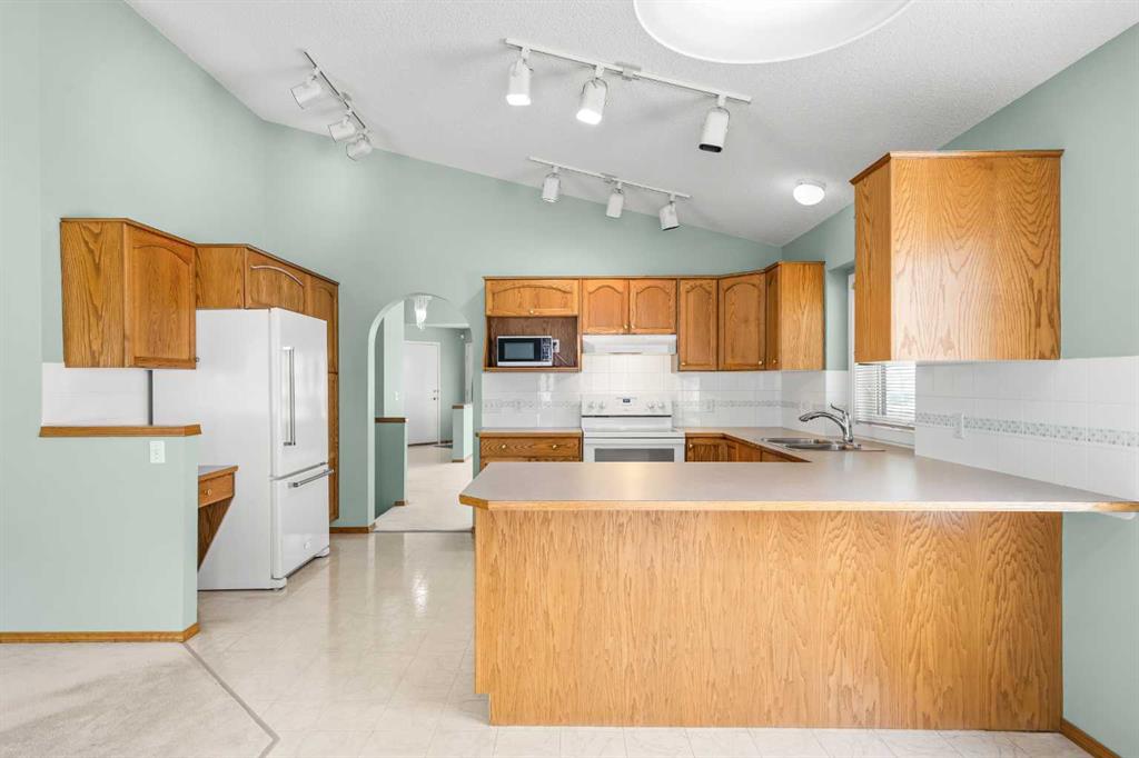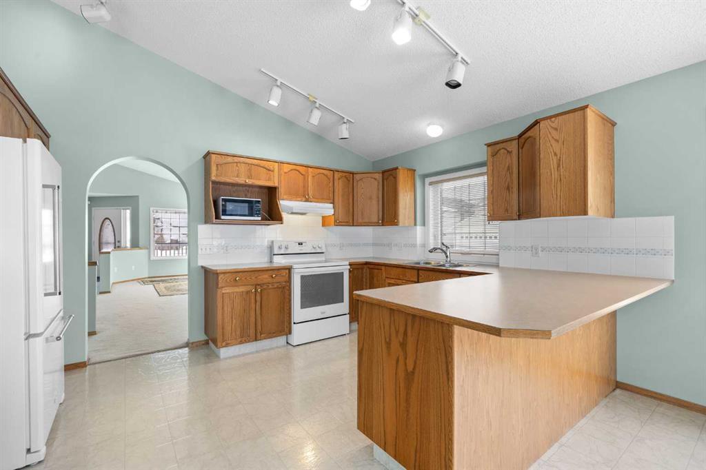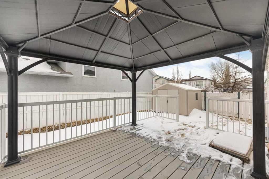 Welcome to this stunning bungalow on a desirable corner lot in the sought-after lake community of Arbour Lake, offering 2+1 bedrooms, 3 baths, and 1,449 sq ft of bright, welcoming living space with impressive vaulted ceilings throughout. Step inside and discover soaring 12-foot vaulted ceilings across the entire main level, where abundant natural light pours through numerous windows to create a bright and inviting atmosphere. The spacious Living and Dining rooms offer the perfect space for both relaxing and entertaining. The functional Kitchen boasts an extended breakfast bar ideal for meal preparation and casual dining in the Breakfast nook and adjacent to Family room with a Fireplace that is a cozy spot for your family gathering. The patio door from the Nook leads to your private Deck with gazebo, ideal for enjoying morning coffee, summer barbecues, or simply relaxing outdoors while taking in the fresh air. The Primary bedroom is a spacious retreat featuring an 11-foot vaulted ceiling, walk-in closet with closet organizer, and a 4-piece ensuite with double vanity and stand-up shower. The second well-sized bedroom also boasts an 11-foot vaulted ceiling and sits adjacent to another 4-piece bathroom. A convenient laundry closet in the hallway completes this level. The partially finished basement offers excellent versatility with a third bedroom featuring two closet spaces and a 4-piece bathroom right next to it. The rest of the basement remains open for future development with three windows providing natural light—perfect for creating a workshop, recreation area, or additional living space with ample storage options. Recent upgrades include new roof shingles, new siding, new garage door, and new basement windows—providing both peace of mind and enhanced curb appeal. An attached double garage provides convenient parking and storage. Located in the prestigious Arbour Lake community—the only lake community in Northwest Calgary—where year-round recreation meets everyday convenience. Imagine spending summers swimming, paddleboarding, and fishing at the private ten-acre lake, or enjoying skating and ice fishing in winter, all surrounded by pristine mountain views and scenic walking paths. A bus stop sits right outside your door, with Crowfoot C-Train Station nearby for easy downtown commuting. You're steps away from excellent schools, Crowfoot Crossing Shopping Centre, Melcor YMCA, Crowfoot Public Library, and neighborhood parks, with quick access to Crowchild Trail and Stoney Trail. This is more than a home—it's a lifestyle of tranquility, recreation, and community living in one of Calgary's most sought-after Northwest communities!