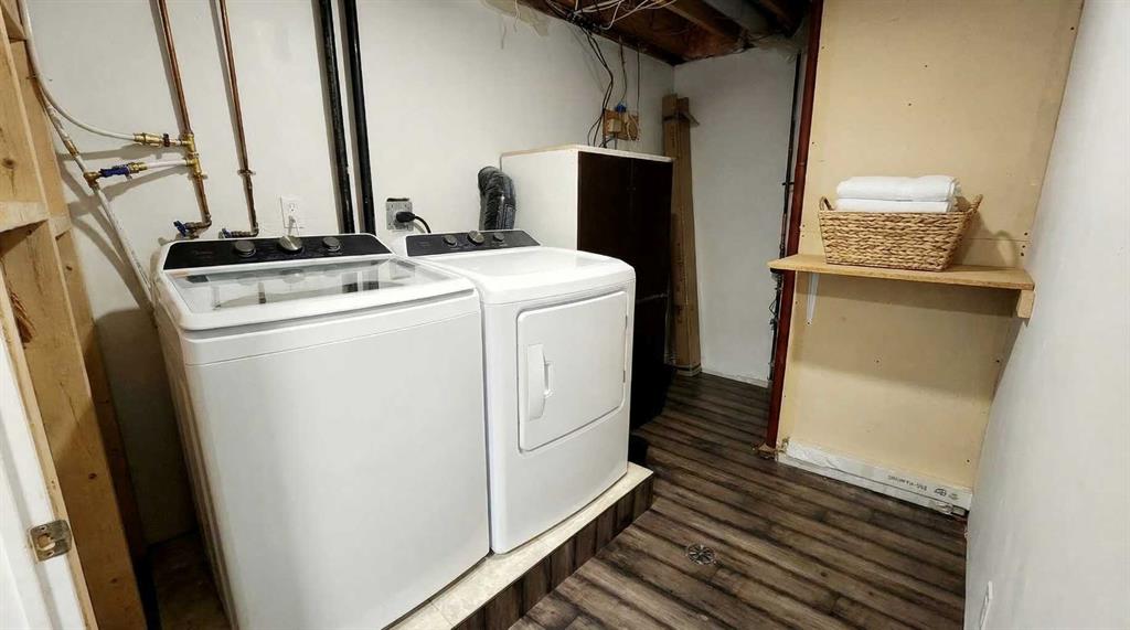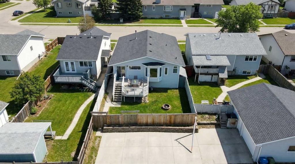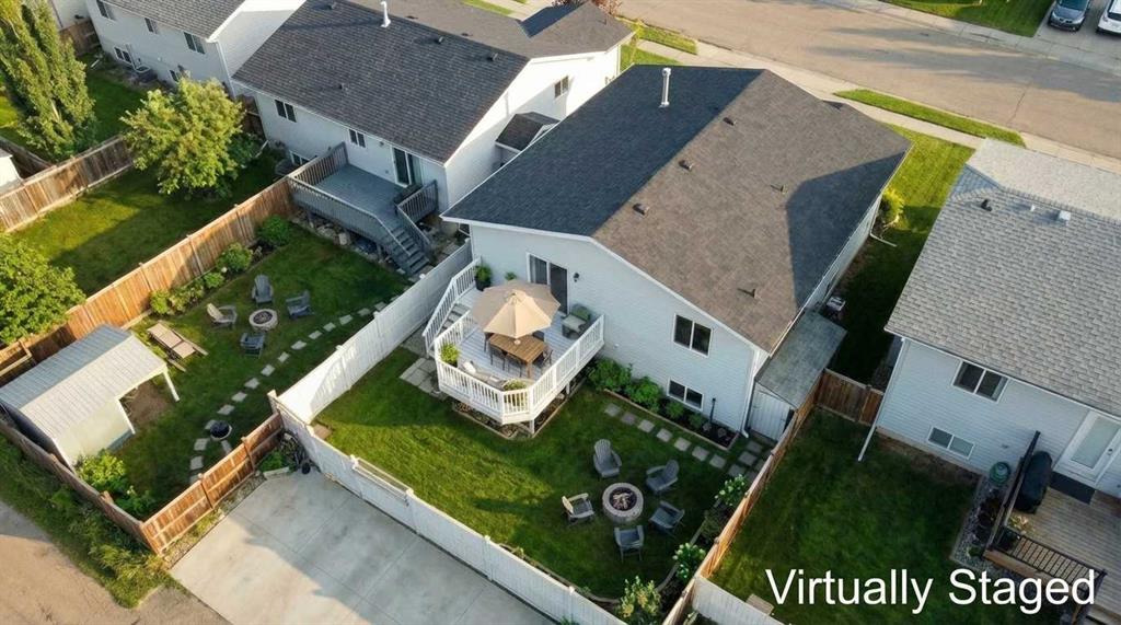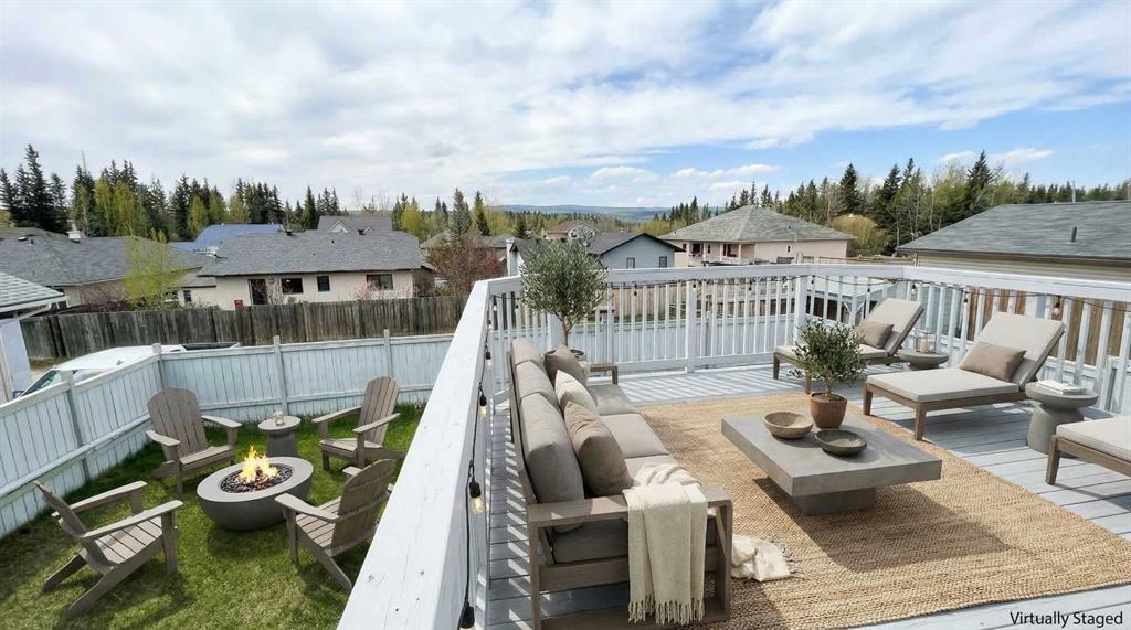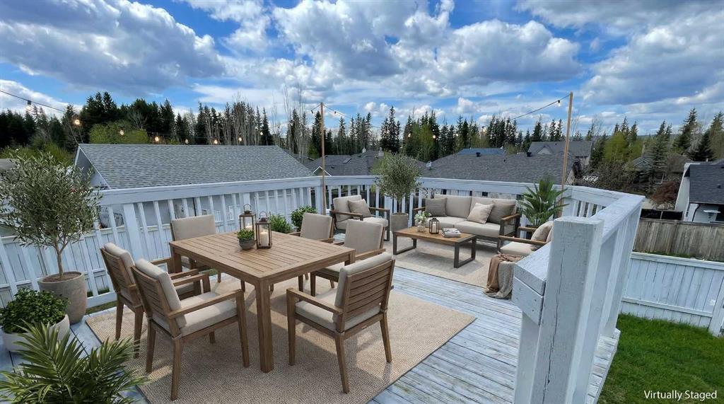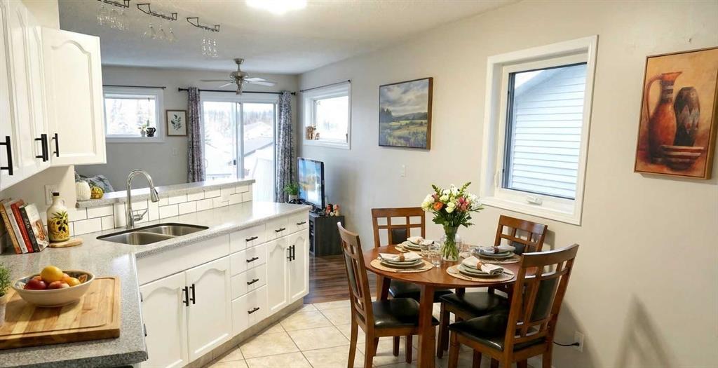 Located in the Thompson Lake area of Hinton, this well-maintained bungalow offers convenient access to parks, shopping, walking paths and community surrounded by trees. With 1,365 sq ft of above-grade living space, the property provides a spacious layout and has been thoughtfully set up as a successful AIRBNB opportunity. A front deck welcomes you to the main entrance and provides an inviting outdoor sitting area before stepping inside. The foyer offers a comfortable landing space with convenient access to the main living area and the staircase leading to the fully developed basement. The main floor features an open concept between living room and dining area with large windows allowing plenty of natural light. The kitchen includes L-shaped island with breakfast bar with seating, connecting seamlessly with the main living space. The main level features two spacious bedrooms, including large master bedroom with walk-in closet and 4 piece en-suite including separate shower, and soaker tub. A second bedroom is well sized with good closet space, and an additional full bathroom which is also located on the main level. A door from the living area leads to the rear deck overlooking the fully fenced backyard with fire pit and rear alley access. A paved parking pad provides ample off-street parking. The fully finished basement offers an illegal suite including, additional living space with a large family room featuring a gas fireplace. The lower level also includes two additional bedrooms, a 3-piece bathroom, a second kitchen area, and laundry space. The property is being sold fully furnished, providing a turnkey opportunity for buyers seeking a furnished residence or AIRBNB rental setup.