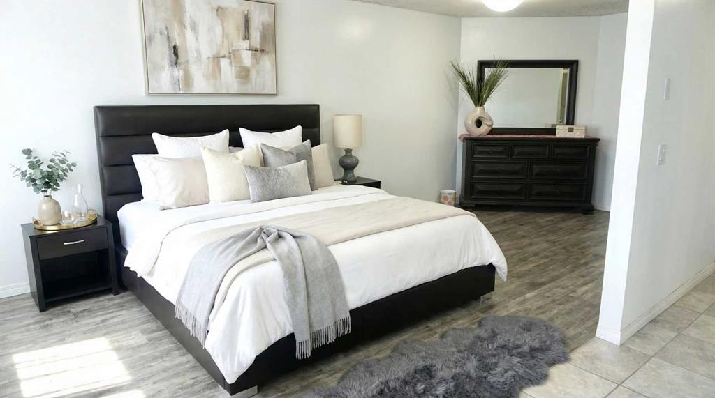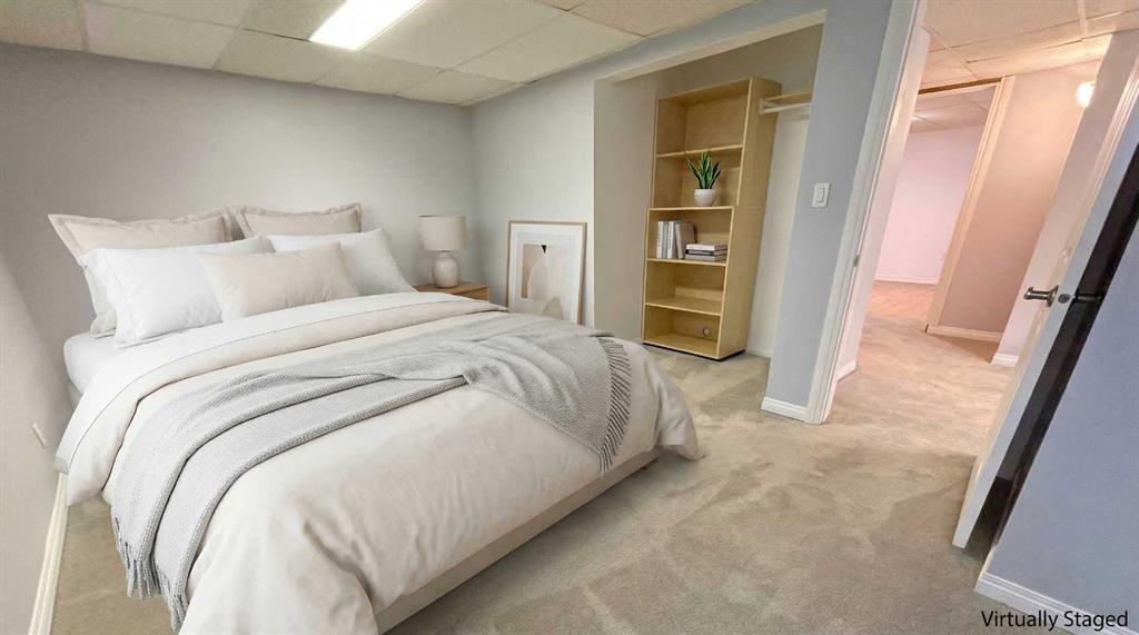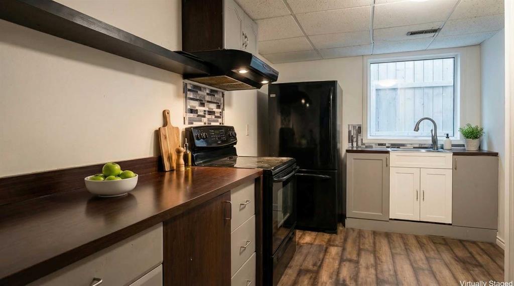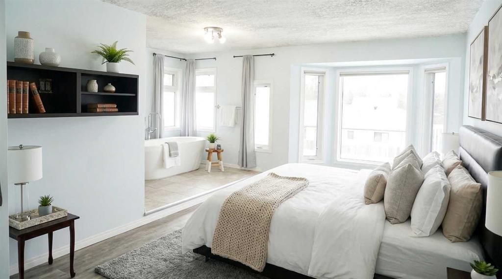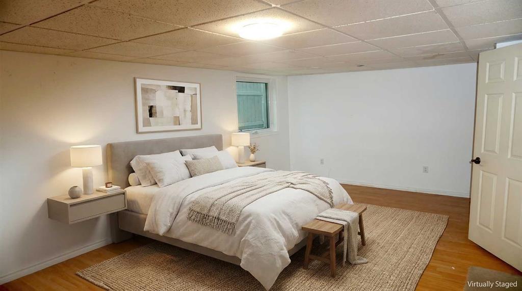 Located in the Thompson Lake area of Hinton, this well-maintained bungalow offers convenient access to parks, shopping, walking paths and community surrounded by trees. With 1,365 sq ft of above-grade living space, the property provides a spacious layout and has been thoughtfully set up as a successful AIRBNB opportunity. A front deck welcomes you to the main entrance and provides an inviting outdoor sitting area before stepping inside. The foyer offers a comfortable landing space with convenient access to the main living area and the staircase leading to the fully developed basement. The main floor features an open concept between living room and dining area with large windows allowing plenty of natural light. The kitchen includes L-shaped island with breakfast bar with seating, connecting seamlessly with the main living space. The main level features two spacious bedrooms, including large master bedroom with walk-in closet and 4 piece en-suite including separate shower, and soaker tub. A second bedroom is well sized with good closet space, and an additional full bathroom which is also located on the main level. A door from the living area leads to the rear deck overlooking the fully fenced backyard with fire pit and rear alley access. A paved parking pad provides ample off-street parking. The fully finished basement offers an illegal suite including, additional living space with a large family room featuring a gas fireplace. The lower level also includes two additional bedrooms, a 3-piece bathroom, a second kitchen area, and laundry space. The property is being sold fully furnished, providing a turnkey opportunity for buyers seeking a furnished residence or AIRBNB rental setup.