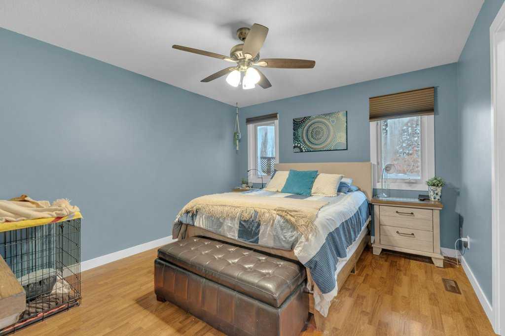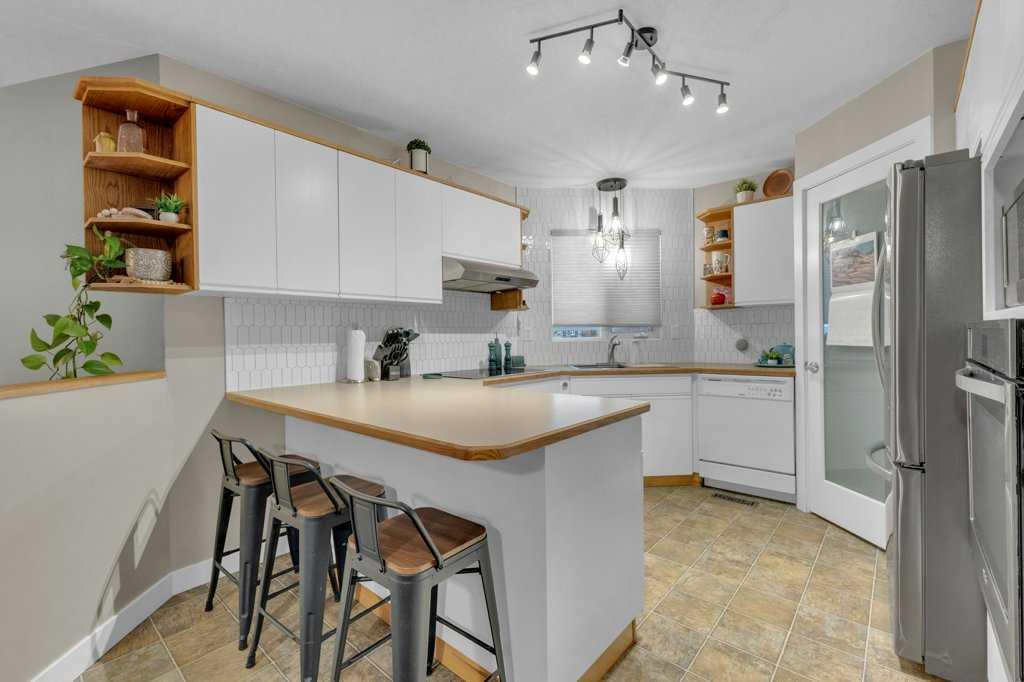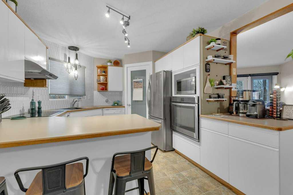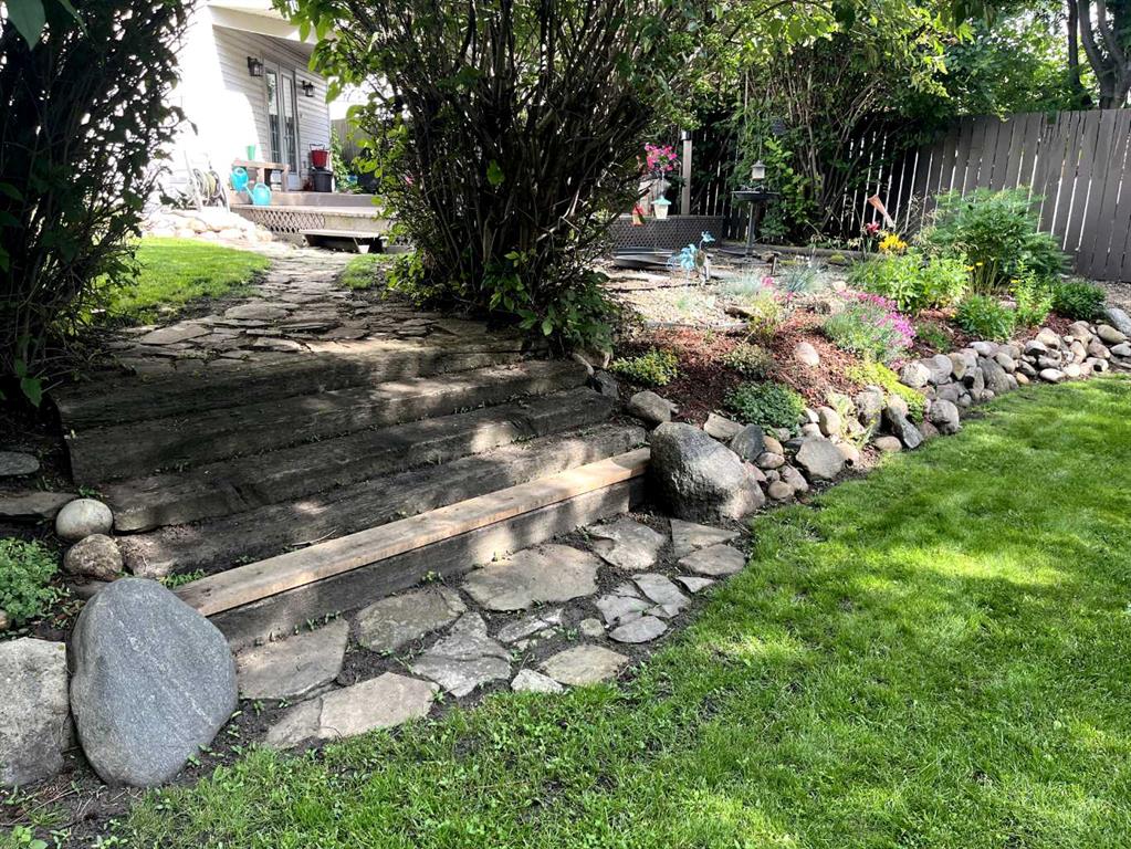 Welcome to this beautifully updated, move-in-ready home ideally located on a spacious oversized lot in a desirable area of town. Offering 3+1 bedrooms and 3 bathrooms, this well cared for, bi-level with walkout basement provides comfortable living, functional space, and an impressive list of recent upgrades. The main floor welcomes you with a warm and inviting living room featuring an electric fireplace, creating a cozy atmosphere for everyday living and entertaining. Patio doors provide direct access to the deck, complete with glass railing (2016), offering a great spot to relax while enjoying views of the yard. The fully updated kitchen features refinished cabinetry, a stylish backsplash, a large stainless steel sink, and quality appliances including a fridge, built-in oven, and radiant cooktop (2015). A separate dining area provides plenty of room for family meals and gatherings. Down the hall, you’ll find a beautifully renovated main bathroom with custom tile work (2019), along with three bedrooms including the spacious primary retreat, which features a fully renovated private ensuite completed in 2024. The fully developed walkout basement adds exceptional flexibility with a large family room, spacious recreation area, fourth bedroom, and a renovated 3-piece bathroom with custom shower (2019). This level also includes a dedicated laundry room with washer and dryer (2014) and a utility room. The furnace has been well maintained, with major components including the blower motor, motherboard, and ignition replaced over time. All plumbing lines were upgraded to PEX in 2025 for added peace of mind. Outside, the beautifully landscaped backyard offers a private and peaceful setting, fully fenced and surrounded by mature trees. Enjoy the large firepit area, established perennial beds, and plenty of space for entertaining or relaxing outdoors. The front yard was newly landscaped in 2024, and all trees have been professionally trimmed in both the front and back yards. Additional exterior updates include new eavestroughs and professional exterior painting completed in 2024, along with asphalt shingles replaced in 2016. Inside, all baseboards and interior doors were replaced in 2024, adding a fresh and modern feel throughout the home. An attached garage provides secure parking and additional storage space. There is also a parking pad adjacent to the house for additional vehicle parking or an RV. This exceptional property offers a wonderful opportunity to own a beautifully maintained home on a large lot in a great neighborhood, and close to the walking trails!