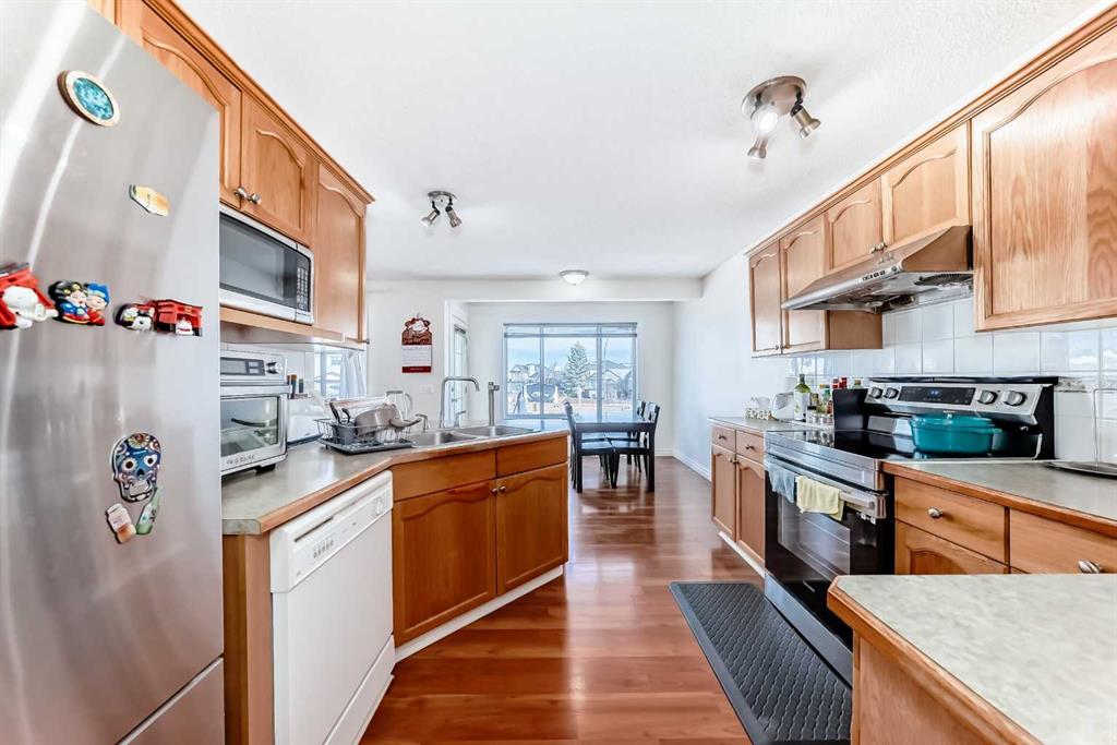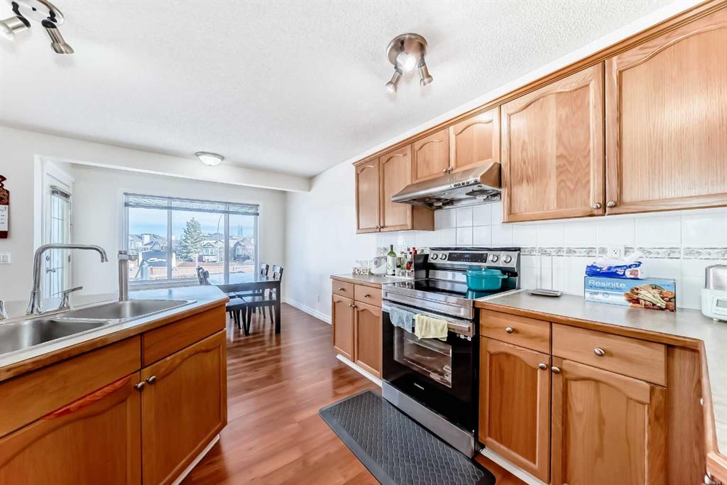 Great value front drive home in a highly desired community. NEW paint all over. Very well maintained conditions. New roof (2025) and siding (2025). New hot water tank (2024). This home features an inviting open-concept layout with a spacious great room and living area. The oak kitchen offers both warmth and functionality, complemented by a bright dining nook and convenient rear entry leading to the deck—perfect for indoor-outdoor living. The main floor also includes a well-placed laundry room for added convenience. The front foyer welcomes you with a built-in bench and elegant oak railings that continue throughout the home, showcasing fine craftsmanship. Upstairs, you will find three generously sized bedrooms, including a comfortable primary suite complete with a walk-in closet and a private four-piece ensuite bath. Outside, the property is beautifully landscaped and fully fenced, and the double attached garage provides ample parking and storage. Quality workmanship is evident throughout, making this home both stylish and functional. Come and visit!