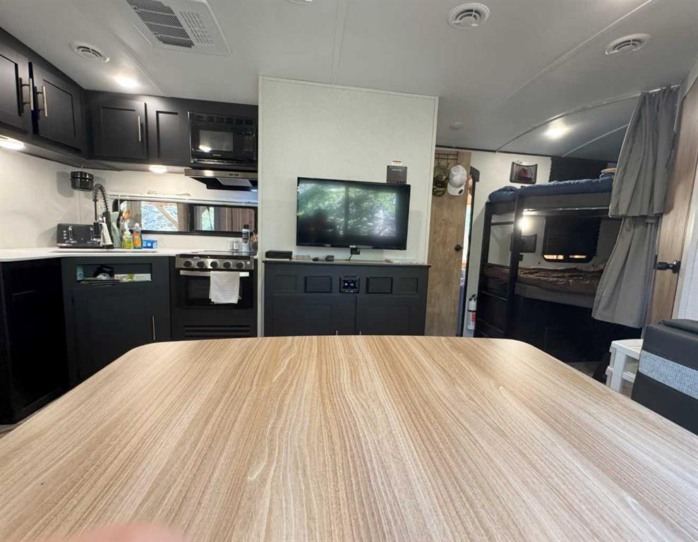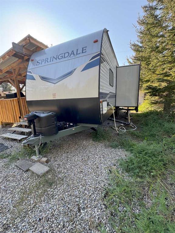 Your West Country getaway awaits in Riverside RV Village, Sundre. Tucked along Prairie Creek, this private recreational lot offers the perfect escape from the city. The site includes an immaculate 2022 Keystone 26’ RV, barely used & thoughtfully set up for comfortable stays with a private primary bedroom, bunk beds, roomy kitchen & oversized fridge for easy family living. A spacious ~10’ x 23’ addition with covered cook deck expands the living area & creates the perfect space for morning coffee, evening BBQs, & gathering with friends. Outside you’ll find a cozy bunkie with a front porch that sleeps 5, garden shed, firepit & wood shelter, ideal for relaxed evenings under the stars. Located close to the clubhouse, owners enjoy access to year round showers, washrooms, & laundry facilities. Seasonal water & sewer hookups service the RV, with year round power available. Condo fees are $1,135 annually. Only ~1 hour from Calgary or Red Deer, Sundre offers the best of the West Country lifestyle: golf, rivers, trails, fishing, kayaking, & small-town charm. The RV & addition currently do not meet Riverside RV Village site requirements. There are several options to bring the site into compliance according to their design & park bylaws. Nature, creekside calm, & your own Sundre escape, ready when you are.