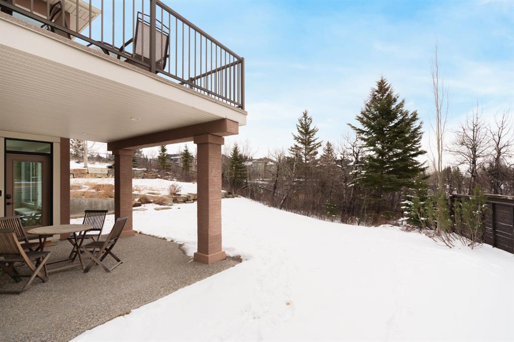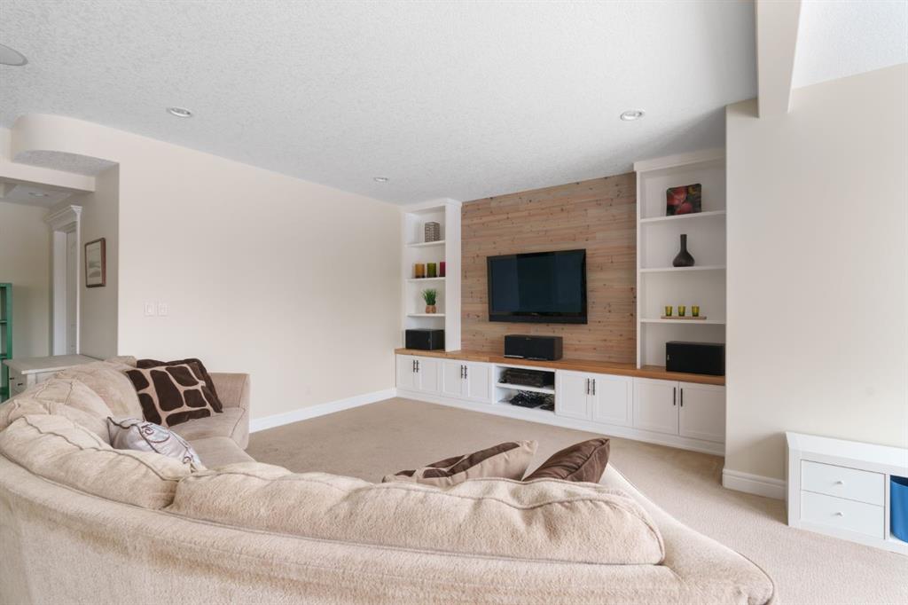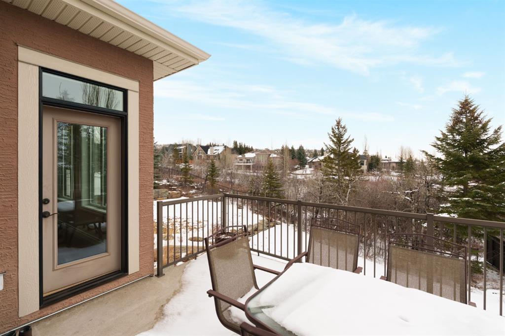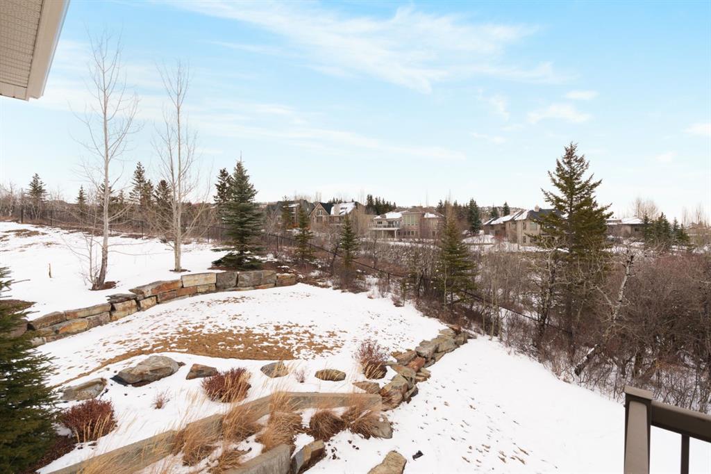 A rare opportunity on Calgary’s Westside… this estate home sits on a quiet cul de sac, on an 11,600 sq ft pie-shaped lot, backing a ravine and nature trail. You will be calmed by the sound of frogs at night, and birds singing in the morning, watching the deer from your deck, this is a space your kids will love to explore and likely where your mornings and evenings will begin walking the dog through the ravine system as it meanders north – a PEACEFUL SPACE – WONDERFUL! All of this is centrally located with ease of access to Calgary’s finest schools and the amenities we love here on the Westside. This home is a two storey walkout, measuring 4,185 sq ft over three levels, 3 beds and a Bonus Room up with a 4th bed and full bath down and a HEATED, OVER-SIZED 3 car garage… there is ample space here for the three cars and a proper workshop. Highlights include 10 foot ceilings on the main, 9 feet up & down, wide plank hardwoods through the main, granite counters throughout, designer lighting and window coverings, B/I speakers, central A/C, irrigation and more. On the main you will love the open plan, which draws you through to the Great Room in back, a wall of windows and direct access to the deck and the SIGHTS & SOUNDS of NATURE. The kitchen features an over-sized center island, granite counters in a “leather” finish, a Bosch gas cooktop and wall oven and a wine fridge. The kitchen is open to the dining space, overlooking the ravine – NICE! There is also a private Den/Home office on the main with custom built-ins. Upstairs, a large Bonus Room under a 13’ ceiling, SPACIOUS and BRIGHT. The Primary Bedroom sits at the back of the home, overtop of the ravine and enjoys a wonderful 5pc en suite and steam shower! The two additional beds up are well-sized and share a 4pc bath. The walkout level is fully finished offering a wide open space to accommodate a media space, a gams space, a 4th bed and full bath… with direct access to your over-sized rear yard… BACKING THE RAVINE – this is an AMAZING location.