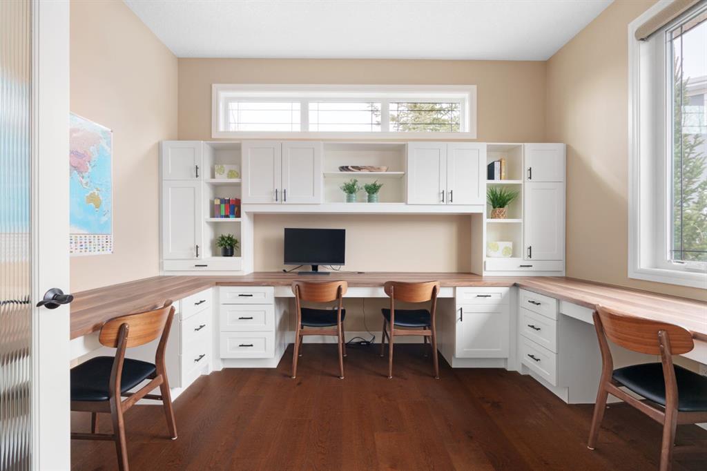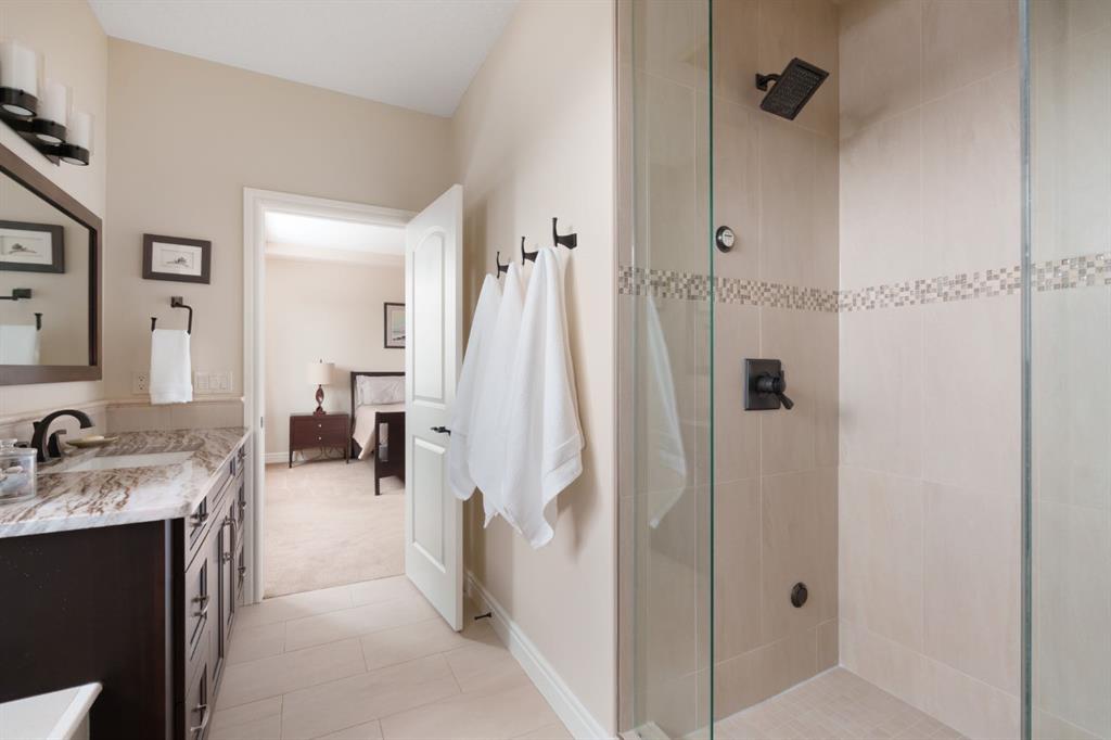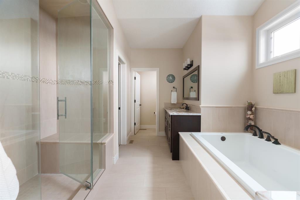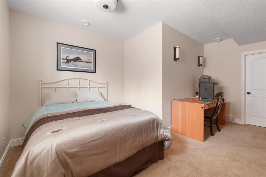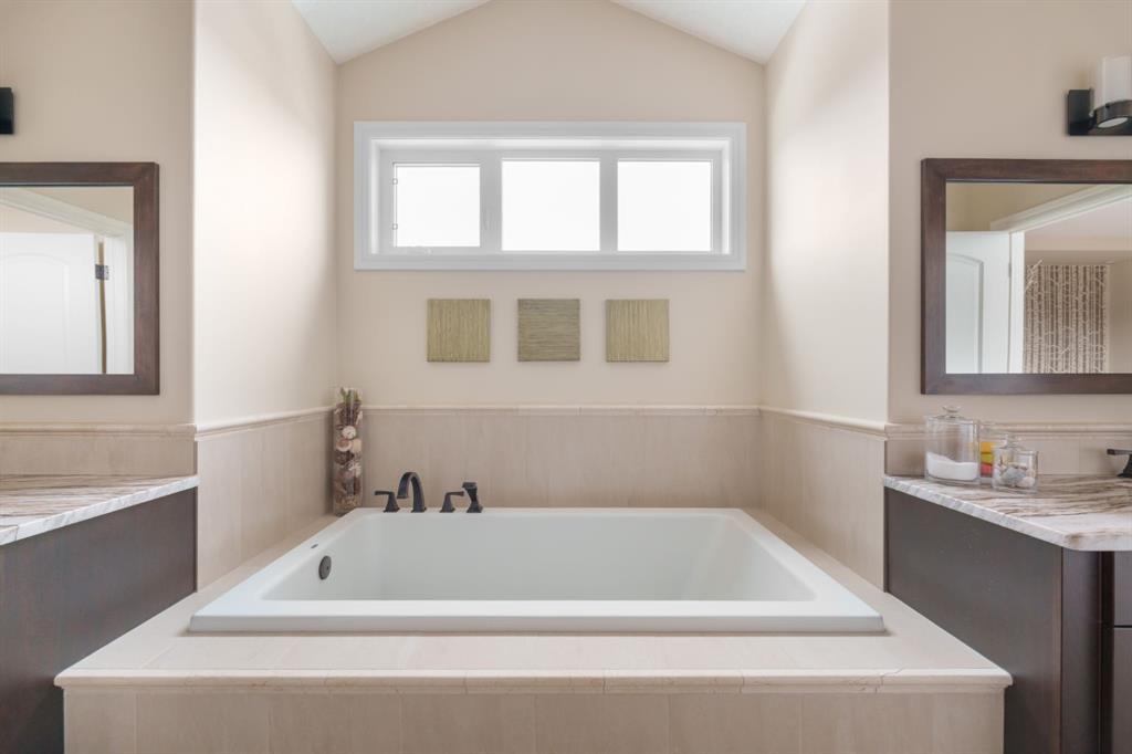 A rare opportunity on Calgary’s Westside… this estate home sits on a quiet cul de sac, on an 11,600 sq ft pie-shaped lot, backing a ravine and nature trail. You will be calmed by the sound of frogs at night, and birds singing in the morning, watching the deer from your deck, this is a space your kids will love to explore and likely where your mornings and evenings will begin walking the dog through the ravine system as it meanders north – a PEACEFUL SPACE – WONDERFUL! All of this is centrally located with ease of access to Calgary’s finest schools and the amenities we love here on the Westside. This home is a two storey walkout, measuring 4,185 sq ft over three levels, 3 beds and a Bonus Room up with a 4th bed and full bath down and a HEATED, OVER-SIZED 3 car garage… there is ample space here for the three cars and a proper workshop. Highlights include 10 foot ceilings on the main, 9 feet up & down, wide plank hardwoods through the main, granite counters throughout, designer lighting and window coverings, B/I speakers, central A/C, irrigation and more. On the main you will love the open plan, which draws you through to the Great Room in back, a wall of windows and direct access to the deck and the SIGHTS & SOUNDS of NATURE. The kitchen features an over-sized center island, granite counters in a “leather” finish, a Bosch gas cooktop and wall oven and a wine fridge. The kitchen is open to the dining space, overlooking the ravine – NICE! There is also a private Den/Home office on the main with custom built-ins. Upstairs, a large Bonus Room under a 13’ ceiling, SPACIOUS and BRIGHT. The Primary Bedroom sits at the back of the home, overtop of the ravine and enjoys a wonderful 5pc en suite and steam shower! The two additional beds up are well-sized and share a 4pc bath. The walkout level is fully finished offering a wide open space to accommodate a media space, a gams space, a 4th bed and full bath… with direct access to your over-sized rear yard… BACKING THE RAVINE – this is an AMAZING location.