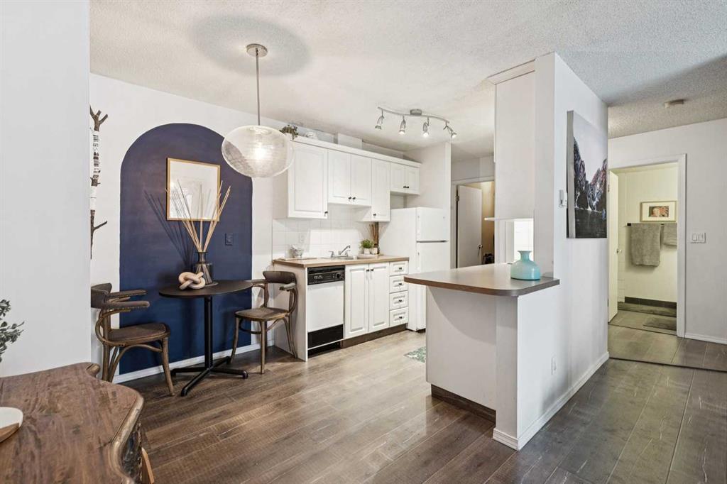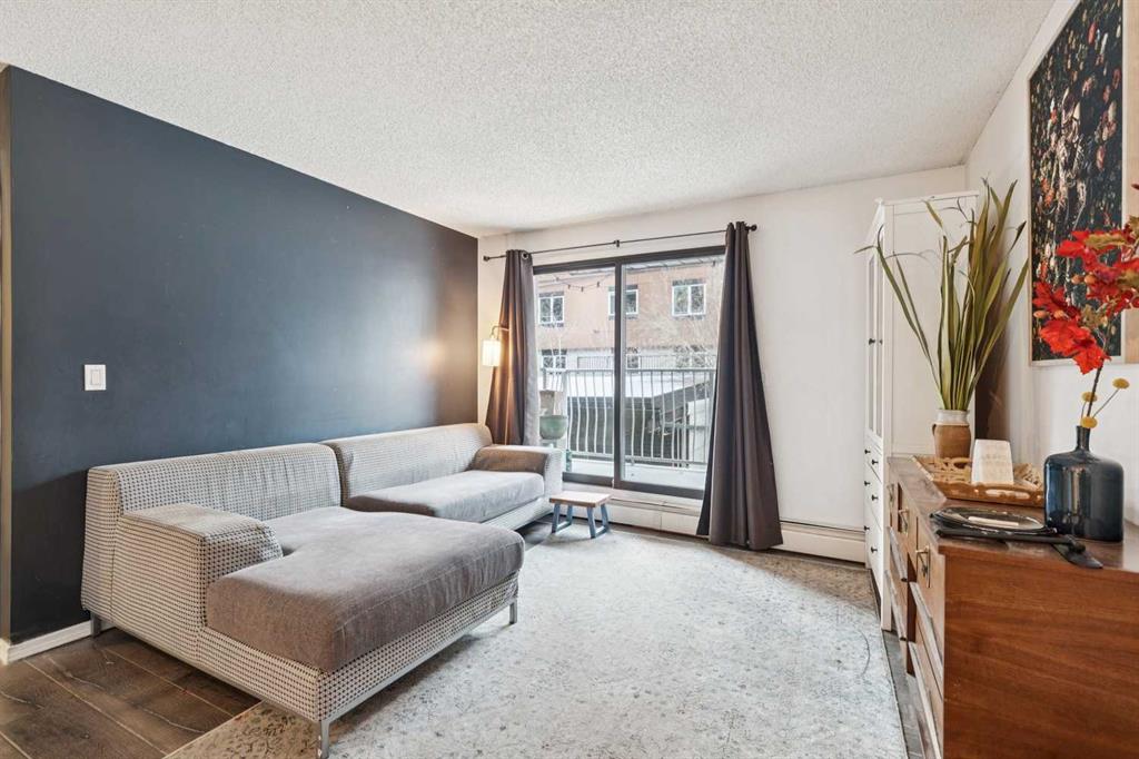 Located on the second floor, this charming and thoughtfully updated home offers a private, south-facing balcony in the highly sought-after community of Lower Mount Royal. Tucked away on the quiet side of the building, the charming unit features an open-concept layout that is both functional and inviting. Recent updates include luxury vinyl plank flooring throughout, complemented by a functional kitchen that provides excellent workspace and storage. The unit also offers generous in-suite storage in addition to a separate, secure storage locker, along with the convenience of full in-suite laundry. A spacious bedroom is well-proportioned and easily accommodates a king-sized bed + includes ample closet space. Residents of this pet-friendly building enjoy covered, secure parking, elevator access, and plenty of street parking for guests. Ideally located just steps from the vibrant 17th Avenue district, this home offers immediate access to an array of restaurants, cafés, fitness studios, boutiques, and everyday amenities, all within a comfortable walking distance to downtown.