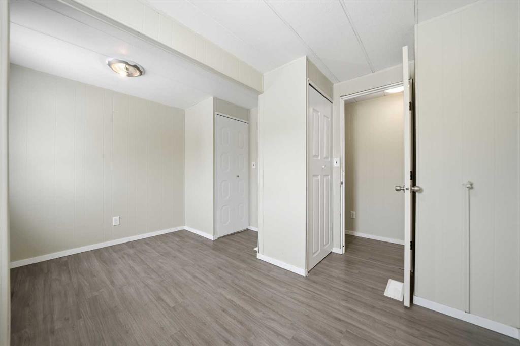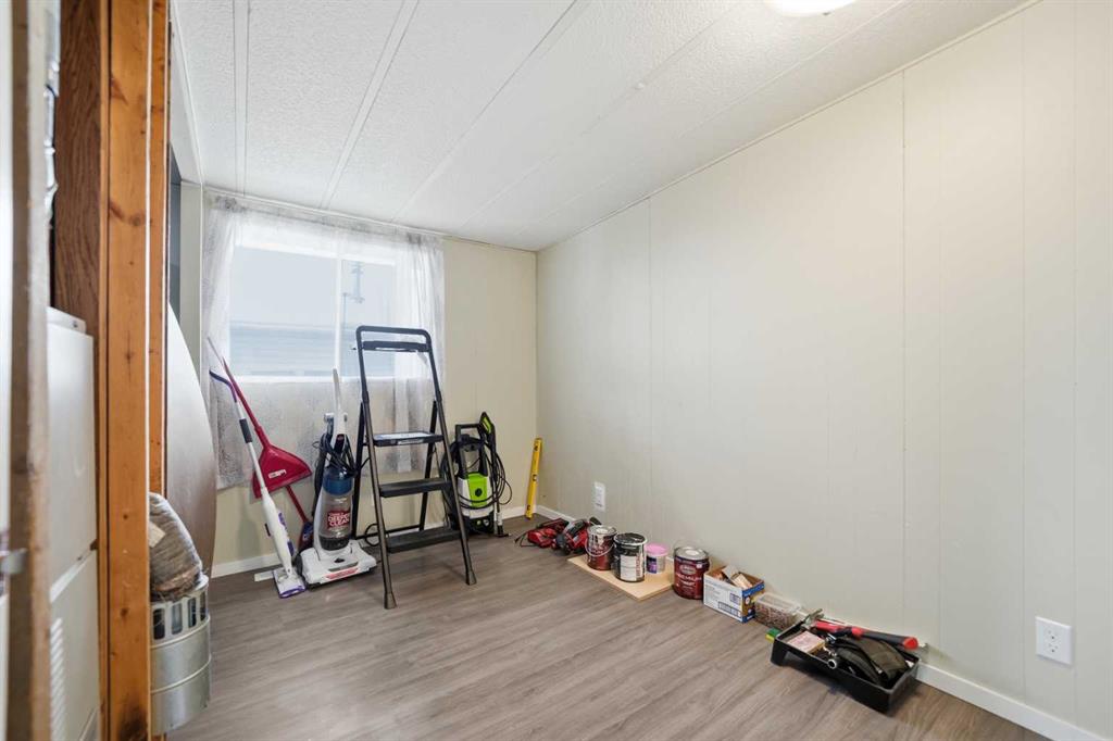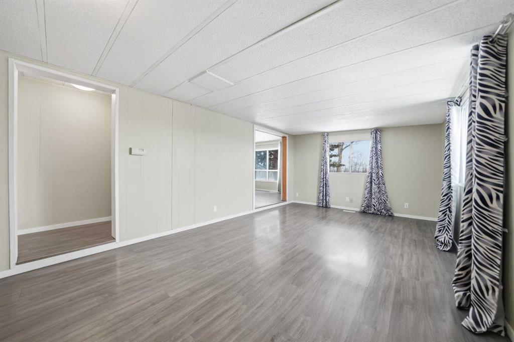 Spacious double wide manufactured home on its own land situated on two lots in the heart of Irricana, offering excellent value and small town living. Located directly across from a park and community hall with playground and just one block from the town’s main street, this property combines convenience with a quiet setting. The home features a wraparound deck, fenced yard, and lane access to an oversized detached double garage, with one bay tall enough to accommodate an RV or large truck. Inside you will find both a living room and a separate family room, providing flexible space for families or entertaining. The layout includes 3 generously sized bedrooms, a den, and a large 4 piece bathroom with a relaxing jacuzzi tub. Several improvements have been completed including laminate flooring, new fridge (2025), new dryer (2025), and a new furnace and central A/C (Jan 2025). The home is equipped with two furnaces for added comfort and efficiency and includes additional storage below the laundry room. An excellent opportunity for first time buyers, investors, or downsizers looking for affordable detached living just 20 minutes to Airdrie and 40 minutes to Calgary.