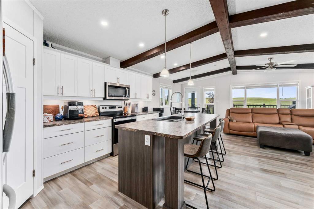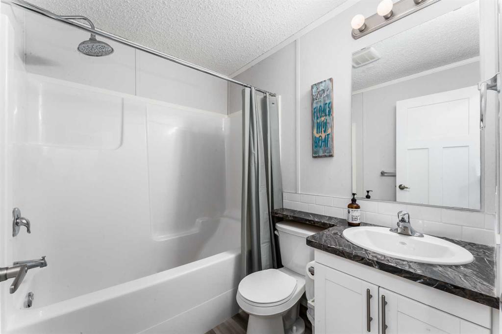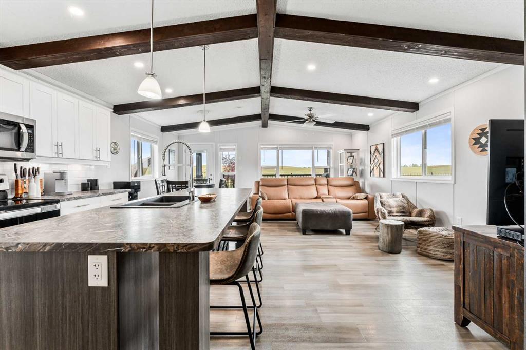 Welcome to Southview at Sandy Point, a sought-after gated lake community on the southwest shores of Gull Lake, where modern comfort meets the relaxed lifestyle of year-round lake living in Central Alberta. Built in 2021, this stylish 2-bedroom, 2-bathroom modular home offers 1,040 square feet of thoughtfully designed living space, making it an ideal option for a full-time residence, weekend getaway, or low-maintenance vacation property near the water. Step inside to a bright open-concept layout highlighted by vaulted beamed ceilings, large windows, and an abundance of natural light. The spacious kitchen is designed for both everyday living and entertaining, featuring a large island with breakfast bar seating, full pantry, stainless steel appliances, and plenty of cabinetry for storage. The inviting living room is centered around a cozy fireplace, creating the perfect space to unwind after a day on the lake or hosting friends and family. The primary bedroom retreat offers privacy and comfort with a generous walk-in closet and a full ensuite bathroom, while the second bedroom and additional 4-piece bathroom provide great flexibility for guests, family members, or a home office. A full-size laundry area adds everyday convenience to the home’s functional design. Outdoor living is just as impressive. Step onto the large wraparound deck, perfect for enjoying morning coffee, summer BBQs, and relaxing evenings around the firepit. With no rear neighbours and open views toward the future golf course fairways, the setting offers peace, privacy, and beautiful prairie sunsets. The fully fenced, zero-maintenance yard is tastefully landscaped and includes a storage shed, allowing you to enjoy the outdoor space without the burden of heavy upkeep. Located within the year-round Southview community at Sandy Point Resort, residents enjoy access to one of the most desirable Gull Lake recreational destinations in Central Alberta. Community amenities include a public sandy beach, marina, playgrounds, walking trails, picnic areas, RV and boat storage, and plenty of opportunities for boating, fishing, and outdoor recreation. This location combines the best of lake life and convenience, just minutes from Bentley, a short drive to Sylvan Lake and Red Deer, and under two hours from Calgary and Edmonton. Whether you’re looking for a peaceful lakeside escape, or a comfortable home in a vibrant resort-style community, this property delivers. Move-in ready, beautifully maintained, and designed for low-maintenance living—this is your opportunity to own a piece of Gull Lake paradise and enjoy lake life 365 days a year.