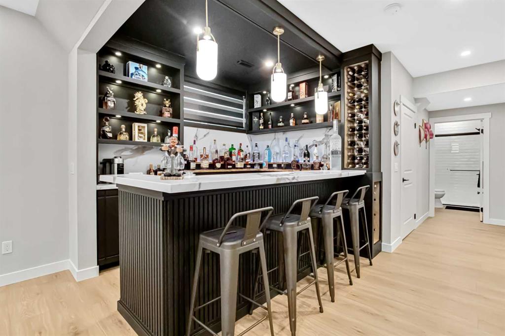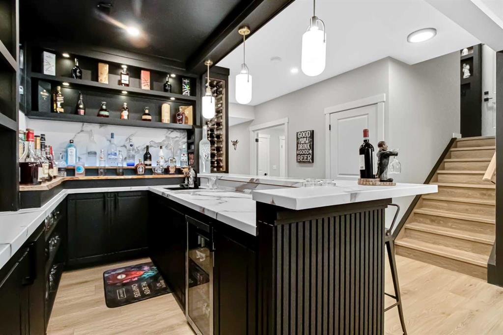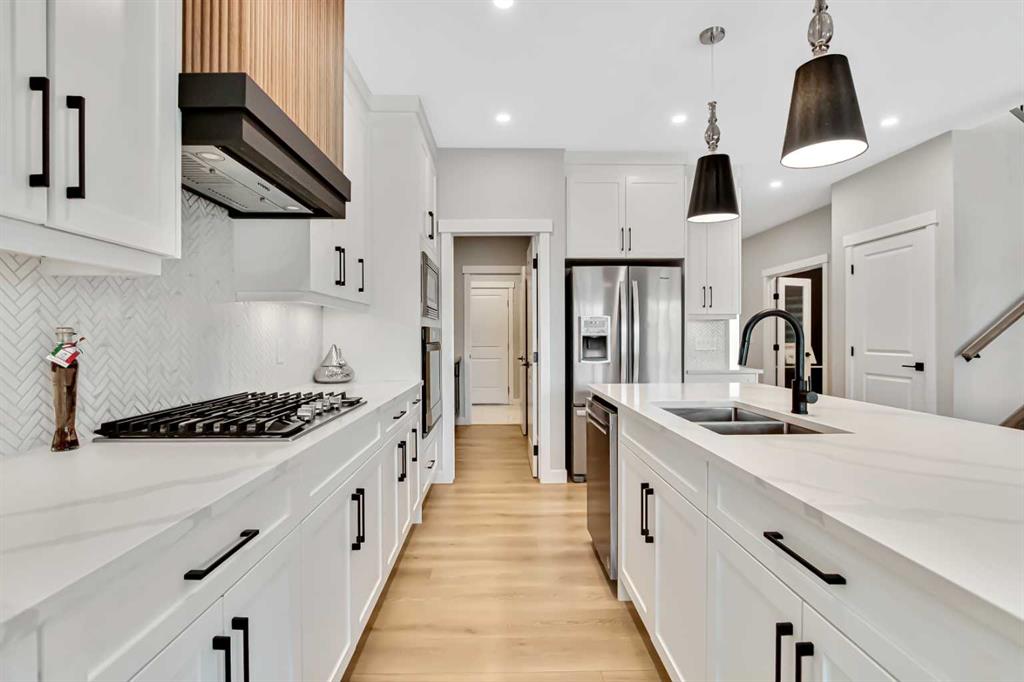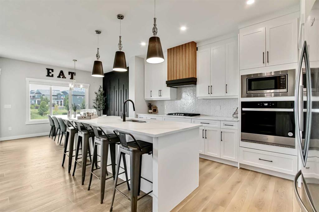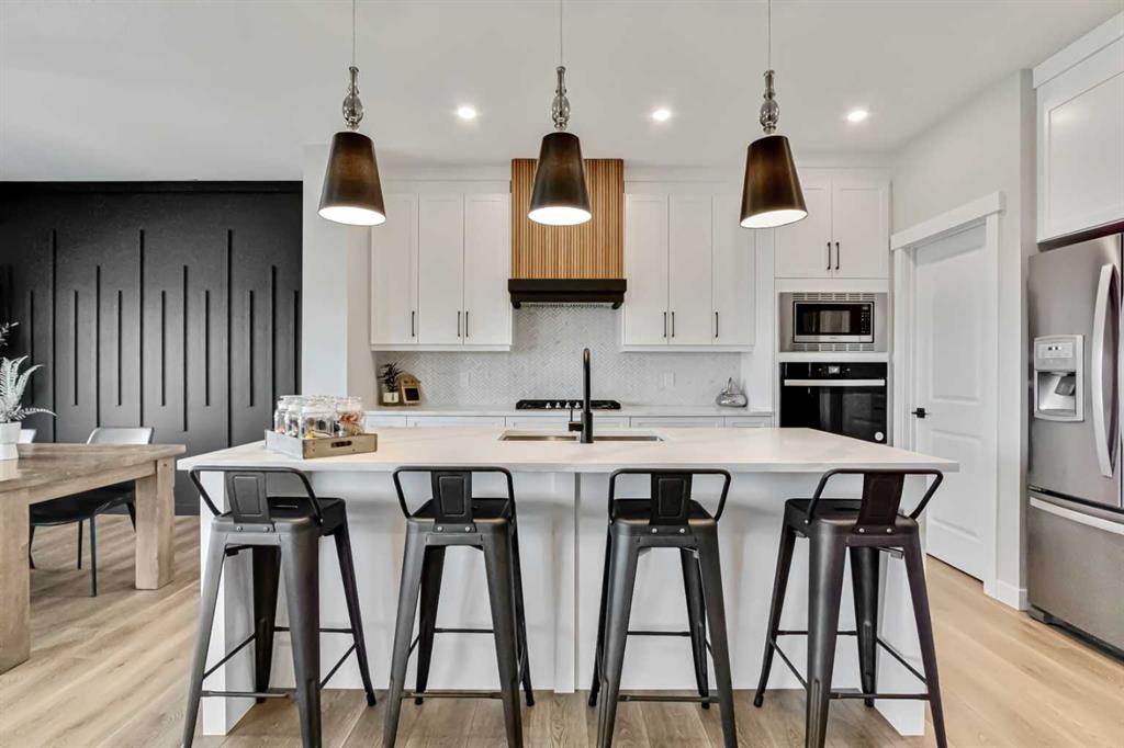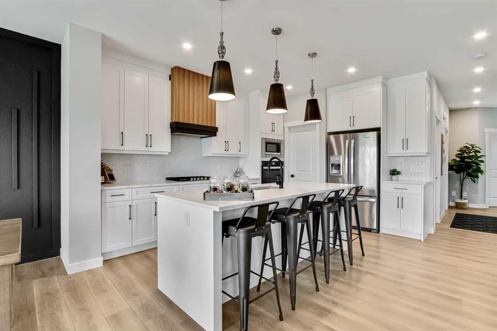 Pond views, sunset evenings and thoughtfully designed spaces for everyday living - welcome to one of Wedderburn’s most desirable offerings. Backing directly onto the pond and pathway system, this exceptional home delivers a rare blend of privacy and connection to nature. Walking distance to schools, park, dog park and pump track, this location offers an ideal balance of outdoor living and everyday convenience. The professionally landscaped backyard is designed for unforgettable gatherings, featuring a custom patio with fire pit, pergola lounge area and serene water views that create a true retreat. The rear deck with BBQ gas line extends the entertaining space, making it effortless to host in every season. Inside, the main level offers beautifully defined yet connected living zones. A dedicated home office provides quiet focus, while the enclosed flex/media room with French doors is ideal for kids study, gaming, or additional lounge space. The inviting family room with modern fireplace flows seamlessly into the gourmet kitchen - complete with built in appliances, gas cooktop, quartz countertops and a walk through pantry - creating the perfect setting for both daily life and entertaining. Upstairs, the primary suite is a private retreat featuring a spa inspired ensuite with jetted tub, rain head shower and generous walk in closet. Three additional bedrooms provide flexibility for growing families - one with its own private ensuite, while the remaining two share a well appointed full bathroom. A bright bonus room overlooking the pond offers the perfect space for movie nights or relaxed family time, and the upper level laundry room adds everyday convenience. The fully finished basement is designed for entertaining, showcasing a large recreation area, custom wet bar, games space, fifth bedroom, full three piece bathroom and convenient side entrance access - offering versatility for guests or extended family. Additional highlights include custom mudroom built ins, heated garage with epoxy flooring, central air conditioning, water softener and elevated finishes throughout. Combining modern design, functional family living and breathtaking pond views, this home offers a lifestyle opportunity rarely available in today’s market. Some photos were taken in August 2025 to highlight the pond during the summer season.