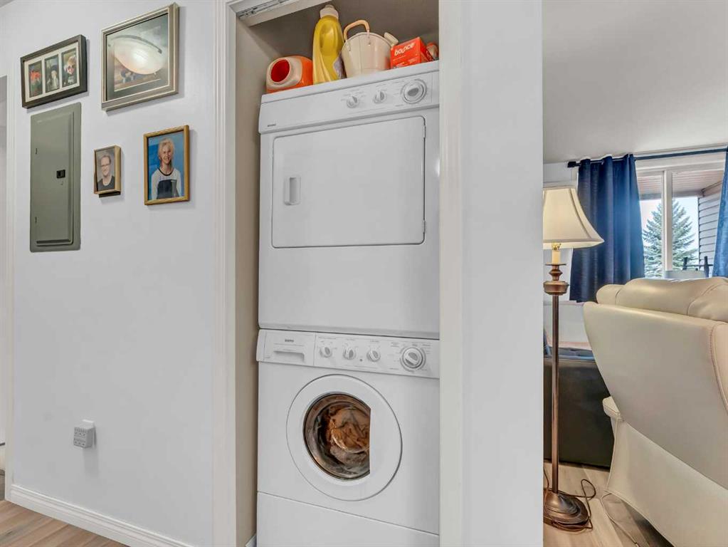Very nice ground floor 2 bedroom 1 bath condo in a freshly painted clean building within the axxess development. This home has fresh paint, new sinks and taps, counter tops replaced, new laminate flooring, A/C is 2015. the home has full appliance package including a stackable washer and dryer. Good sized deck to bbq and relax in the summer, the unit comes with a underground titled parking space with a storage unit, affordable condo fees at $448.63 that includes all utilities (except cable/WI-FI) which makes it a excellent opportunity for a first time buyer or investment property.. Book your private showing today!