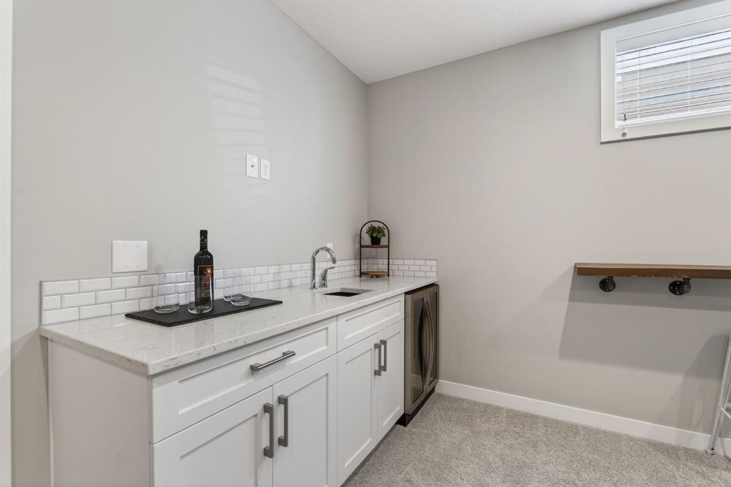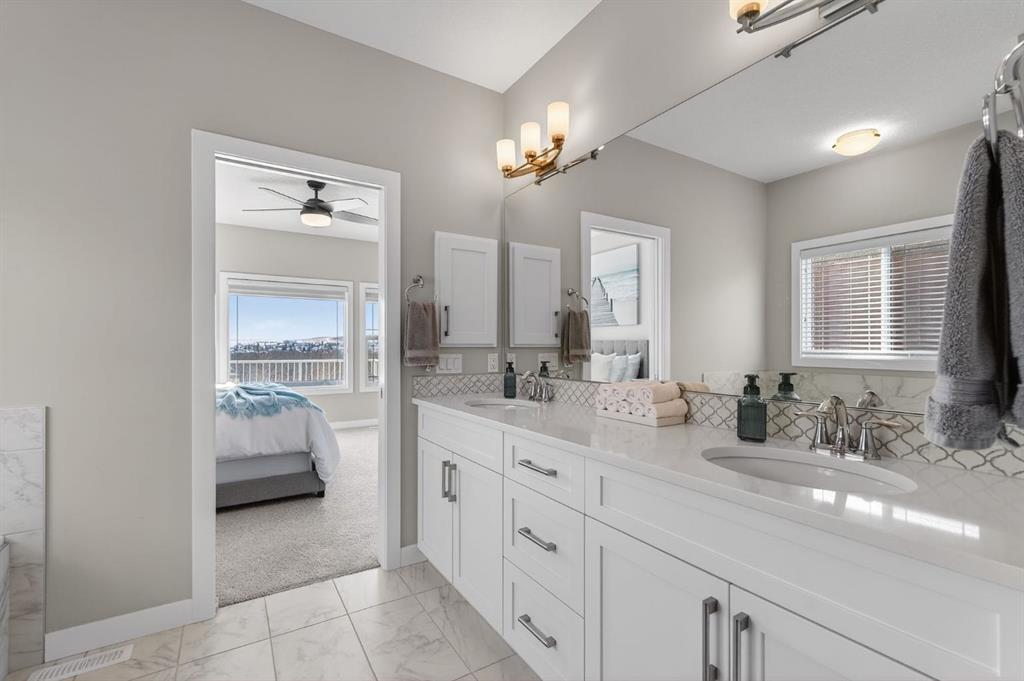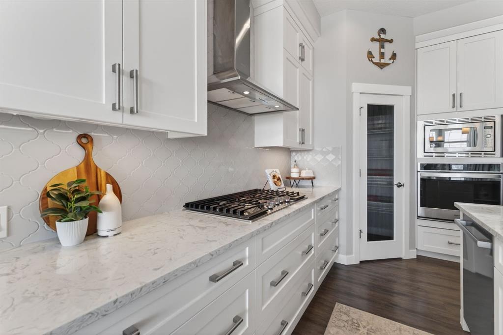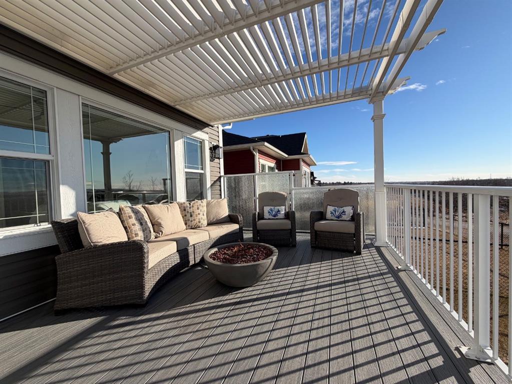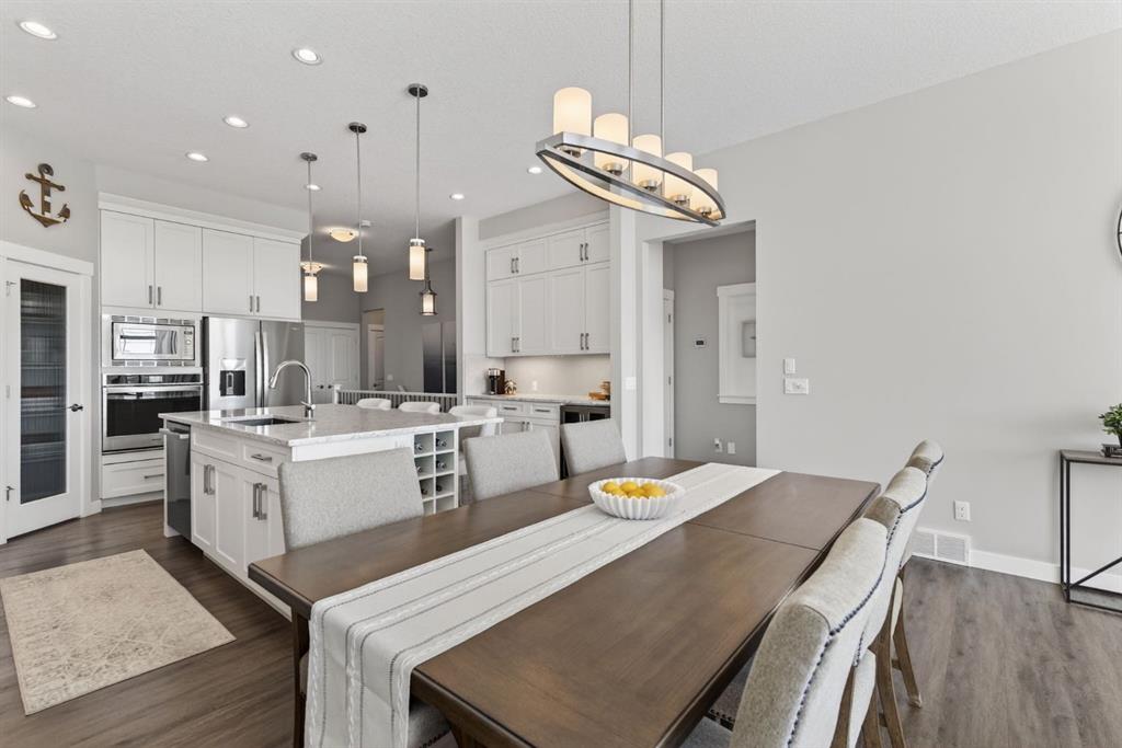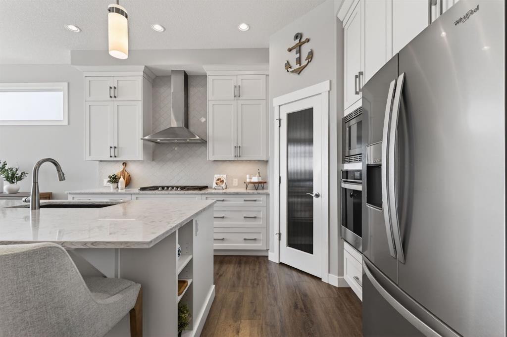 Welcome to this beautifully maintained bungalow located in the desirable community of Mountainview in Okotoks, perfectly positioned on a quiet street and backing onto scenic green space. Offering a rare combination of style, functionality, and breathtaking views, this home is ideal for those seeking both comfort and elevated everyday living. From the moment you arrive, you’ll appreciate the exceptional curb appeal, ample parking, and double attached garage. Inside, the bright and open-concept main floor is designed to impress, featuring large windows that flood the space with natural light and showcase the stunning ridge views behind the home. The heart of the home is the thoughtfully designed kitchen, complete with a large central island, quartz countertops, stainless steel appliances, and a convenient corner pantry. The seamless flow into the separate dining area and spacious living room makes this layout perfect for both entertaining and everyday living. The cozy gas fireplace anchors the living room, creating a warm and inviting atmosphere year-round. The main level also offers the convenience of laundry and a dedicated office—perfect for working from home or creating a quiet, flexible space to suit your needs. The primary bedroom is a true retreat, featuring a generous walk-in closet and a luxurious 5-piece ensuite with dual vanities, a soaking tub, and a separate stand-up shower. Downstairs, the fully developed basement expands your living space with two large recreation areas, ideal for a media room, games area, or home gym. Two additional bedrooms—one with a walk-in closet—and a full 4-piece bathroom provide plenty of room for family or guests. Step outside to the beautifully designed outdoor living space, perfectly positioned to take in the incredible views. Whether you’re hosting summer gatherings or enjoying quiet evenings, this backyard offers the perfect blend of privacy and connection to nature. Located in the sought-after Mountainview community, this home offers easy access to walking paths, parks, schools, and all the amenities Okotoks has to offer—while still providing a peaceful, scenic setting. This is a rare opportunity to own a move-in ready bungalow with a fully developed basement, stunning views, and exceptional indoor-outdoor living.