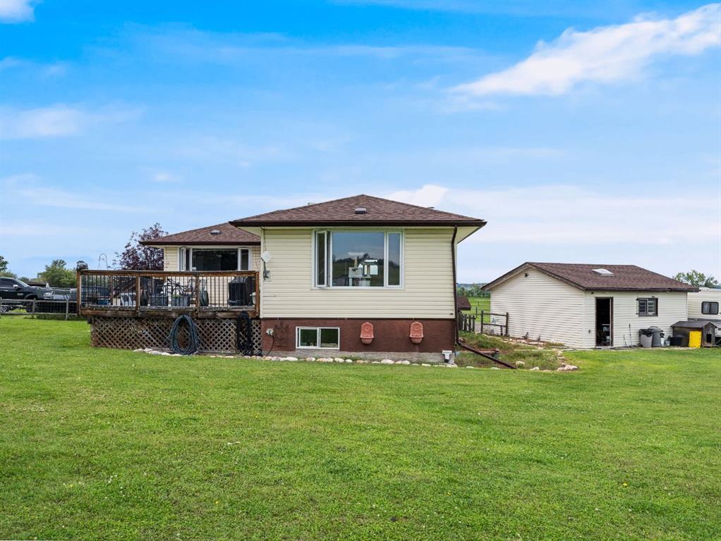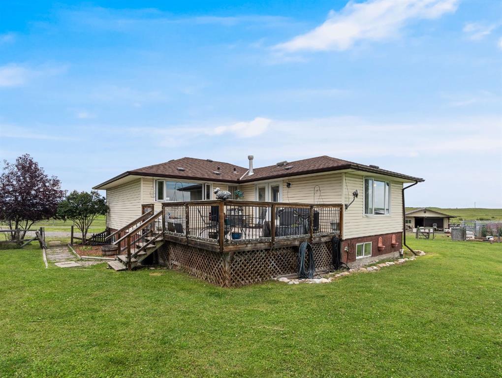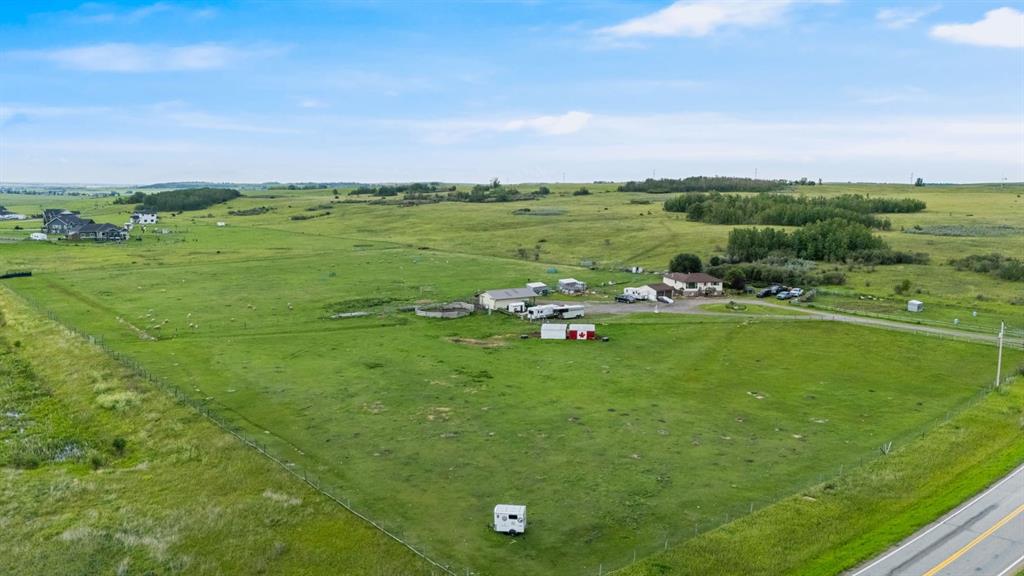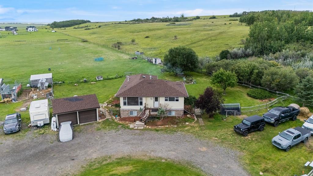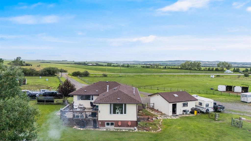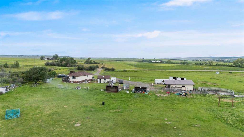 10-acre hobby farm located within the Town of Okotoks town limits, offering a rare combination of agricultural land and proximity to urban amenities. The property features Rocky Mountain views and is situated just minutes from the town centre. Zoned Agricultural Land Holdings (ALH), the parcel is suitable for a hobby farm or small-scale livestock operation and may appeal to buyers seeking long-term land holding potential in a desirable southern Alberta location. The property includes a single-family residence with 4 bedrooms and 3.5 bathrooms. The land consists of approximately 10 acres, including an estimated 8 acres of fenced grazing land. Services include a water well and a recently rebuilt septic field.