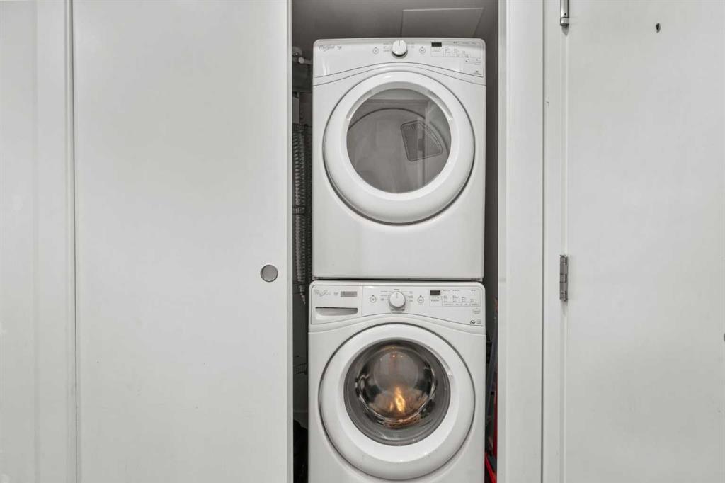 Come view this unique SECOND FLOOR UNIT, don’t let the #110 number deceive you, this beautiful second floor home backs onto a peaceful and quiet courtyard. Perfectly positioned in the heart of Bridgeland, where location, lifestyle, and smart design come together, this bright and modern 1-bedroom + DEN condo, perched above the main level, offers enhanced privacy and security beyond typical 100-level units. Built in 2016, this well designed home maximizes every inch of its nearly 600sf layout. The open concept living space features contemporary finishes, a sleek kitchen with STAINLESS STEEL APPLIANCES, a GAS RANGE, and modern cabinetry - perfect for both everyday living and entertaining. The VERSATILE DEN is ideal for a home office, additional storage, or a quiet reading nook. Enjoy your PRIVATE BALCONY overlooking the courtyard, creating the perfect setting for relaxing or unwinding in a quiet, peaceful atmosphere. Large windows fill the space with natural light, while the spacious bedroom, full bathroom, and IN-SUITE LAUNDRY add to the home’s overall comfort and convenience. Additional features include TITLED UNDERGROUND PARKING and a STORAGE LOCKER, along with access to building amenities such as a FITNESS CENTRE and DEDICATED BIKE STORAGE, providing both convenience and an active lifestyle. With it's location in one of Calgary’s popular inner-city communities, you’re just steps away from trendy cafés, restaurants, parks, river pathways, and the LRT, making commuting downtown or enjoying weekend outings effortless. Whether you're a first-time buyer, investor, or looking to downsize, this is an exceptional opportunity in a great location within a well managed building with LOW CONDO FEES.