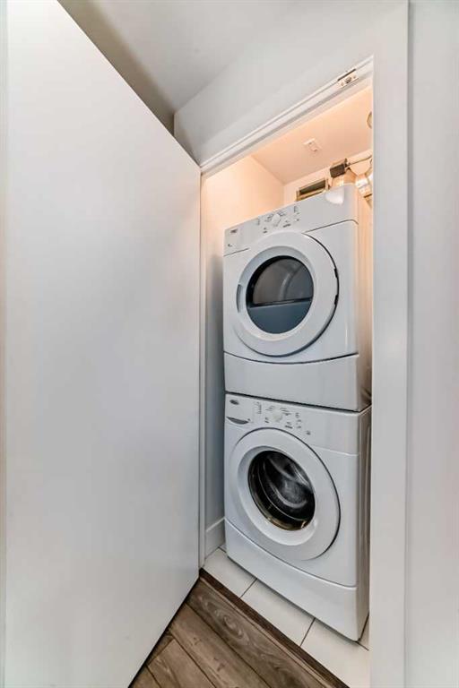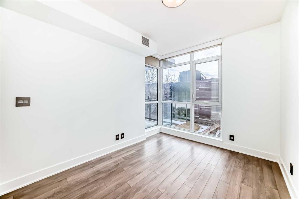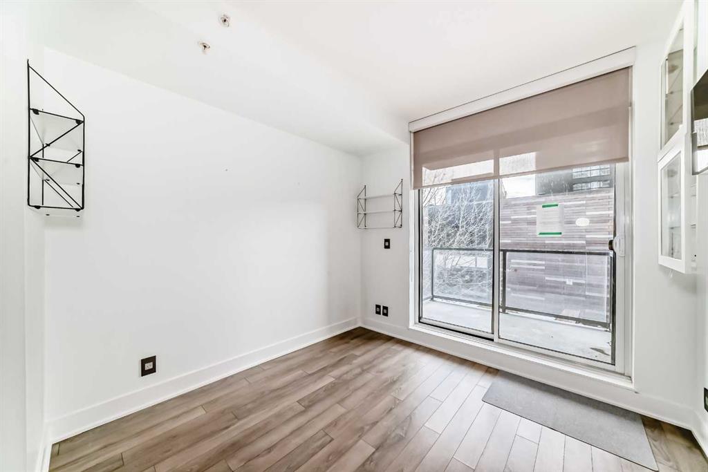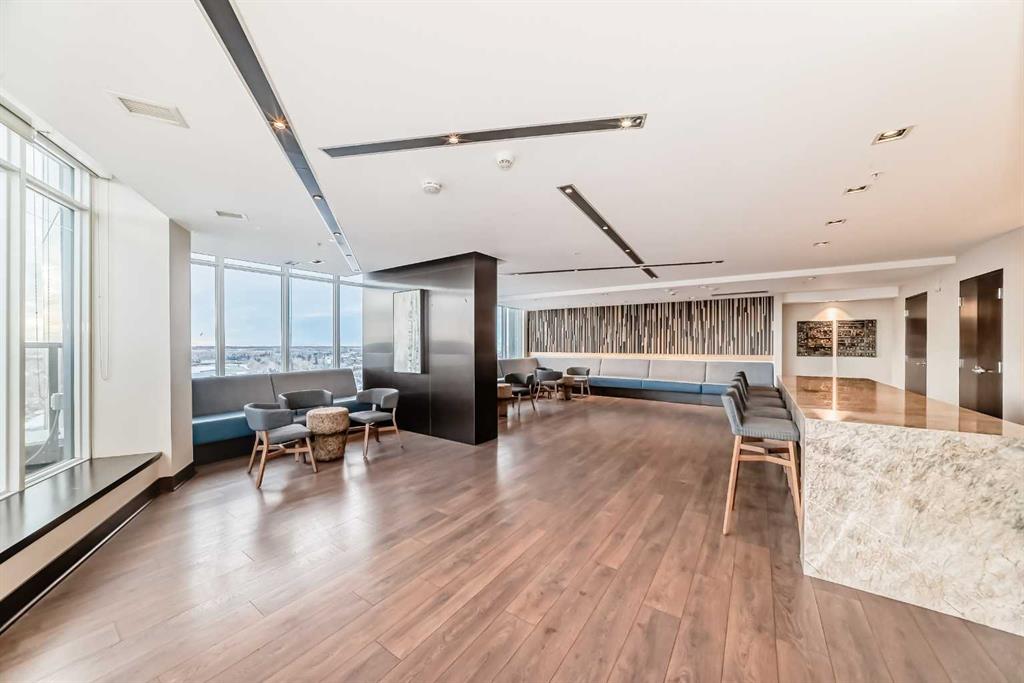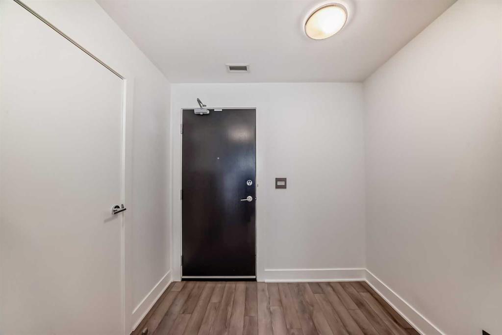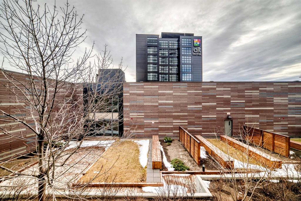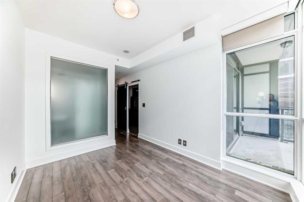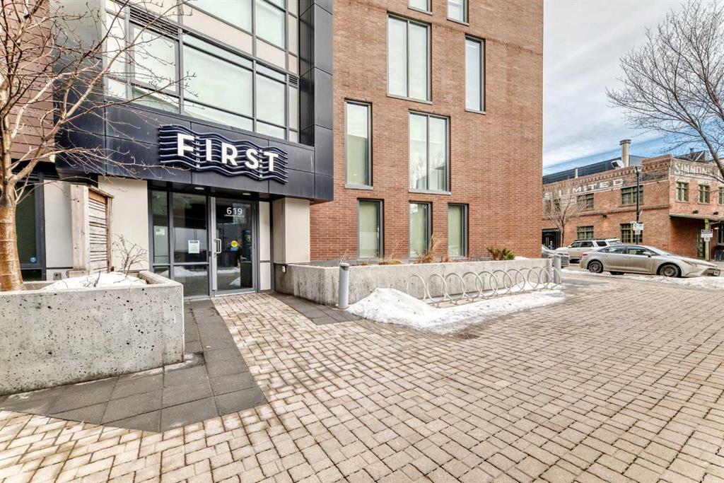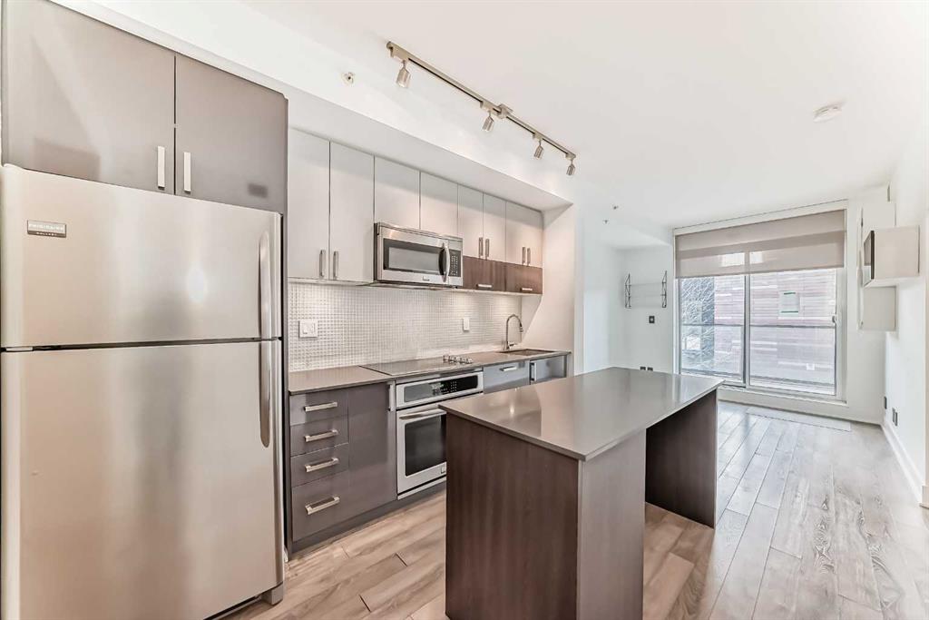 Welcome to FIRST, a modern and stylish condominium in the heart of Calgary’s vibrant East Village. This thoughtfully designed one-bedroom, one-and-a-half-bathroom home offers a functional layout, quality finishes, and plenty of natural light. Upon entering, you are welcomed by a practical foyer featuring in-suite laundry and a well-appointed 2-piece guest bathroom. The open-concept living area highlights 9-foot ceilings, large windows, and contemporary finishes that create a bright and inviting space. The modern kitchen is designed for both functionality and style, showcasing quartz countertops, stainless steel appliances, and a central island perfect for meal preparation, casual dining, or entertaining. Floor-to-ceiling sliding patio doors lead to a private east-facing balcony with custom wooden slat flooring, overlooking a beautifully landscaped courtyard—an ideal place to enjoy your morning coffee or relax in the evening. The spacious bedroom is separated by a modern sliding barn door and features a large walk-in closet and a stylish ensuite bathroom with a glass rainfall shower, creating a comfortable, spa-inspired retreat. Additional highlights include underground titled parking, a large storage locker, secure bike storage, and a pet-friendly environment within this well-managed building. Residents enjoy an impressive range of amenities including 24-hour concierge service, a fitness centre, yoga studio, guest suite, visitor parking, conference room, TV lounge, pool table lounge, and a spacious party room with kitchen. The 18th-floor rooftop terrace offers stunning views of the Bow River and downtown skyline, complete with BBQ areas for entertaining. Located just steps from the Bow River pathways, Simmons Building, Central Library, Stampede Park, restaurants, shopping, and public transit, this home offers exceptional access to everything downtown Calgary has to offer. Whether you are a professional, investor, or first-time buyer, this property delivers the perfect balance of urban lifestyle, comfort, and convenience.