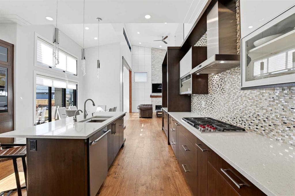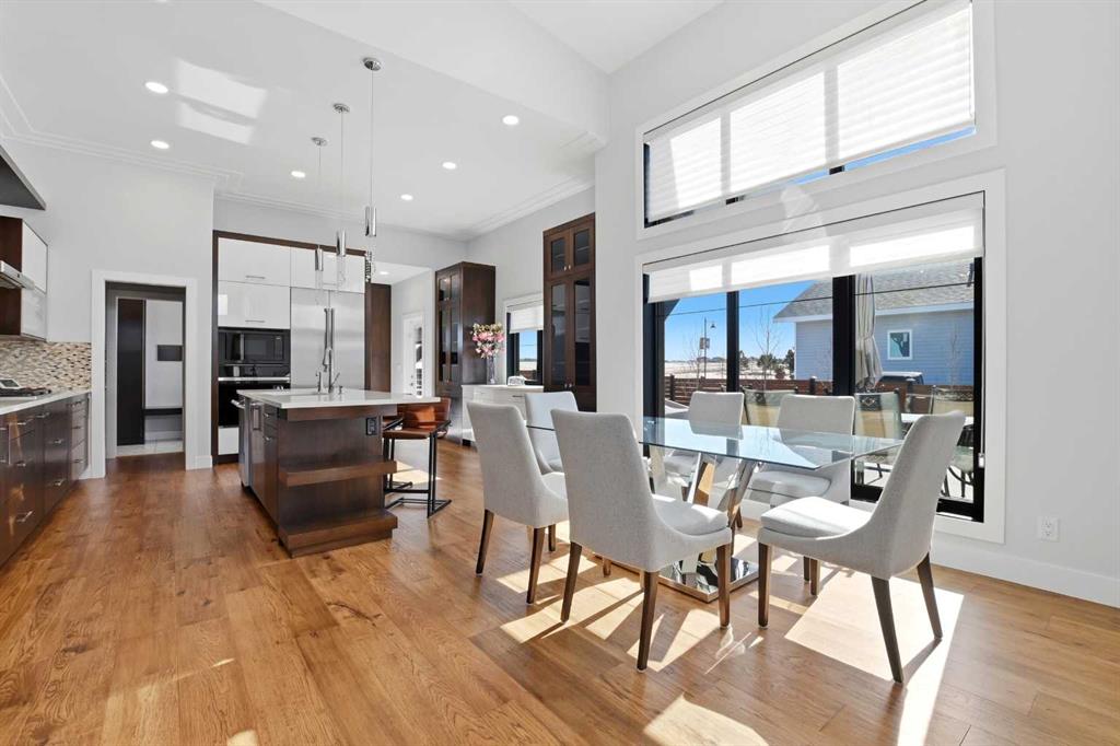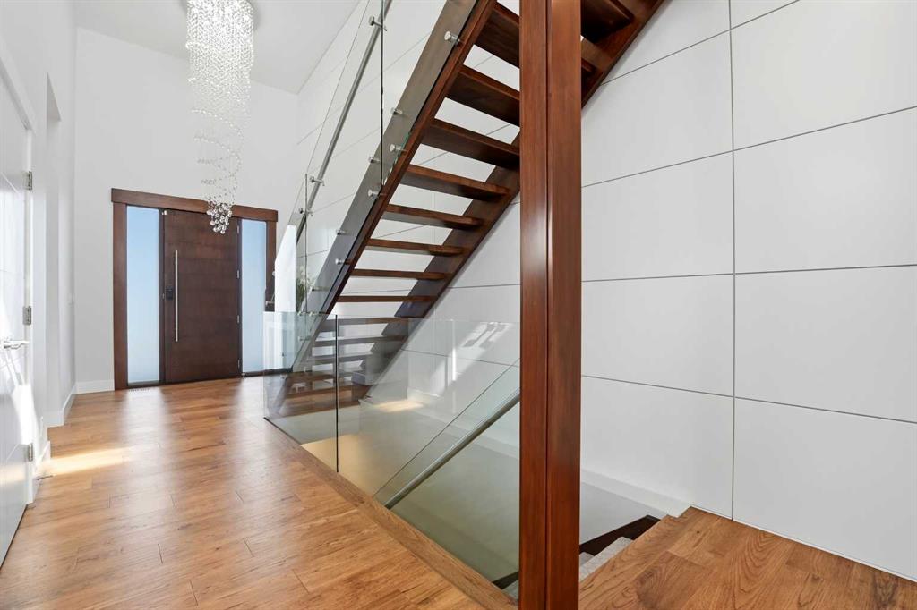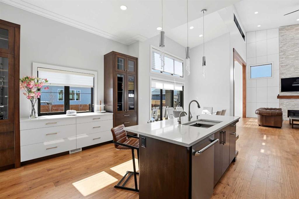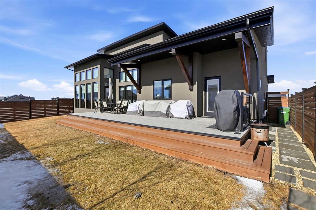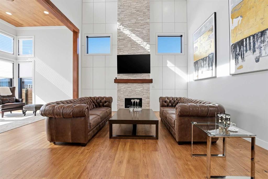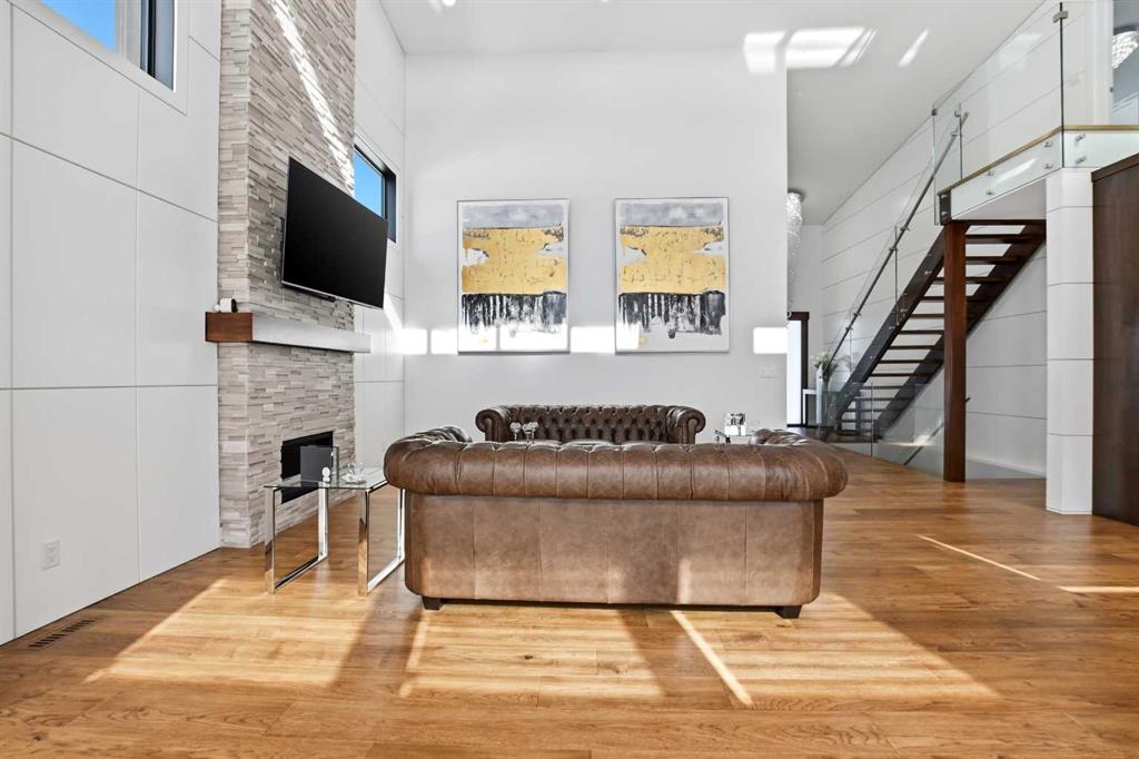 Beautiful MODERN home featuring EXTENSIVE UPGRADES AND HIGH END FINISHINGS. It boasts high ceilings and elegant tile work throughout. The sophisticated lighting design not only highlights the homes architectural beauty but also creates a warm, inviting ambiance. Each detail has been meticulously chosen to deliver the ultimate in comfort and style. Incredible curb appeal, grand entrance, stucco exterior and beautifully landscaped! Open the front door to your forever home and enjoy the modern luxury this home has to offer. An open floor plan soaring vaulted ceilings and massive triple pane (black interior) windows. Kitchen features, sub zero wine fridge, thermador dishwasher, wolf gas cook top, and oven! Expansive QUARTZ COUNTERTOPS, WALNUT CABINETRY, eat up island, reverse osmosis and soap dispenser are just a few more great features. The main floor boasts MAHAGONY HARDWOOD FLOORING, and the extended great room/sunroom features in floor heat. The living room features floor to ceiling NATURAL STONE fireplace wall with a wood mantle. There is a main floor laundry featuring a sink, cabinets and more beautiful white QUARTZ COUNTERTOPS. The main floor bedroom is currently used as an office and adjacent to the stunning 3-piece bath. The STAIRS are solid wood with OPEN RISERS and quality glass railing that lead to your PRIMARY bedroom. An oasis of its own, featuring walk-in closet with custom walnut built in cabinetry, and a 5 piece FULLY TILED ENSUITE. The ensuite has operational IN FLOOR HEAT, quartz counter tops, with dual sinks, and makeup desk, modern lighting, two shower heads, soaker tub and a water closet! The fully developed basement features OPERATIONAL IN FLOOR HEAT, 3 spacious bedrooms, one with its own walk-in closet, a large family room (34'10"x 31'3") with built in TV wall unit, and a functional wet bar with elegant herring bone back splash. There are two stunning spa like bathrooms, fully tiled with modern lighting. More great features this home offers: gas line to deck, composite front deck, glass railing, and duradeck on back deck, front FIR PILLAR, triple pane windows, mud room is tiled, walnut cabinets, wet bar/butlers pantry, custom panels, heated garage floor with floor drain, garage man door, modern overhead silent close door. Situated in the desirable and esteemed community of Timberstone, with an amazing array of shopping amenities nearby.