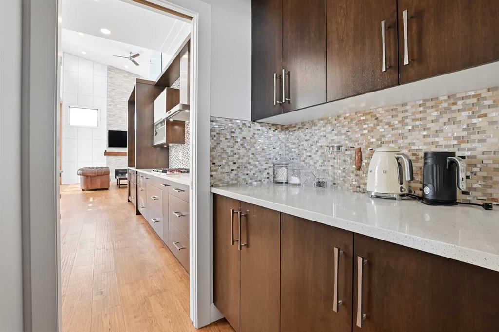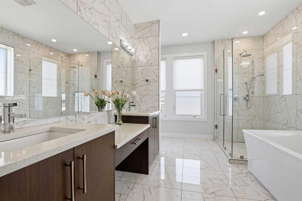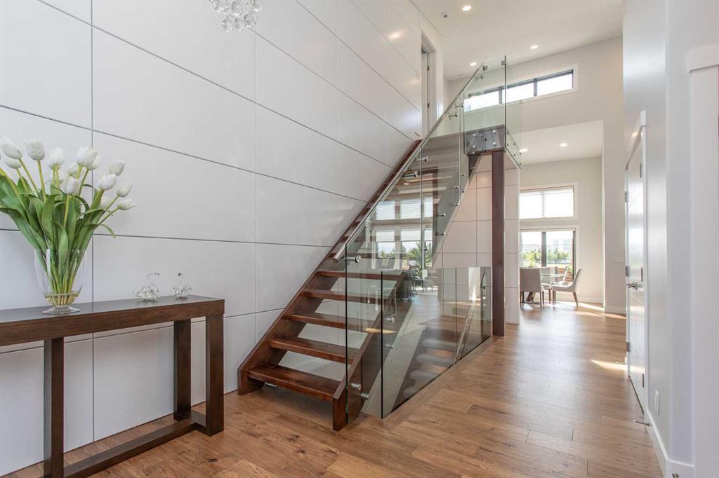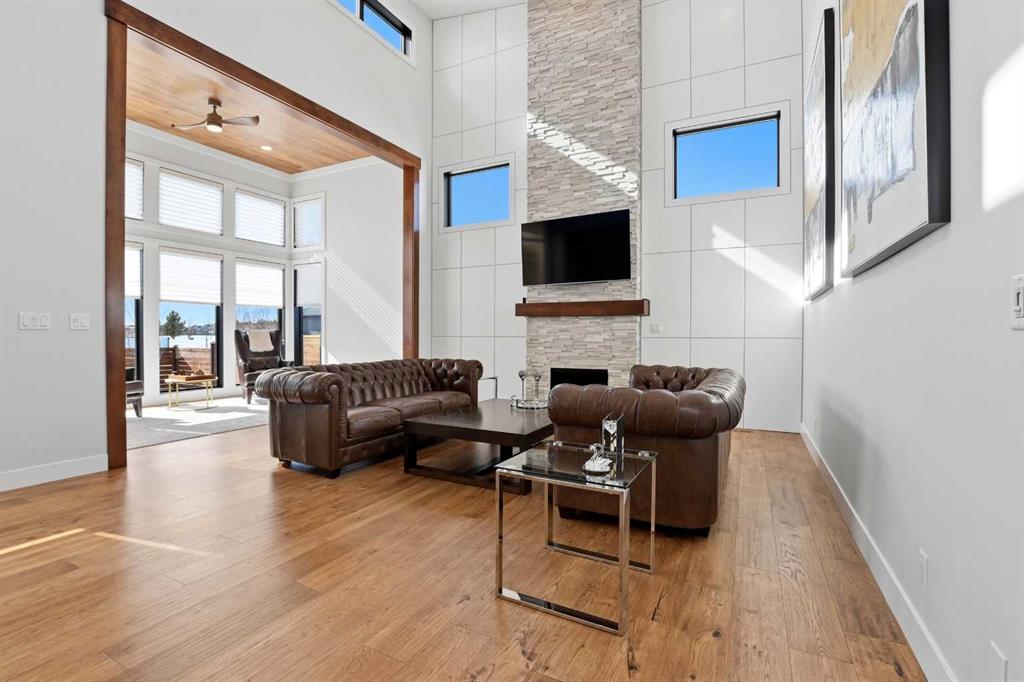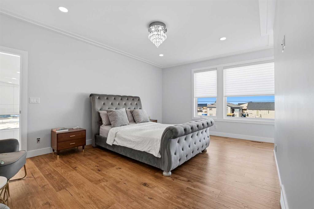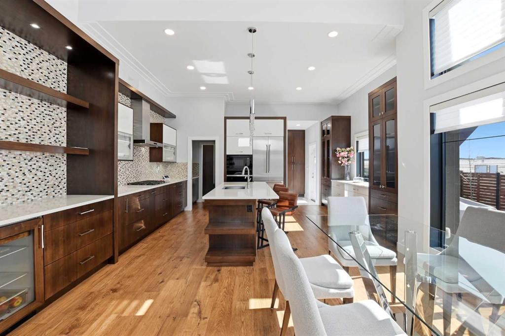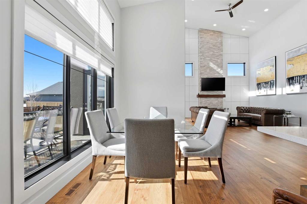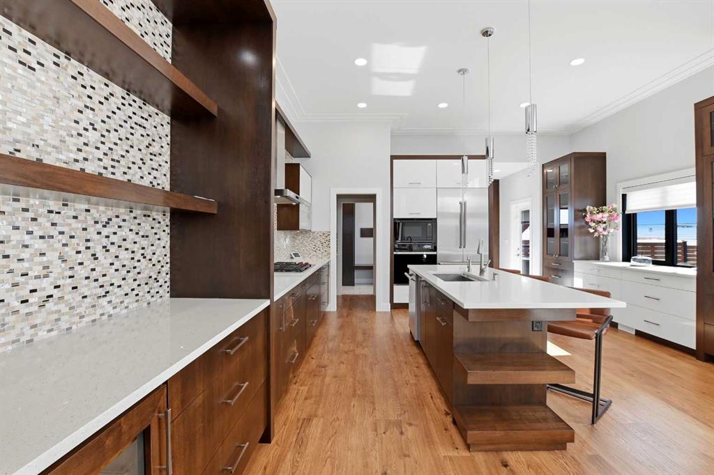 Beautiful MODERN home featuring EXTENSIVE UPGRADES AND HIGH END FINISHINGS. It boasts high ceilings and elegant tile work throughout. The sophisticated lighting design not only highlights the homes architectural beauty but also creates a warm, inviting ambiance. Each detail has been meticulously chosen to deliver the ultimate in comfort and style. Incredible curb appeal, grand entrance, stucco exterior and beautifully landscaped! Open the front door to your forever home and enjoy the modern luxury this home has to offer. An open floor plan soaring vaulted ceilings and massive triple pane (black interior) windows. Kitchen features, sub zero wine fridge, thermador dishwasher, wolf gas cook top, and oven! Expansive QUARTZ COUNTERTOPS, WALNUT CABINETRY, eat up island, reverse osmosis and soap dispenser are just a few more great features. The main floor boasts MAHAGONY HARDWOOD FLOORING, and the extended great room/sunroom features in floor heat. The living room features floor to ceiling NATURAL STONE fireplace wall with a wood mantle. There is a main floor laundry featuring a sink, cabinets and more beautiful white QUARTZ COUNTERTOPS. The main floor bedroom is currently used as an office and adjacent to the stunning 3-piece bath. The STAIRS are solid wood with OPEN RISERS and quality glass railing that lead to your PRIMARY bedroom. An oasis of its own, featuring walk-in closet with custom walnut built in cabinetry, and a 5 piece FULLY TILED ENSUITE. The ensuite has operational IN FLOOR HEAT, quartz counter tops, with dual sinks, and makeup desk, modern lighting, two shower heads, soaker tub and a water closet! The fully developed basement features OPERATIONAL IN FLOOR HEAT, 3 spacious bedrooms, one with its own walk-in closet, a large family room (34'10"x 31'3") with built in TV wall unit, and a functional wet bar with elegant herring bone back splash. There are two stunning spa like bathrooms, fully tiled with modern lighting. More great features this home offers: gas line to deck, composite front deck, glass railing, and duradeck on back deck, front FIR PILLAR, triple pane windows, mud room is tiled, walnut cabinets, wet bar/butlers pantry, custom panels, heated garage floor with floor drain, garage man door, modern overhead silent close door. Situated in the desirable and esteemed community of Timberstone, with an amazing array of shopping amenities nearby.