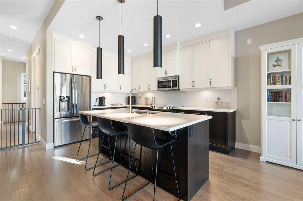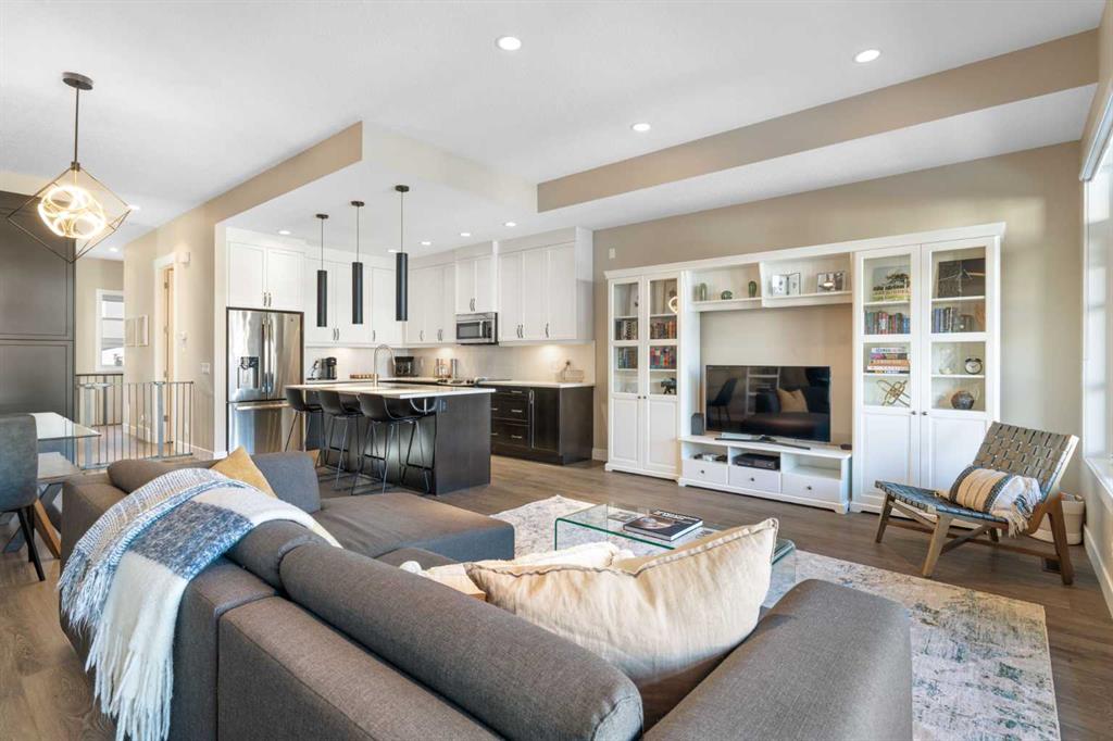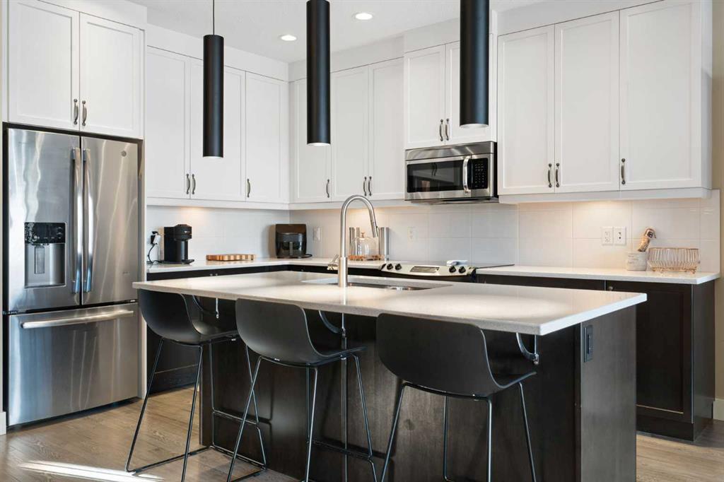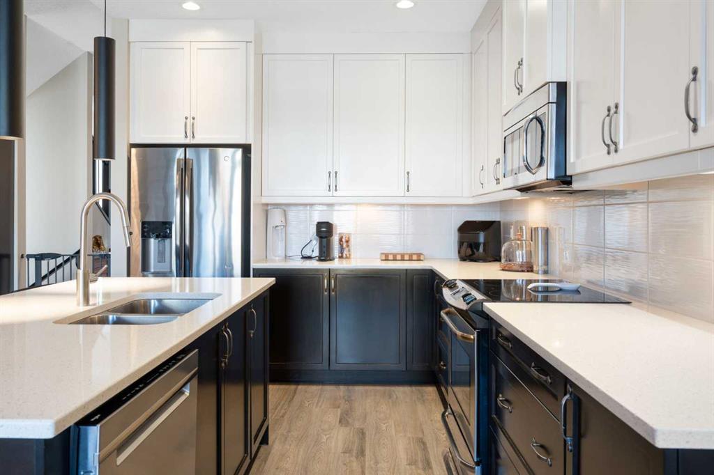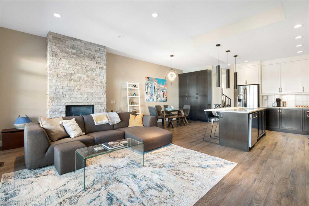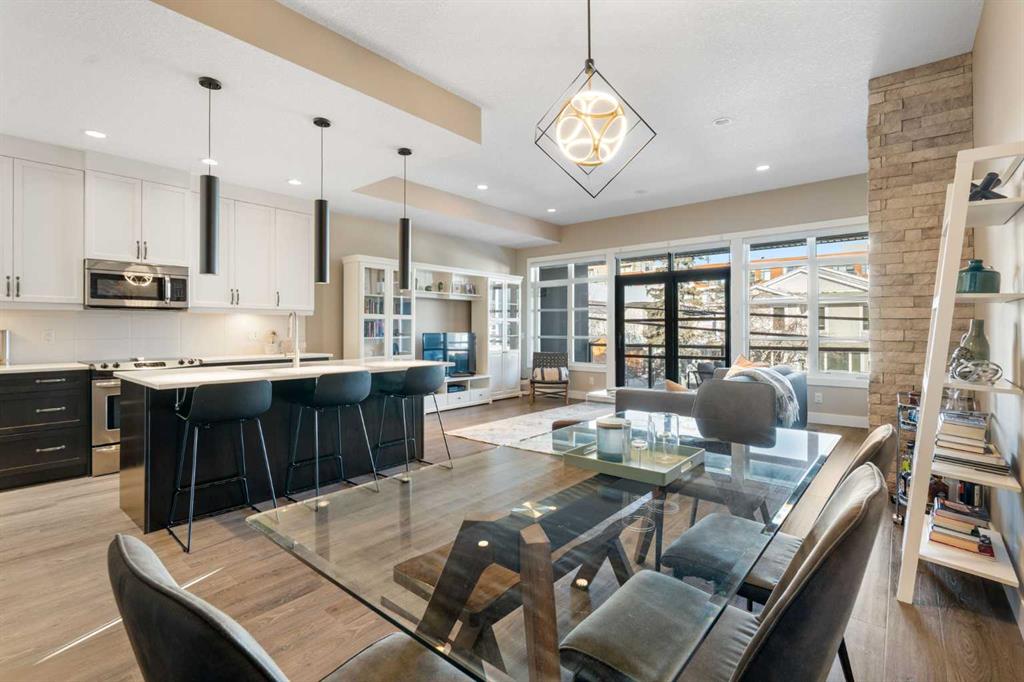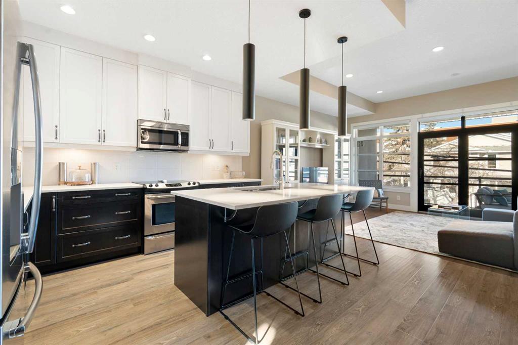 Welcome to this stunning contemporary townhome in the sought after community of Altadore, just steps from the vibrant shops, restaurants, and cafés of Marda Loop. Offering 1800+ sq ft of thoughtfully designed living space, this beautifully appointed home blends modern design with everyday functionality. The bright and open main floor features a large sliding patio door & windows that flood the space with natural light, creating an inviting atmosphere for both relaxing and entertaining. The gourmet kitchen is the centerpiece of the home, complete with quartz countertops, a large island, and sleek contemporary cabinetry, seamlessly connecting to the dining and living areas. A cozy living room with a gas fireplace and access to the private courtyard patio makes this level ideal for hosting or enjoying quiet evenings at home. Upstairs, the spacious primary bedroom offers a luxurious ensuite and generous closet space. Two additional bedrooms on the upper floor is ideal for a growing family or for hosting family and friends. Additional features include direct access from the attached garage and covered parking, all within minutes of downtown and close to parks, pathways, and top-rated schools. An exceptional opportunity to own a stylish inner-city home in one of Calgary’s most desirable neighbourhoods.