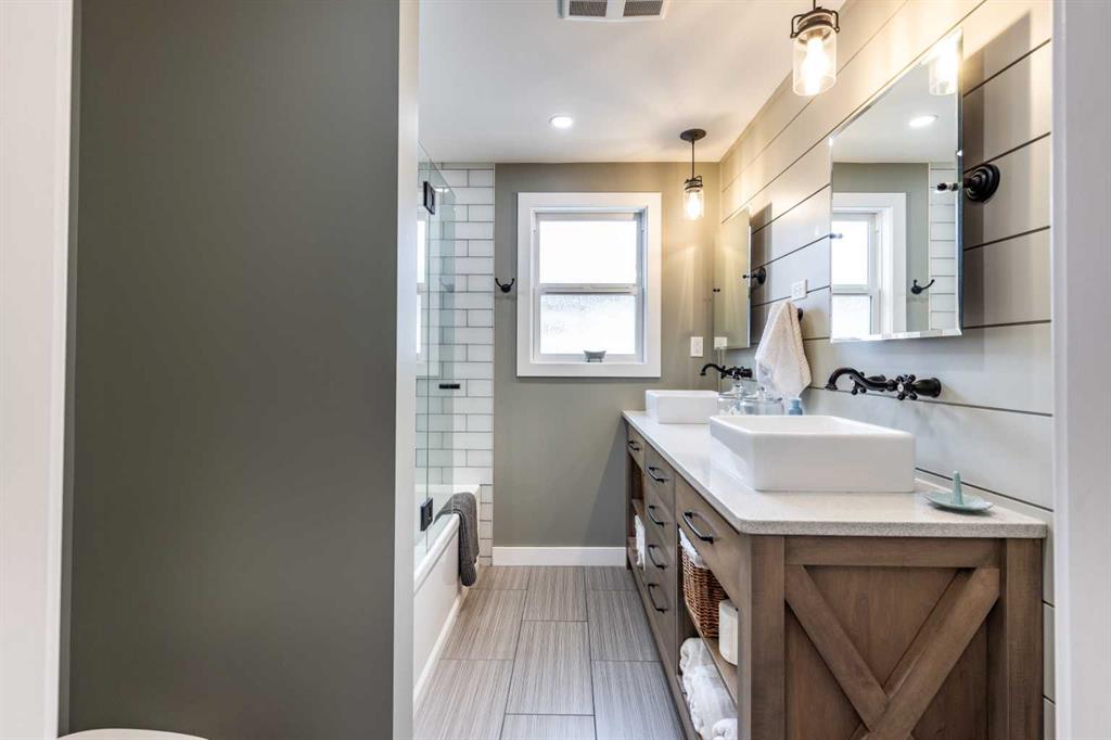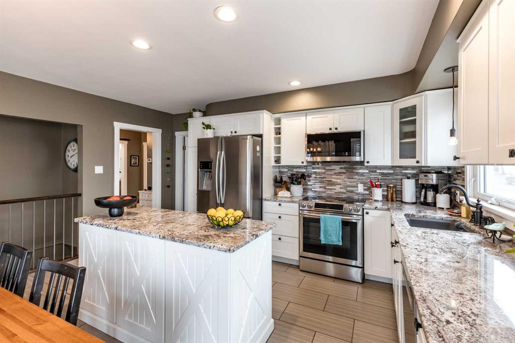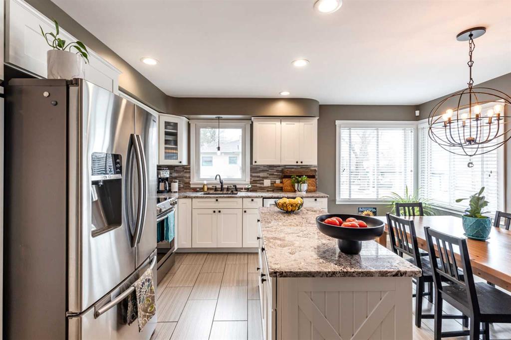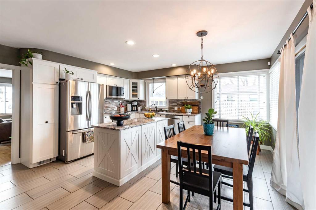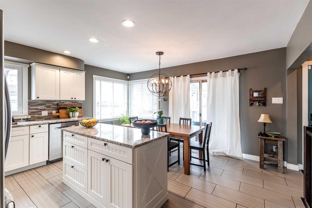 This charming, raised mid-century bungalow offers extensive upgrades while maintaining its original character. The bright living room features beautiful original hardwood floors and large windows that fill the space with natural light. The custom kitchen has been thoughtfully renovated with quality cabinetry, granite countertops, new appliances, a stylish backsplash, and updated lighting, creating a functional and inviting space for everyday living and entertaining. The adjacent dining area features sliding patio doors that open onto a large covered deck with a gas line for your BBQ, making indoor-outdoor entertaining easy and enjoyable. The main floor includes a spacious primary bedroom and a fully renovated 4-piece bathroom, along with a front office that could easily function as a second bedroom if desired. The fully renovated basement offers two additional bedrooms, a large family room, a beautifully renovated 3-piece bathroom, a spacious laundry room and a convenient laundry chute. Step outside to enjoy the beautifully landscaped yard featuring underground sprinklers in the front and back, irrigation for garden beds, a large covered deck, and a lower sitting area with a pergola, perfect for relaxing or entertaining. A new fence and retaining wall add both privacy and curb appeal. A standout feature of the property is the heated triple-car garage(26 x 36), with one bay featuring an 8 ft door, ideal for larger vehicles, storage, or workshop space. Numerous additional upgrades include newer windows, updated plumbing, added insulation in the walls and attic, new flooring, fresh paint, and updated light fixtures throughout, making this an extremely efficient and comfortable home. Major mechanical updates include a furnace and hot water heater (2016) and 100 amp electrical service. This well-maintained home offers the perfect combination of mid-century charm and modern updates in a desirable SW Hill location.