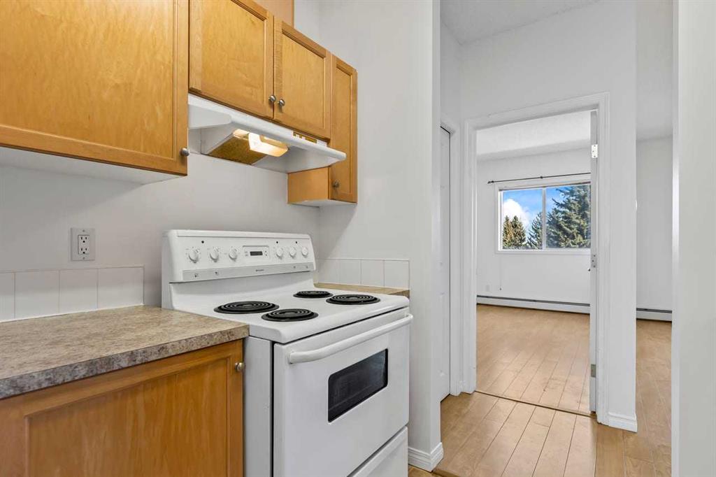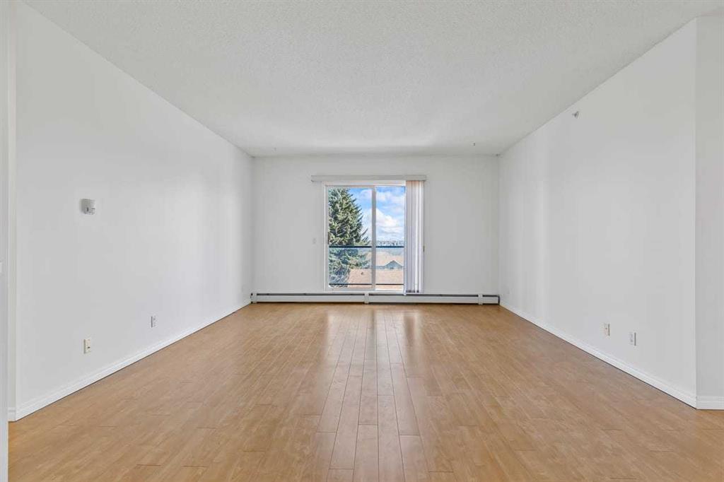 Bright, spacious, and freshly painted, this third-floor condo offers over 1,028 sq ft of comfortable single-level living in Queensland’s Valhalla Ridge. With 2 bedrooms, 2 full bathrooms, 9-ft ceilings, and a large covered balcony, this is an excellent opportunity for buyers looking for a well-kept home with generous room sizes, practical storage, and an easy southeast Calgary location. The layout opens into a large foyer and expansive living and dining area finished with light-toned hard-surface flooring, crisp white walls, and broad windows that bring in natural light and frame a treed, elevated outlook. A sliding glass door leads to the oversized covered balcony with glass railing—an inviting extension of the living space with open views over mature trees and neighbouring rooftops. The kitchen is functional and efficient, with light wood cabinetry, ample counter space, white appliances, a double sink, and a pass-through to the dining area that keeps the main living space feeling connected. The primary bedroom is generously scaled and includes a walk-in closet plus a private 4-piece ensuite. The second bedroom offers excellent flexibility for guests, roommates, or a home office, with its own closet, window, and easy access to the second full 4-piece bathroom. A separate in-suite laundry room adds convenience and extra storage capacity, while the titled underground parking stall and assigned storage area help round out the package. The building also features a welcoming lobby/common seating area and attractive exterior presence. Located in established Queensland, this home places you near the Bow River corridor, Fish Creek Provincial Park, parks and pathways, with convenient access to Bow Bottom Trail and Canyon Meadows Drive for day-to-day commuting and getting around the city. The result is a bright, functional condo with standout square footage, a smart 2-bed/2-bath layout, a large balcony, and the added value of underground parking and storage—all in a well-situated southeast Calgary community. Book your showing and see the space, layout, and view for yourself.
