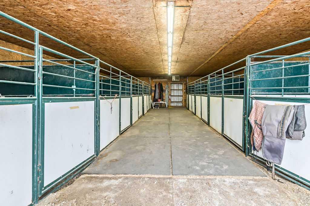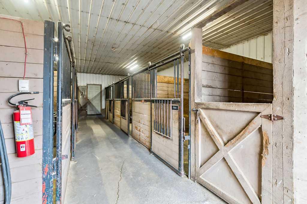 This turnkey, 23-stall equestrian facility features an indoor riding arena, 17 paddocks, and 2 homes, with all the infrastructure necessary to operate a successful boarding, training, and show/event business. The main home has been professionally renovated and offers 2,145 square feet above grade, plus a fully developed basement. The second home is a 2-bedroom mobile, perfect for extended family or a live-in caretaker or staff member. There are multiple structures on the property, including 3 buildings with indoor stalls, a shavings storage building, and equipment storage. The main barn is attached to the indoor riding arena and includes 6 stalls, 4 wash stalls, an office area, and a tack room equipped with individual lockers for boarding clients. A nicely elevated viewing lounge offers spectacular views of the arena. The outdoor paddocks are well equipped with steel rail fencing, automatic watering systems, and shelters. There is also space for a 200' x 200' outdoor riding arena, along with approximately 10 additional acres that can be used to suit your needs. Ideally located within a 10-minute drive of Calgary’s Stoney Trail Ring Road, this property offers exceptionally easy access for you, your clients, and your guests. There is so much more to appreciate about this impressive property. Book your private showing at your convenience.