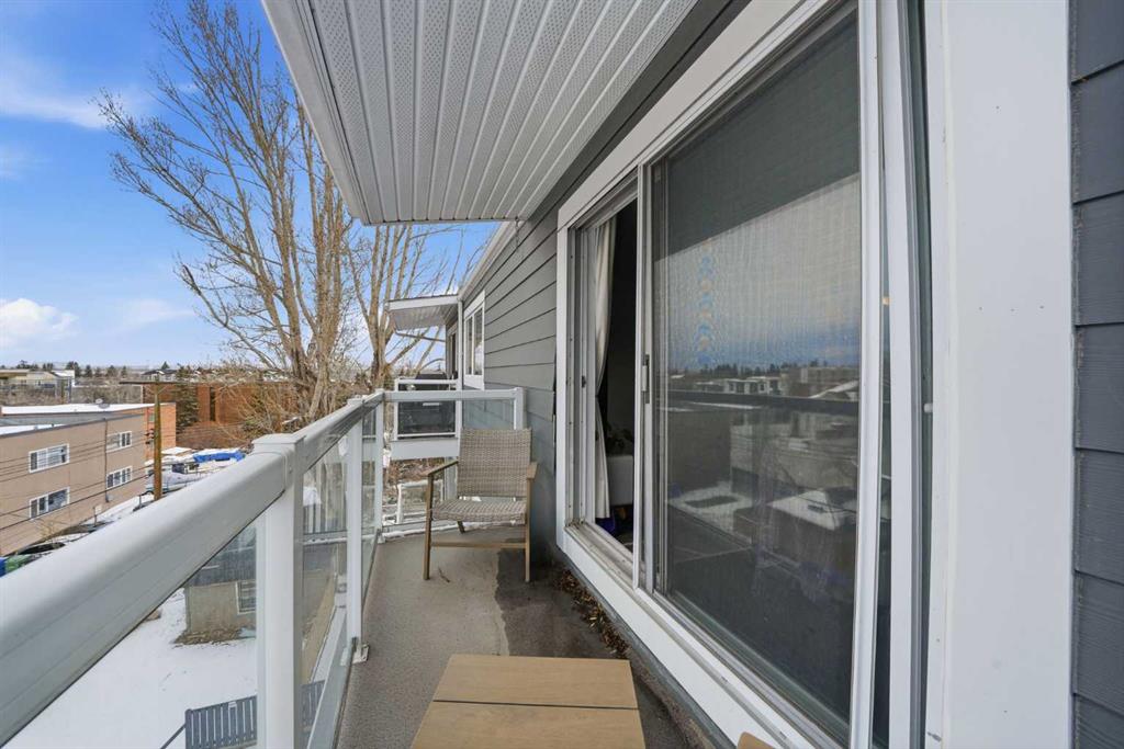 Top-Floor Condo with Downtown Views – Pet Friendly! Bright top-floor unit in a desirable Beltline location, offering the ideal downtown lifestyle. Only two units on the floor, with a west-facing balcony featuring glass railings and enough space for outdoor seating. A large rooftop patio just steps away provides panoramic views of Calgary’s skyline. Inside, the open-concept floor plan includes a modern kitchen with tile backsplash, stainless steel appliances, and room for a small island. The sunny south-facing bedroom overlooks treetops, while the full bathroom features a soaker tub and tiled backsplash. Durable laminate flooring runs throughout for a clean, cohesive finish. Highlights include: Newer free laundry facilities on main floor Assigned parking stall with plug-in Private storage room (not a cage) one floor below Pet-friendly building (with board approval) Fantastic walk and bike scores. Close to 17th Avenue shops, Buckmaster Park, restaurants, and transit. Central, vibrant, and move-in ready!