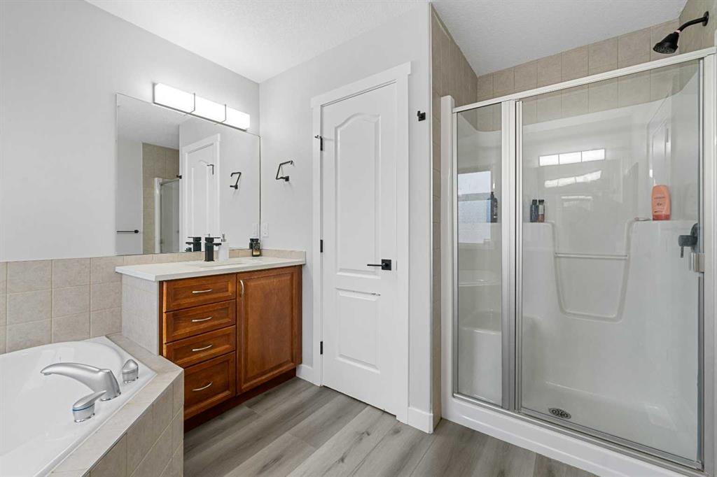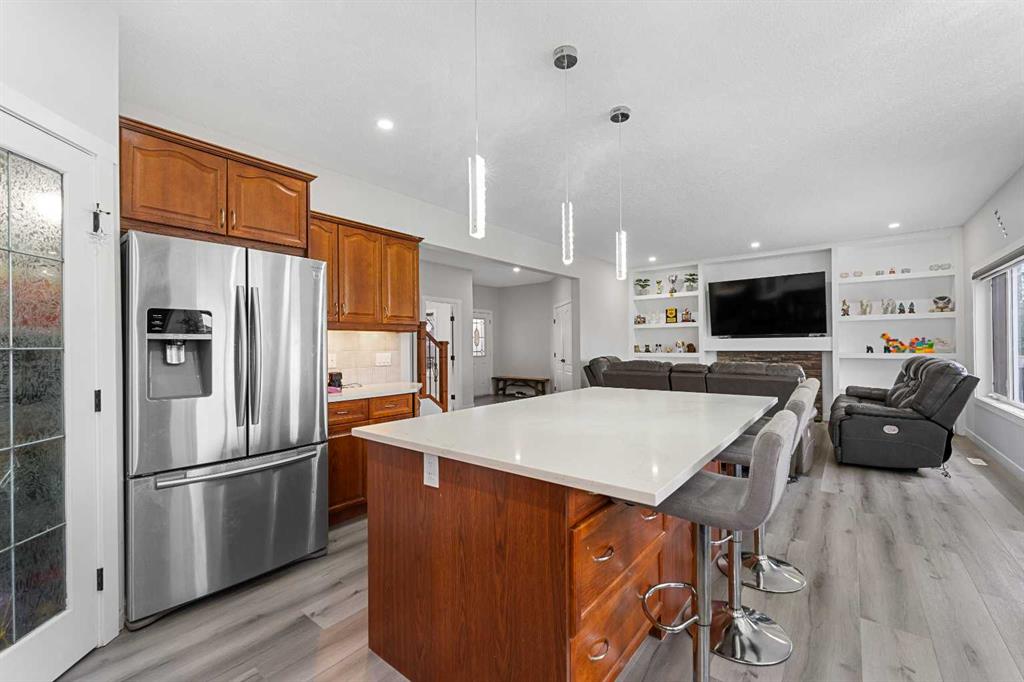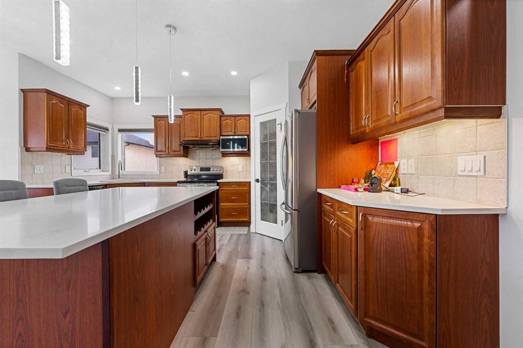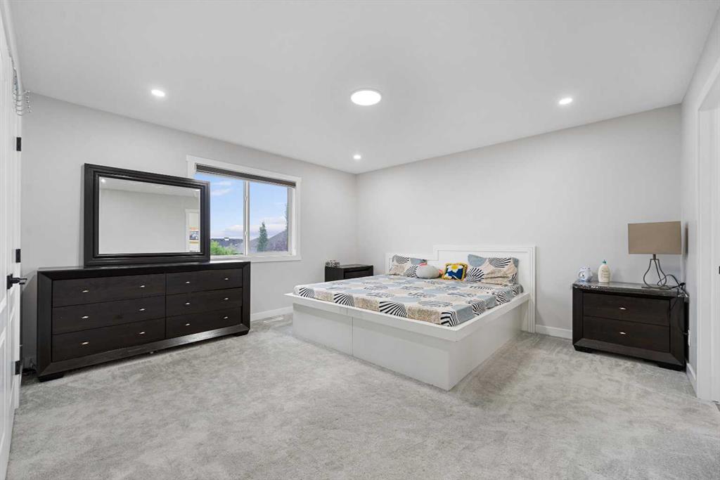 Directly Across From a Park | Seconds to Prairie Waters Elementary School | Quick Walk to Chestermere Lake & All Shopping | Walkout Basement Suite(illegal) | Brand New Blinds | 2 Furnaces & 2 Hot Water Tanks | 2,542 SqFt | Total of 6 Beds & 3.5 Baths | Expansive Living Space | Open Floor Plan | Spacious Kitchen | Quartz Countertops | Stainless Steel Appliances | Extended Kitchen Island with Barstool Seating & Built-in Wine Rack | Walk-through Pantry | Large Windows | Bright Natural Light | Main Level Office | 4 Upper Level Bedrooms | Primary Ensuite with Soaking Jet Tub | Upper Bonus Room | Vaulted Ceilings | Upper Level Laundry Room | Walkout Basement Suite(illegal) | Separate Entry | 2 Basement Beds & 1 Bath | Incredible Backyard | Massive Lawn | Double Attached Front Garage | Driveway. What more could you ask for from this stunning 2,542 SqFt family home in the perfect location! The front door opens to a foyer with with closet space keeping it organized. The main level has great living space with a front family room and a living room with a gas fireplace. The living room open to the kitchen and dining make this the perfect to host friends & family. The kitchen is outfitted with wood cabinets, stainless steel appliances, laminate countertops and a centre island with barstool seating and a built-in wrack. The kitchen has a walkthrough pantry for dry goods storage that connects to the mud room & interior garage door. The dining room overlooks your backyard with large windows letting natural light beam through. The main level office is a bonus for your work-from-home lifestyle. Head upstairs to 3 additional bedrooms grandiose bedrooms a family room with vaulted ceilings & a full laundry room. The primary bedroom is paired with a walk-in closet and private 5pc ensuite with a deep soaking tub, dual vanities & a walk-in shower. Bedrooms 2 & 3 upstairs are both sizeable and share the 4pc bath with a tub/shower combo. The family room is extravagant and comfortable with plush carpet and large windows. The upper level laundry is a treat as its near majority of your bedrooms. Downstairs, the WALKOUT basement is set up as a suite(illegal) with its own separate access at the rear of the home. The open floor plan living room and kitchen provide space for flexible living and dining space. The basement kitchen has cabinets both above & below, stainless steel appliances and laminate countertops. The 2 bedrooms on this level are a great size & share the 3pc bath with a walk-in shower. This lower level has storage and the utility room! Step outside to a massive backyard with plenty of space for the adults to enjoy while the kids play in the park across the street! Your backyard has plenty of room for a large outdoor dining set and more! The location can't be beat; walking distance to Chestermere Lake, the major shopping complex with all amenities and the Prairie Waters Elementary School. Don't miss out, hurry and book your showing at this incredible family home today!