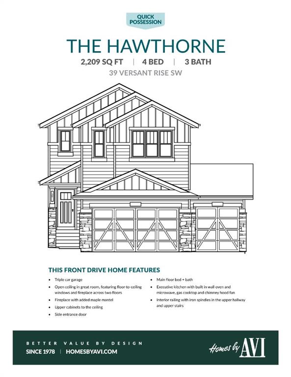 A TRIPLE ATTACHED GARAGE IS HOW THIS ONE INTRODUCES ITSELF—AND IT ONLY GETS BETTER FROM THERE. The entry doesn’t waste time trying to impress—it gets practical first. A MAIN-FLOOR BEDROOM with an ADJACENT 3-PIECE BATH sits right up front, ready for guests, family, or a workspace that doesn’t compete with the rest of the home. From there, the plan opens up exactly where it should. The kitchen anchors the middle of the home, designed with purpose: GAS COOKTOP, BUILT-IN WALL OVEN AND MICROWAVE, CHIMNEY HOOD FAN, QUARTZ SURFACES, AND EXTENDED CABINETRY—everything is where it should be, and it works the way you want it to when people are over or when it’s just a Tuesday night. Tucked behind, a WALK-THROUGH PANTRY connects directly to the mudroom and garage, keeping the everyday movement of the home efficient and out of sight. And then the space shifts. At the back of the home, the TWO-STOREY GREAT ROOM and dining nook take over—full-height windows, a FIREPLACE FEATURE WALL, and a vertical openness that pulls light deep into the main floor while still feeling grounded. It’s bright, architectural, and positioned exactly where you’ll spend most of your time. Upstairs, that volume carries through. The CENTRAL BONUS ROOM looks down into the great room below, keeping the connection between levels wide open and full of light. The two additional bedrooms each come with their own walk-in closet—no compromises there—while laundry is positioned directly off the primary walk-in closet, exactly where it should be. The primary retreat is set apart, complete with a 5-PIECE ENSUITE featuring a SOAKER TUB and DUAL SINK VANITY, creating a space that feels finished in all the right ways. The lower level isn’t an afterthought—it’s already set up to move forward. 9’ CEILINGS, a SEPARATE SIDE ENTRY, FINISHED BASEMENT STAIRS, bathroom rough-in, and TANKLESS HOT WATER give you a clean starting point, with the heavy lifting already done. Set in Vermilion Hill, a southwest Calgary community designed around its foothills setting, you get immediate ACCESS TO STONEY TRAIL, a direct route west to the mountains, and a neighbourhood plan built around PATHWAYS, PARKS, AND FUTURE SCHOOLS. It’s a location that gives you space—both in how it’s laid out and how it connects you beyond the city. The location works, and the home follows through. It might start with the garage, but it delivers everywhere else. Come see how it all fits together. • PLEASE NOTE: Photos are of a finished Showhome of the same model – fit and finish may differ on finished spec home. Interior selections and floorplans shown in photos.