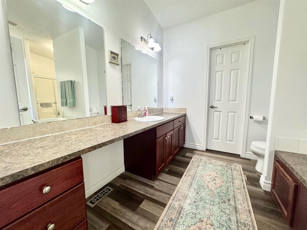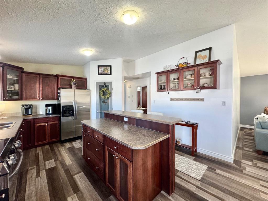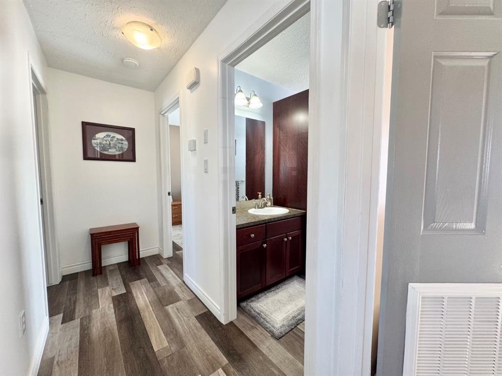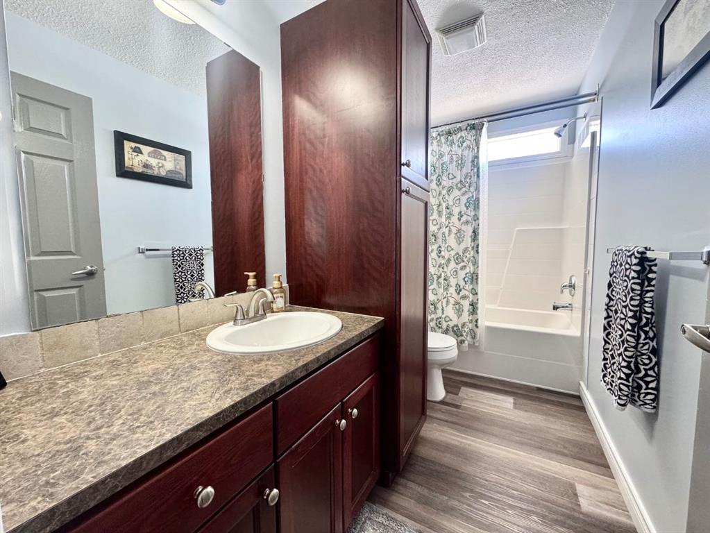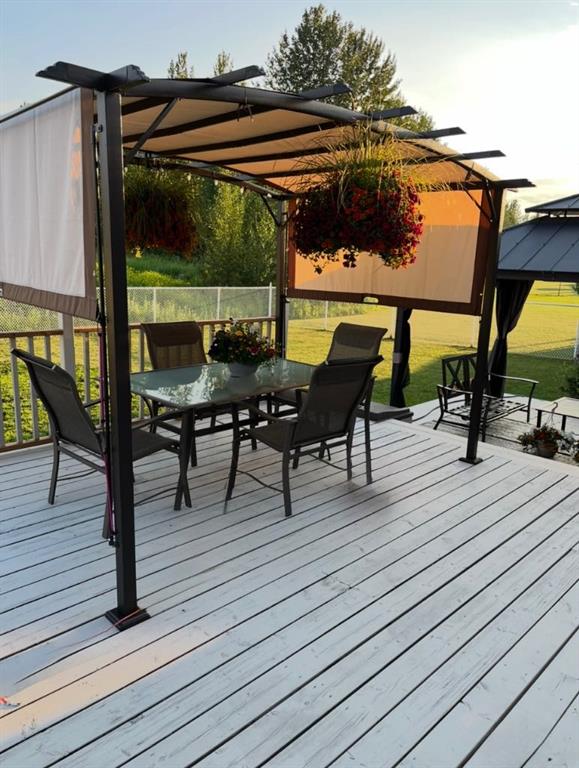 Welcome to this beautifully maintained 1,762 sq ft home, perfectly situated on a large cul-de-sac lot. Offering 3 spacious bedrooms and 2 full bathrooms, this property combines comfort, style, and functionality in an ideal setting. Step inside to an open, inviting living room filled with natural light and enhanced by vaulted ceilings and fresh paint. The home features new vinyl plank flooring, creating a modern and cohesive feel across every room. The large bedrooms provide plenty for family living or guests. The heart of the home is warm and welcoming, highlighted by a stunning gas fireplace, perfect for cozy evenings. The kitchen is equipped with a beautiful new stove, making it move-in ready for home cooks and entertainers alike. More significant recent updates include a new washer and dryer, hot water tank, new shingles, completely rebuilt furnace and the addition of air conditioning / heating wall unit for year-round comfort. Outdoor living is truly exceptional, with two expansive decks, one in the front and one in the back, both complete with charming gazebos. The fully fenced yard offers privacy and space for relaxation, entertaining, or family activities. The backyard backs onto mature trees with no neighbours behind, creating a peaceful, private setting. From the back deck, enjoy scenic views of the ski hill, adding a unique and picturesque touch to your everyday life. Meticulously cared for and thoughtfully updated, this home is a rare find in a desirable cul-de-sac location.