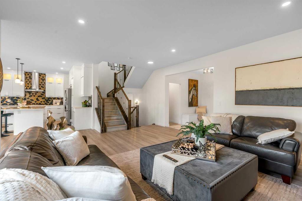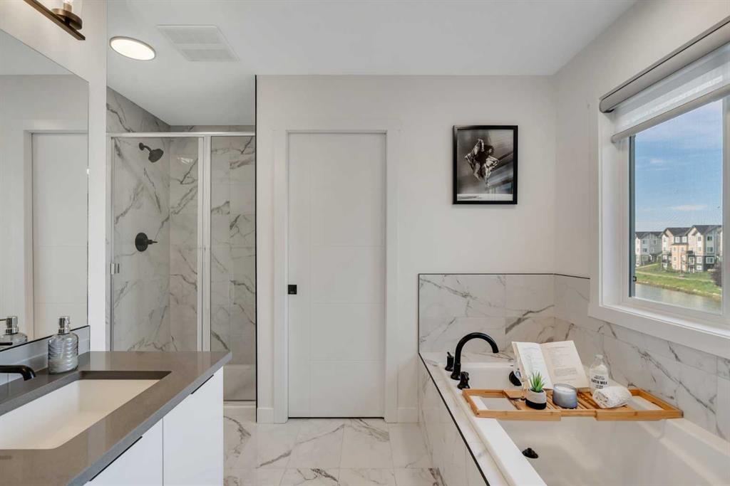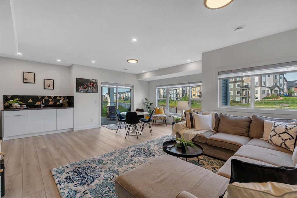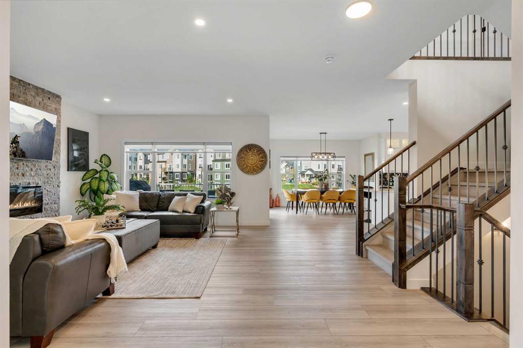 Welcome to this exceptional 6-bedroom, 4-bathroom estate—with a highly desirable main floor bedroom and full bathroom—ideally located on a premium 6,500 sq ft lot with direct access to the serene Bayside canal. Positioned within one of Airdrie's most sought-after neighborhoods, this home masterfully blends refined elegance, contemporary comfort, and luxury, offering an unparalleled lifestyle of sophistication and tranquility. As you approach, you’ll be drawn to the home’s exceptional curb appeal, complete with a triple car garage that balances prestige with practicality. Step inside, and you’ll be greeted by an expansive, open-concept floor plan filled with high-end finishes and thoughtful upgrades. The main level features a stunning living room with a stone-accented fireplace, creating a cozy ambiance for family gatherings. The spacious dining area offers unobstructed views of the canal, providing the perfect backdrop for elegant entertaining. The chef-inspired kitchen is a showstopper, outfitted with built-in premium appliances, a gas range with a hood fan, a large island, ample pantry storage, and a convenient garbage disposal. A main-level bedroom/office and a full 3-piece bathroom add to the home’s functionality, along with a mudroom for added convenience. Upstairs, you’ll find three generously sized bedrooms, two full bathrooms, and a spacious bonus room with views of the nearby playground—a perfect setting for family movie nights. The master suite is truly a retreat, featuring a large walk-in closet and a luxurious 5-piece ensuite with dual sinks, a deep soaker tub, a private water closet, and its own private balcony overlooking the serene canal. The fully finished walkout basement is an entertainer’s dream. With two additional bedrooms, a full bathroom, and a lavish wet bar, this expansive recreation room offers endless possibilities. Large windows allow for an abundance of natural light while providing uninterrupted views of the canal, creating a peaceful setting for both lively gatherings and quiet nights in. Outside, the private backyard oasis awaits, offering direct access to the canal. It is the perfect spot for relaxing mornings, summer evenings, or year-round family fun. This rare gem offers not just a home, but an elevated lifestyle—a harmonious blend of luxury, tranquility, and natural beauty. Homes of this caliber in Bayside don’t last long—schedule your private showing today and make this dream home yours.