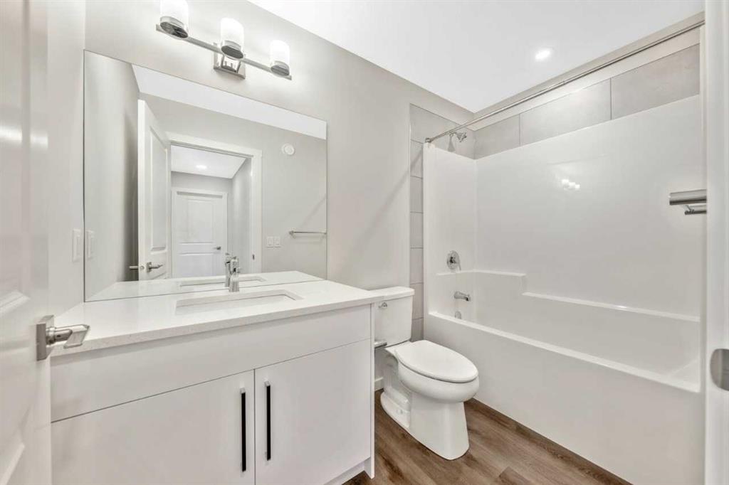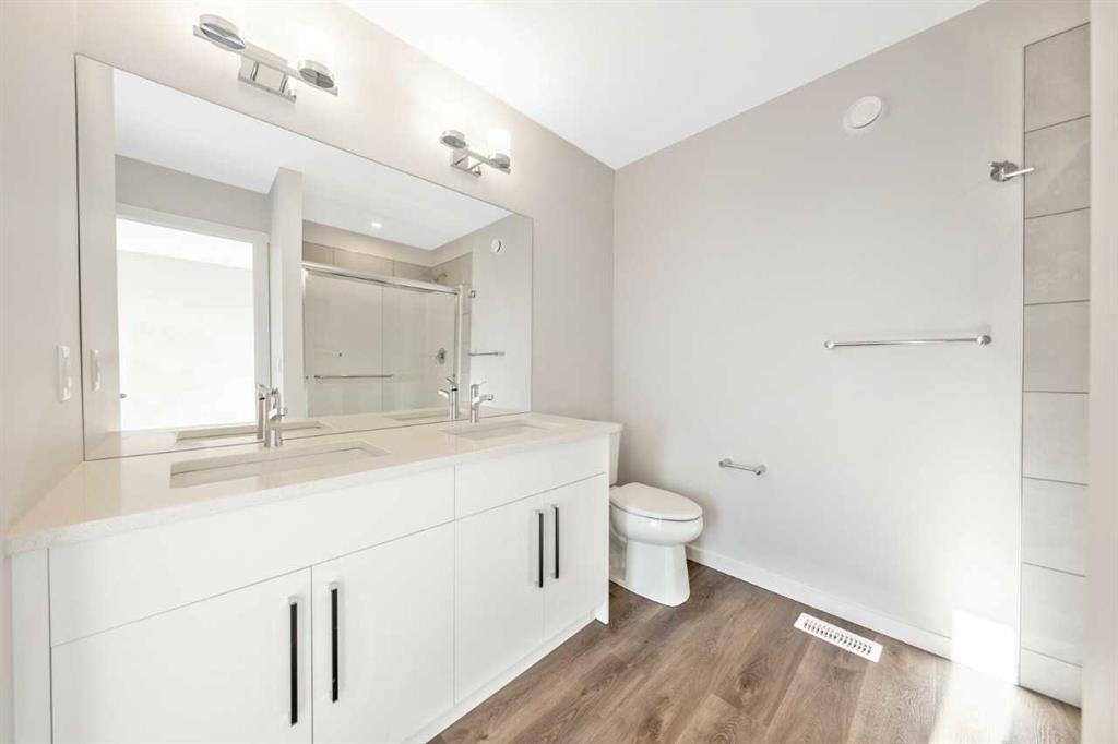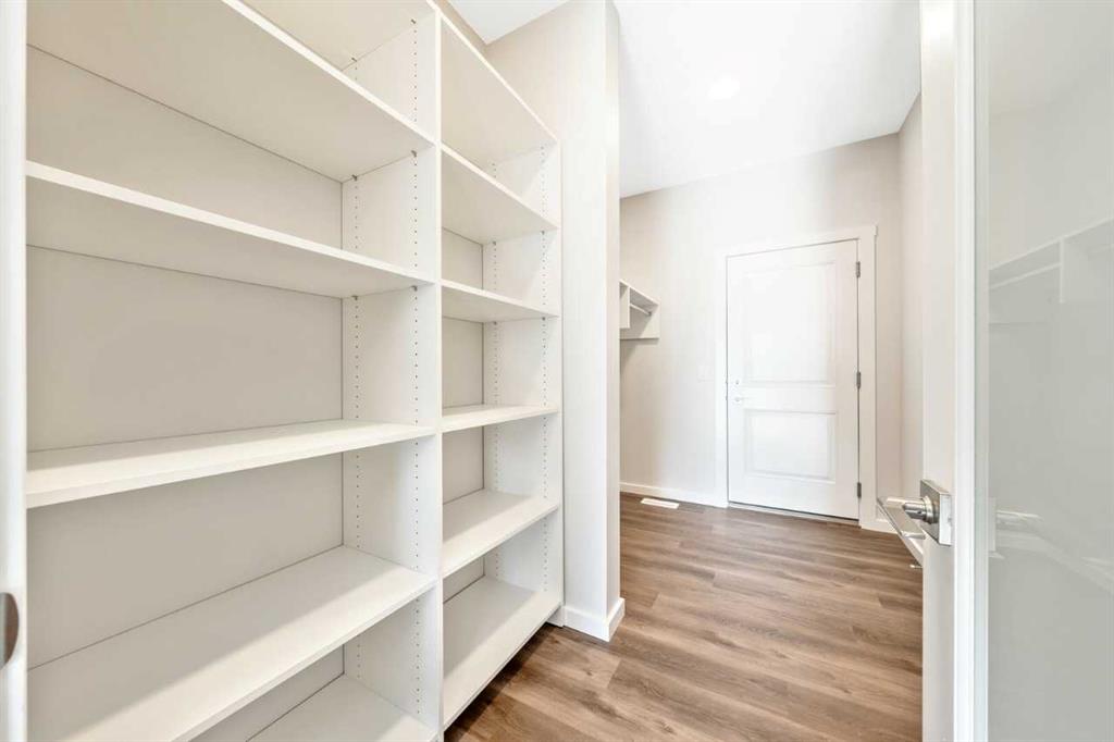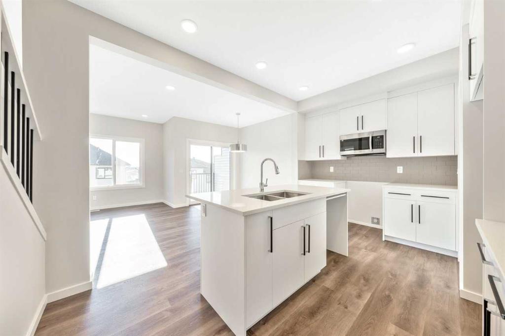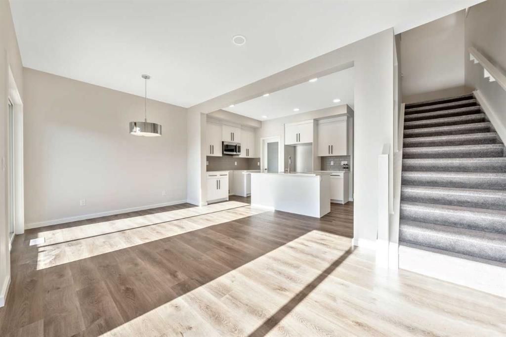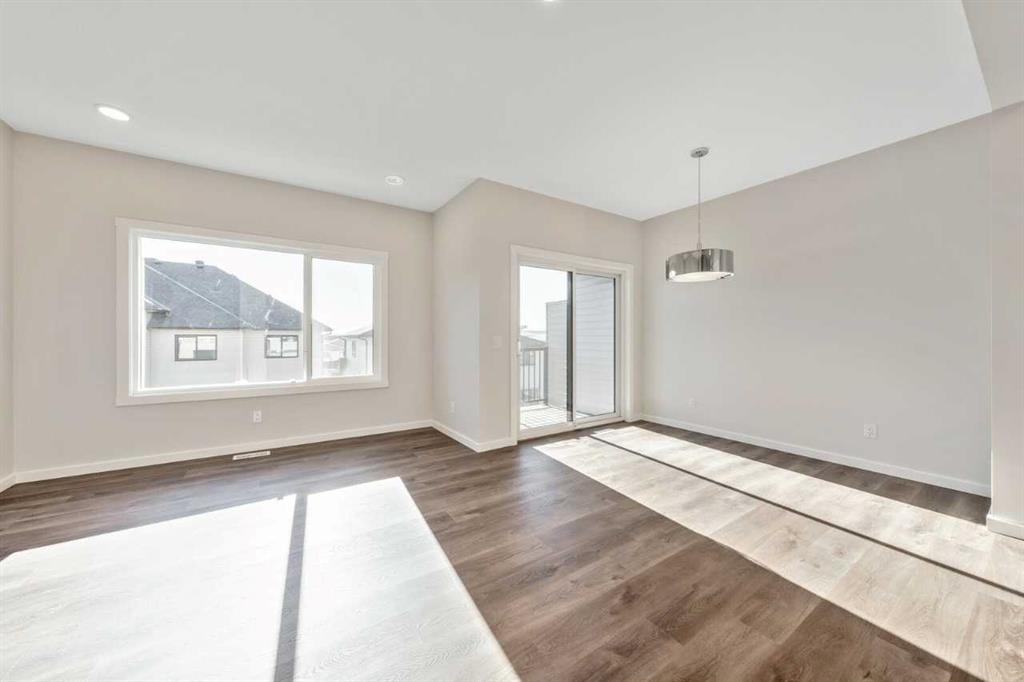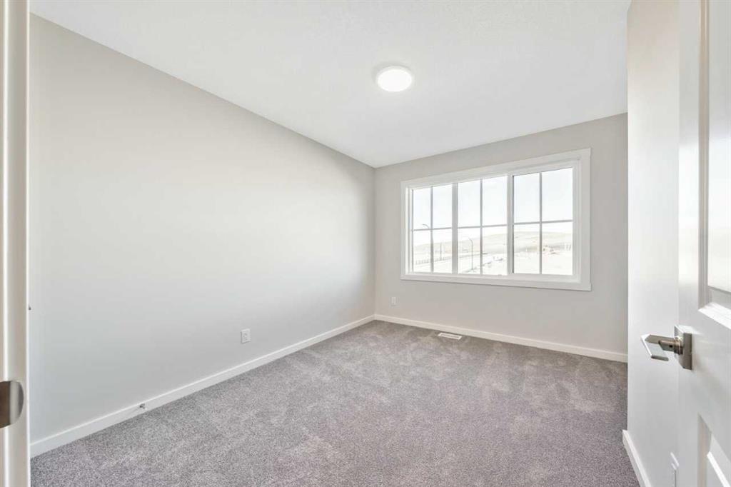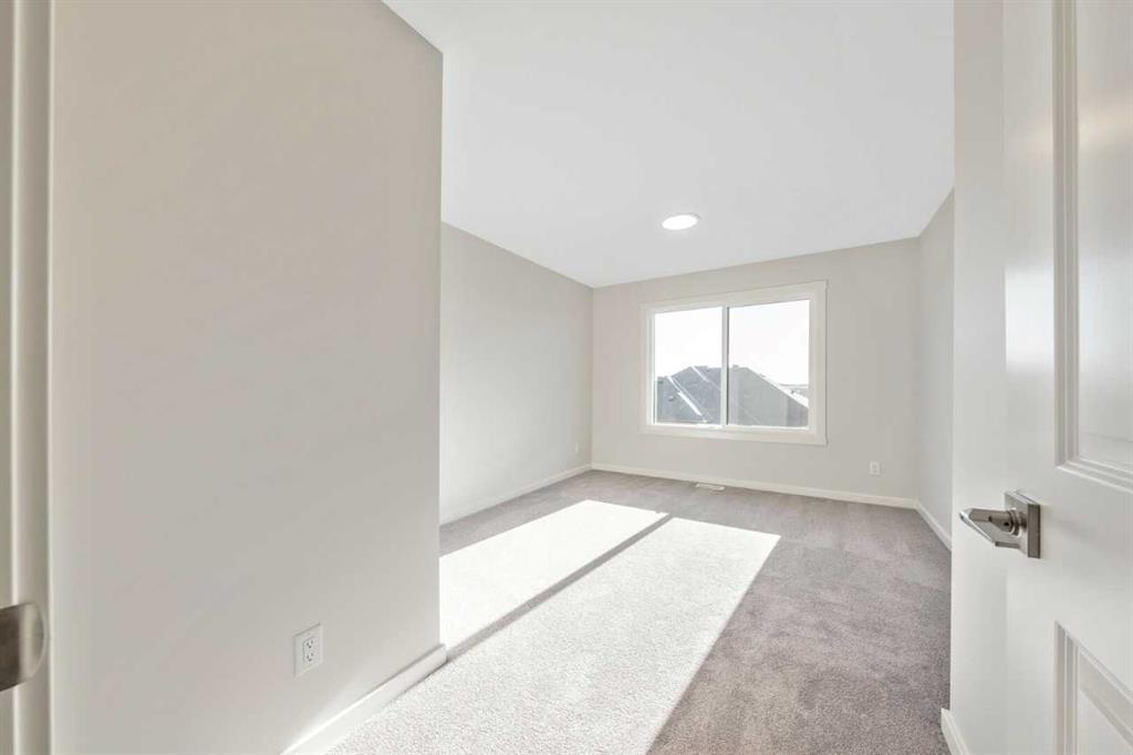The Eden is designed for contemporary living. Entering this home, you are welcomed by a half bath, closet and convenient walk-through mudroom and pantry leading to the central kitchen. The main floor opens up to reveal a spacious great room and dining area, leading to the covered balcony - a perfect retreat to enjoy year round. The second level boasts a primary bedroom with ample space, including an ensuite offering dual sinks and adjacent walk-in closet. Upstairs also offers two secondary rooms, a bathroom, and laundry area. To round out this home, the attached double-car garage provides secure parking and additional storage space. Enjoy breathtaking mountain scenery from both the covered main floor deck and primary bedroom. Your 9-ft walkout basement with a south-facing backyard brings in abundant natural light throughout the day. The mudroom and walk-through pantry are designed for convenience and organization, with melamine shelves for structure and style. The attached double-car garage (18’ x 22’) for added convenience and secure parking. There are no condo fees – enjoy maintenance-free living without extra monthly costs. Functional second-floor laundry area featuring a side-by-side washer and dryer. Open-concept main floor with 9' ceilings and expansive windows that bring in abundant natural light. Photos are representative.