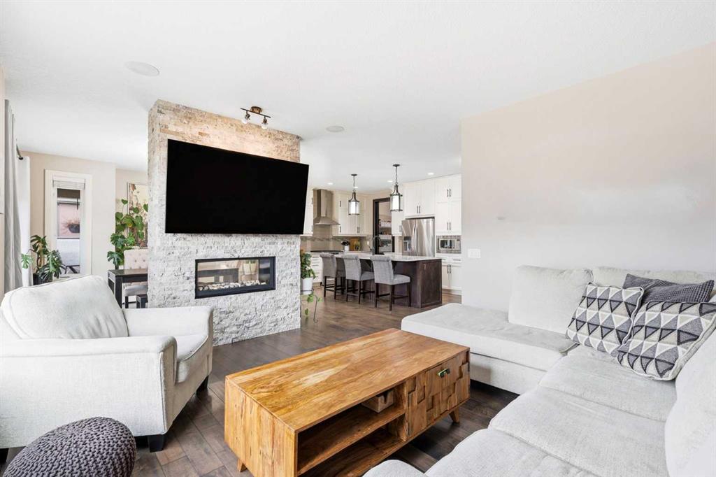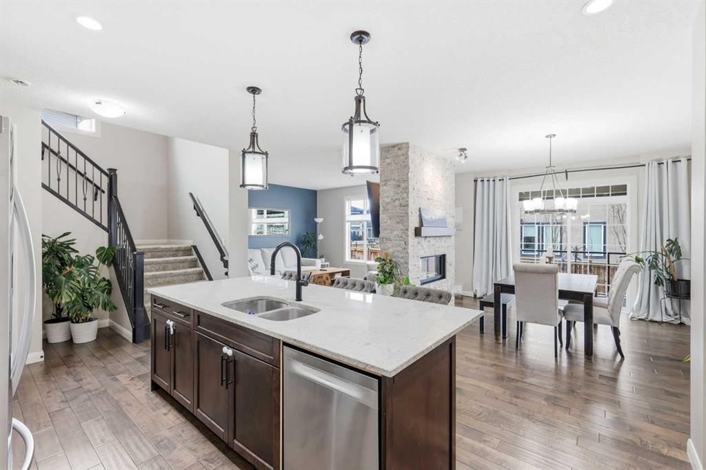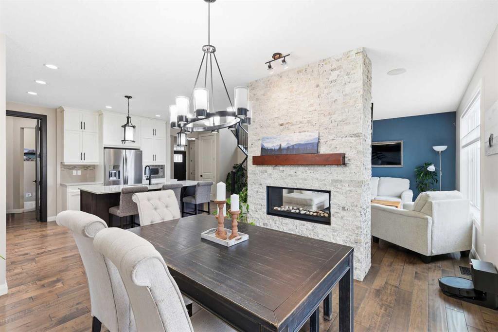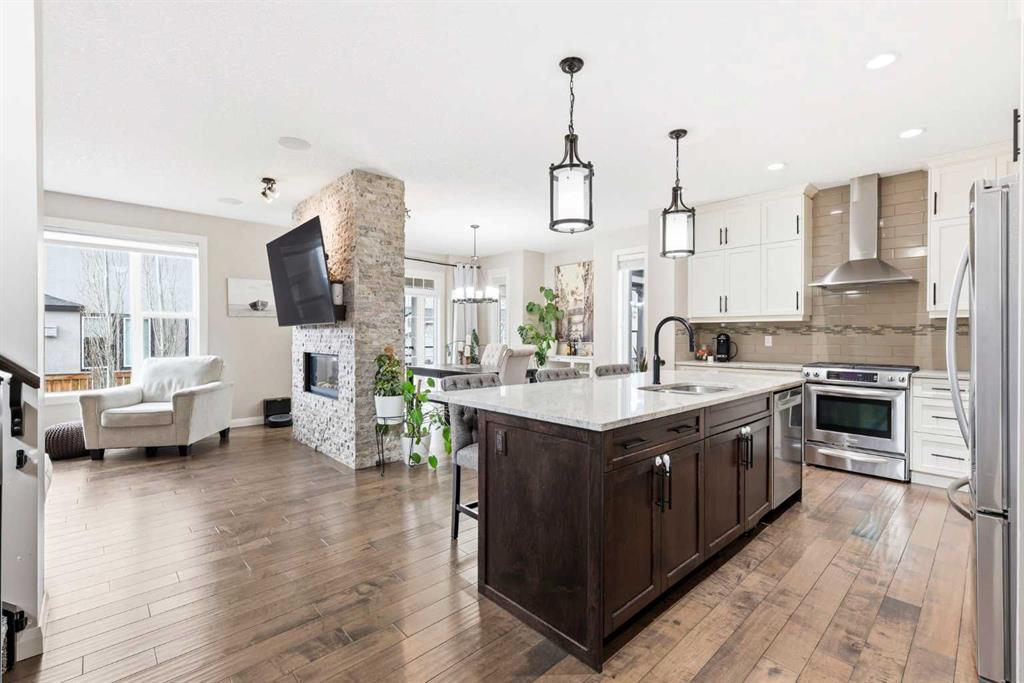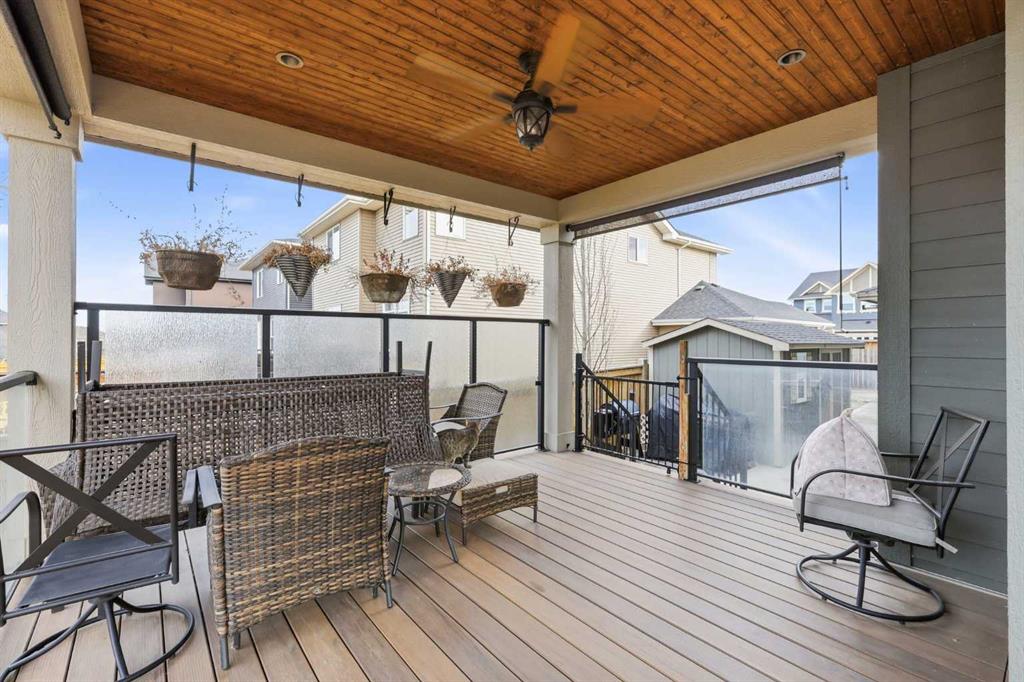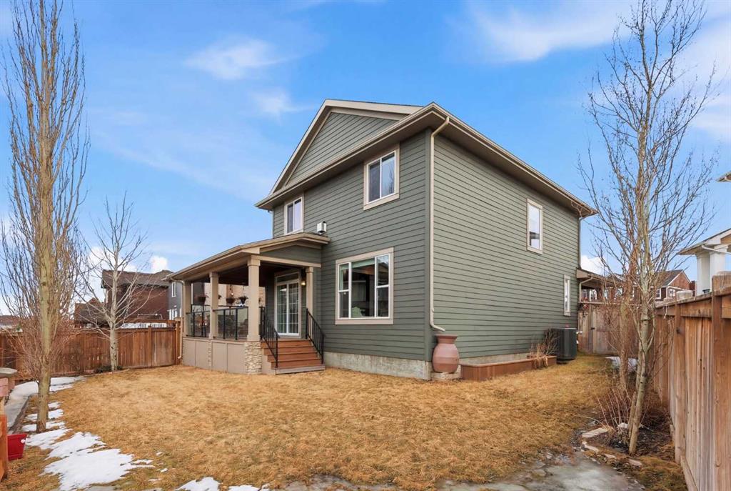 Welcome to 113 Kinniburgh Way, a stunning family home wrapped in premium concrete fibre siding, nestled in Chestermere’s highly desirable Kinniburgh community. Boasting over 2,400 sq. ft. of bright, above-grade living space, the open-concept main floor is elevated by soaring 9ft ceilings and built-in in-home speakers. The layout is designed for both entertaining and everyday life, featuring a dedicated home office, a spacious living and dining area, and a gorgeous kitchen showcasing granite counters and a walk-through pantry. This connects right to the mudroom and the oversized 24' x 22' heated double attached garage, complete with ample storage, and luxury Epoxy flooring, making Alberta winters a breeze. Upstairs, you'll find a massive family room perfect for movie nights, an upper-level laundry room, and three generous bedrooms—including a luxurious primary suite with a large walk-in closet and a spa-like 5-piece ensuite. The fully finished basement adds incredible value with a sprawling 25' x 25' rec room, a private fourth bedroom, and an additional full bath. Outside, your backyard oasis awaits: enjoy summer evenings on the maintenance-free composite covered deck complete with built-in lighting, overlooking a beautifully landscaped yard equipped with a convenient irrigation system and an oversized shed for extra storage. Located just minutes from Chestermere Lake, top-rated schools, and parks, this exceptional 4-bedroom, 3.5-bath home truly has it all, including A/C—schedule your private showing today!