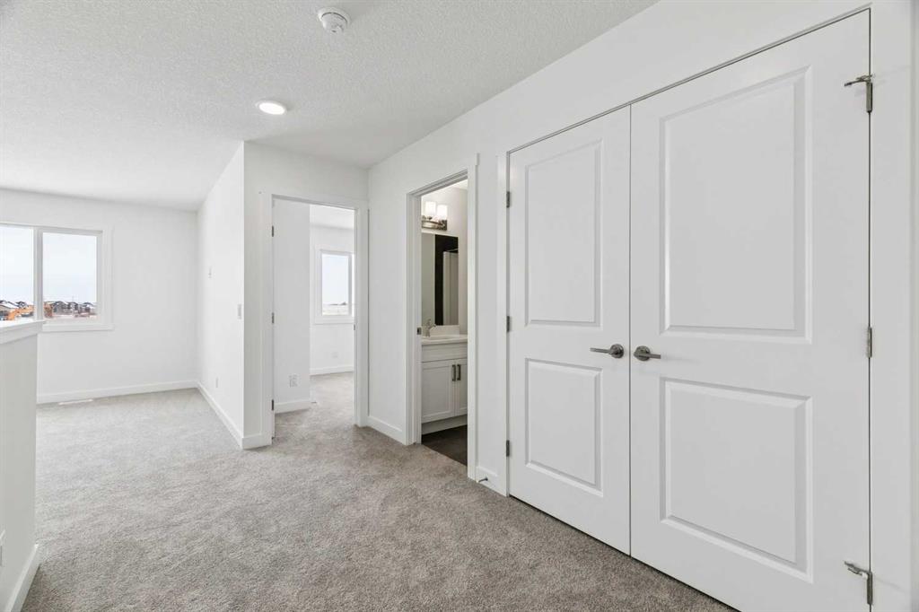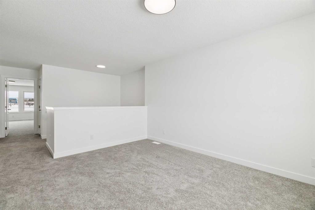 Located in The Ranch, one of Strathmore’s most sought-after new communities, residents will love the small-town charm, scenic surroundings, and quick access to schools, shopping, and parks. Experience the perfect blend of style, space, and serenity with the Jayne by AkashHomes. This thoughtfully designed 1,979 sq ft home offers 3 bedrooms, 2.5 bathrooms, and an open-concept layout that’s perfect for growing families. The main floor features 9’ ceilings, a spacious kitchen with quartz countertops, a walk-through pantry, and a central island ideal for entertaining. Upstairs, enjoy the convenience of second-floor laundry, a generous bonus room, and a luxurious primary suite with a walk-in closet and ensuite. **PLEASE NOTE** PICTURES ARE OF ACTUAL HOME. HOME IS COMPLETE.