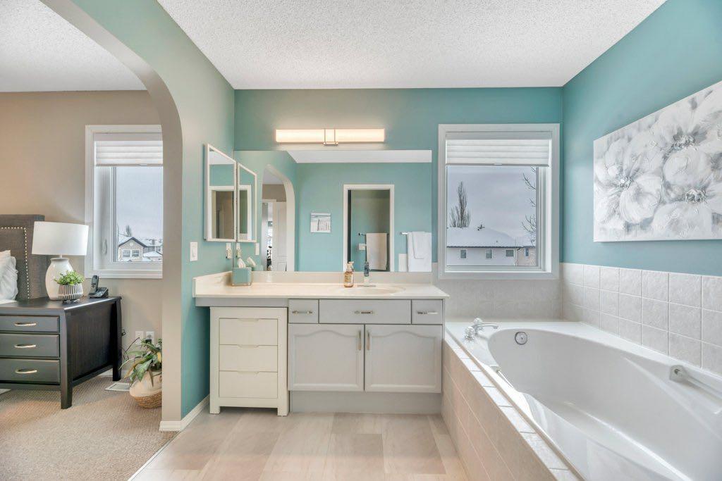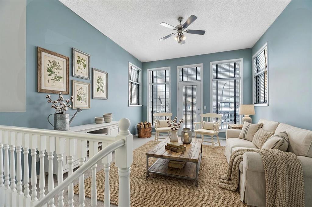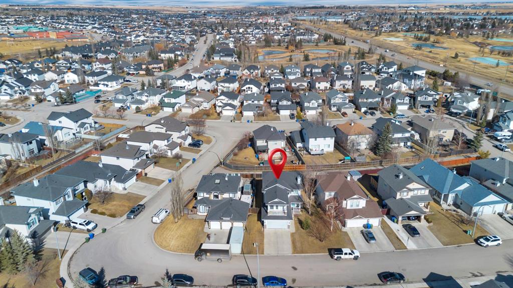 This picture perfect 2 story home in popular Westmere has been lovingly maintained and beautifully upgraded. Step into the front foyer where soaring ceilings and tons of natural light instantly give you that welcome home feeling. A front flex room with arched openings can be used as a formal dining room, home office or maybe a cozy reading nook or music room. The kitchen is like a breath of fresh air with cheery blue and white painted cabinets, white quartz counters, herringbone tile backsplash, stainless steel fridge & stove, a corner pantry and large island with seating. The kitchen is open to both the eating area and the cozy living room complete with a gas fireplace for warmth and ambience. The open layout is ideal for both everyday living and entertaining. An abundance of natural light, and gorgeous rich wood flooring throughout make this space feel bright and open. A 2 pc powder room and laundry are discreetly tucked a couple of steps down from the main level and conveniently situated close to the garage entry. Upstairs you’ll first come to the bright and sunny bonus room located on its own level. This room features a vaulted ceiling, tons of windows and the best little covered deck where you can relax with your morning coffee or curl up with a book and enjoy a beautiful sunset with a glass of wine. This just might be the best room in the house. Up a few more stairs you’ll find 3 generous bedrooms including the spacious primary retreat complete with 4 pc ensuite with soaker tub and a nice walk in closet. The other 2 bedrooms share the main bath and there is a nice sized storage closet in the main hall. The fully finished basement offers endless opportunities to expand your living space as needed and 9’ ceilings and large windows make it bright and welcoming. This is a nice sized family room complete with a cozy gas fireplace and an additional area connected could be used as a games room, kids playroom or home gym. This space could quite easily be converted to a 4th bedroom if needed and the storage room right next to it is roughed in for a bathroom. Outside you’ll enjoy a large backyard that is almost fully fenced and the large deck off the kitchen and eating area has enclosed storage underneath. There is plenty of room for kids and pets to play in the yard plus a back lane behind means that you can store a boat, ATV or small RV in your yard. There is also 220 amp power available if you want to run power to a small shop, shed or hot tub. This home is in an ideal location close to shopping, restaurants, bars, gyms, the library, the lake & beach as well as the many gorgeous parks and pathways Westmere has to offer including a huge off leash dog park. There is even a playground just down the street. Plus you are close to both major routes in and out of Chestermere for an easy commute. Don’t miss your chance to call this beautiful home yours.
