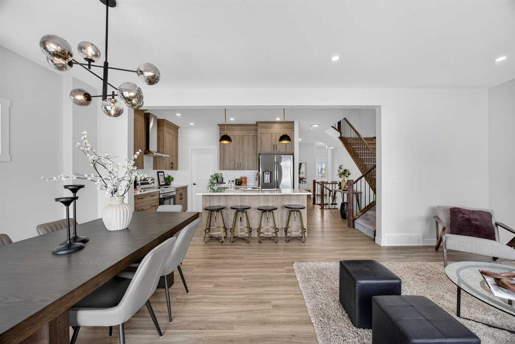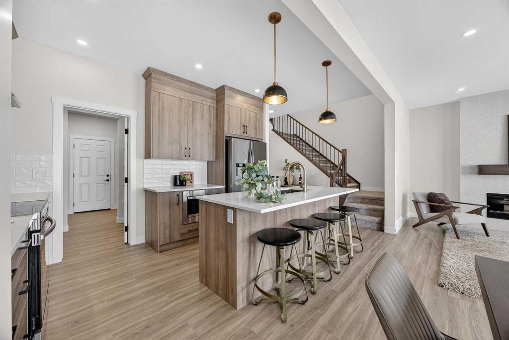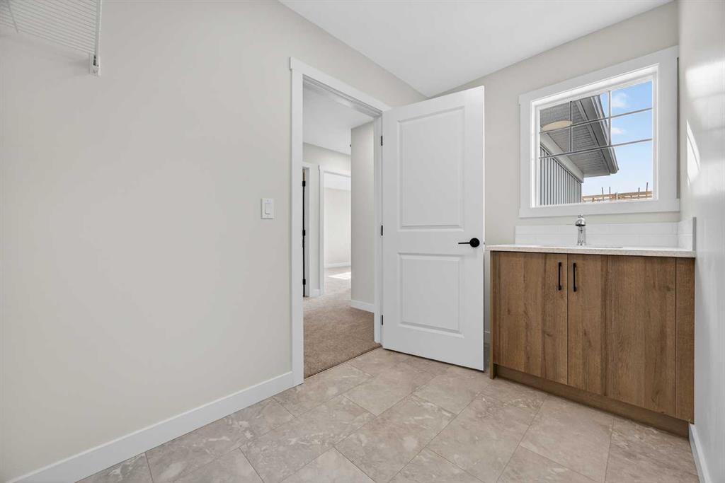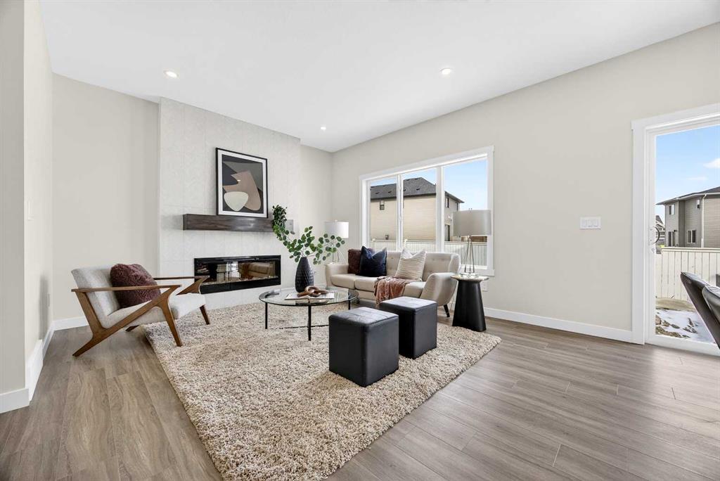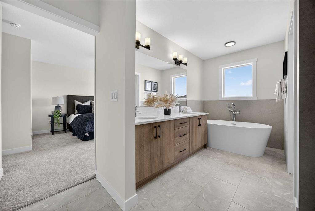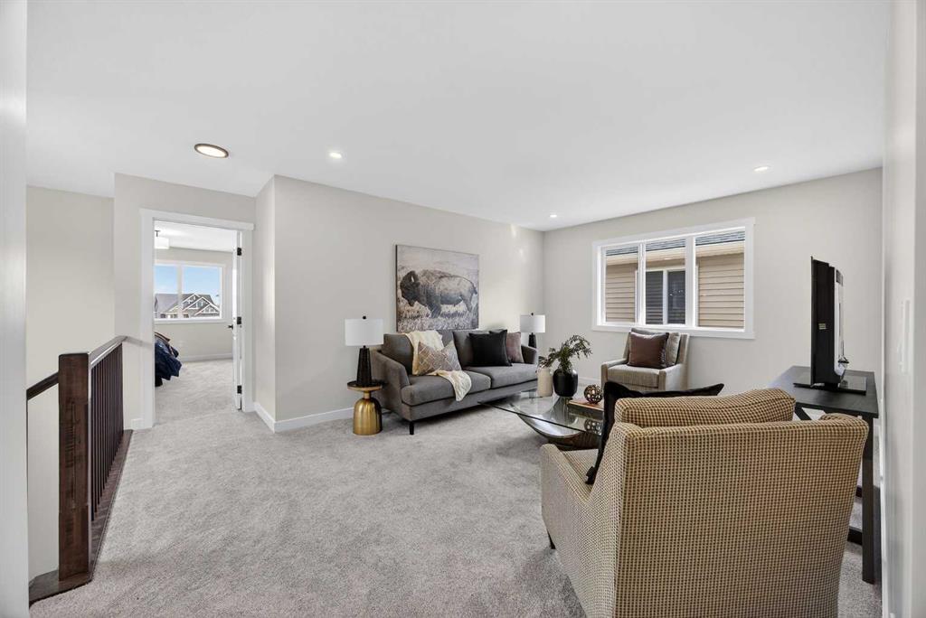 Welcome to the “Leo” a beautifully designed 3-bedroom, 2.5 bathroom brand new home offering over 2000 sq ft of finished living space. Step inside to a bright, inviting main floor featuring luxury vinyl plank flooring that spans the entire level and is complemented by 9-foot ceilings. The chef's kitchen showcases sleek cabinetry with stylish black hardware, paired with a crisp white tile backsplash, elegant quartz countertops, and stainless steel appliances. The living room features a stunning floor-to-ceiling tiled feature wall, creating a beautiful focal point. Adjacent to the living space, the dining area is ideal for entertaining and flows seamlessly to the outdoors. Completing the main floor is a practical mudroom just off the double-attached garage, a spacious pantry, and a convenient powder room. Upstairs, you'll find a central bonus room that provides separation between the primary suite and the secondary bedrooms, offering both comfort and privacy. The primary retreat is generously sized and features a spa-inspired ensuite with dual sinks, a relaxing soaker tub, and an oversized shower, as well as a truly impressive walk-in closet. A full bathroom complements two additional well-sized bedrooms, while the upstairs laundry room adds everyday convenience. The unfinished basement, with 9-foot ceilings, offers a blank canvas for your future development ideas. Bayview is a beautiful community with parks, benches and pathways that meander throughout the community and along the canals. Kids and adults alike will enjoy the outdoor basketball nets, gym, amphitheatre and tennis courts that will convert into a skating rink in the winter. Come and see all the amenities that Bayview has to offer for yourself! *RMS has been applied to construction drawings provided by the builder. Taxes to be assessed. Open House Sat/Sun, March 21/22 1-3 pm.