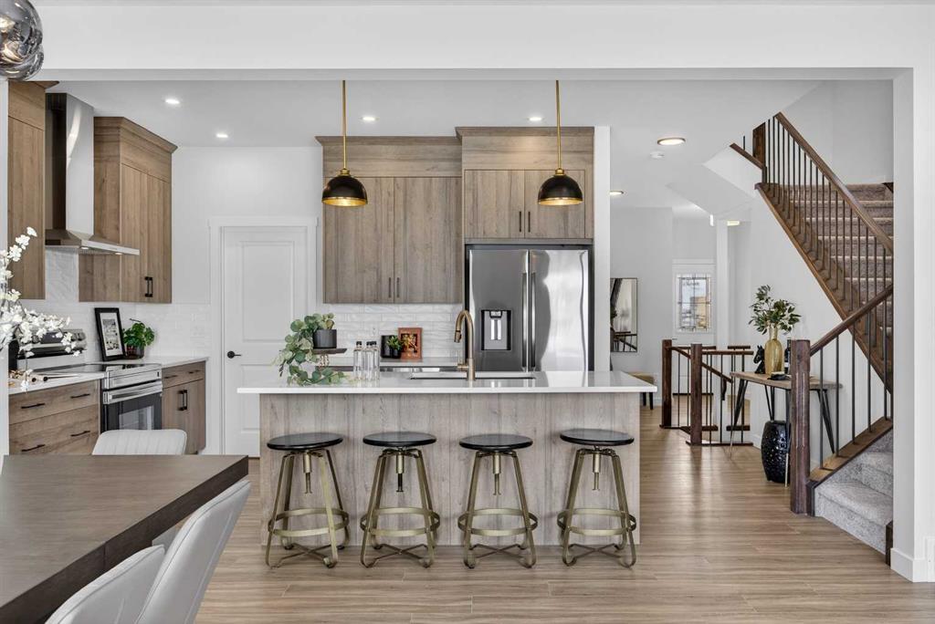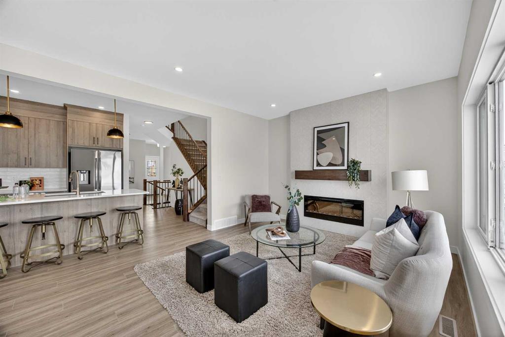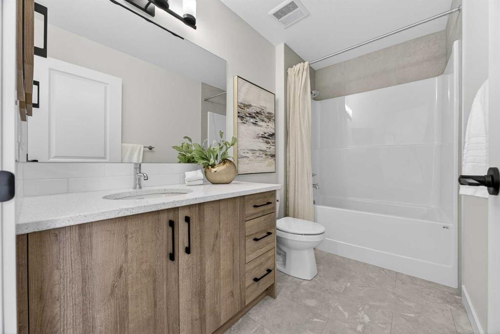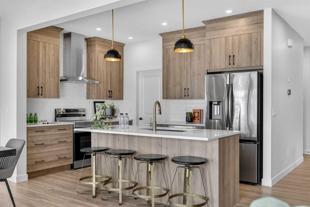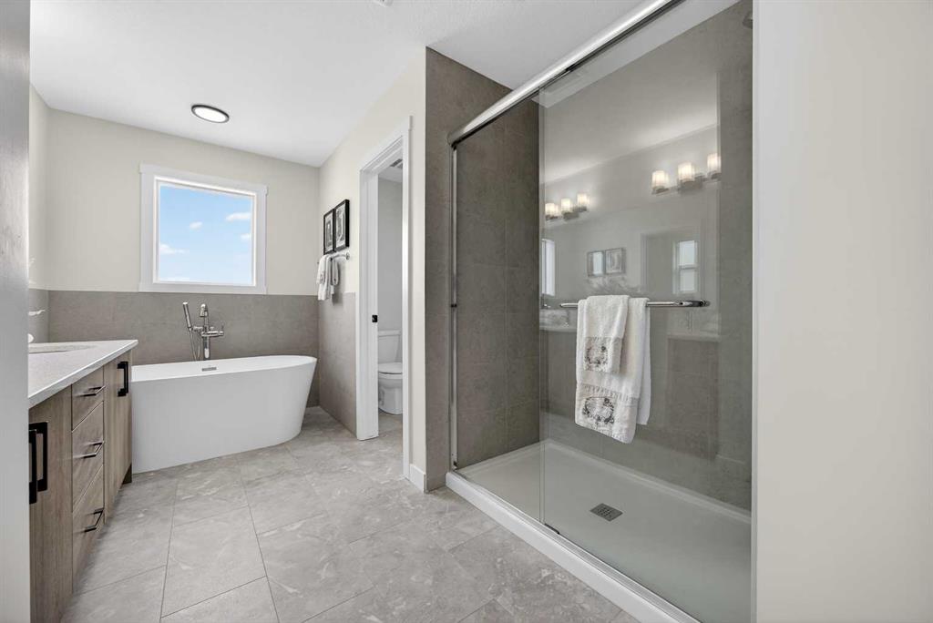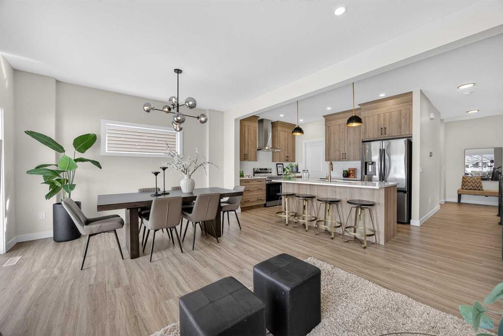 Welcome to the “Leo” a beautifully designed 3-bedroom, 2.5 bathroom brand new home offering over 2000 sq ft of finished living space. Step inside to a bright, inviting main floor featuring luxury vinyl plank flooring that spans the entire level and is complemented by 9-foot ceilings. The chef's kitchen showcases sleek cabinetry with stylish black hardware, paired with a crisp white tile backsplash, elegant quartz countertops, and stainless steel appliances. The living room features a stunning floor-to-ceiling tiled feature wall, creating a beautiful focal point. Adjacent to the living space, the dining area is ideal for entertaining and flows seamlessly to the outdoors. Completing the main floor is a practical mudroom just off the double-attached garage, a spacious pantry, and a convenient powder room. Upstairs, you'll find a central bonus room that provides separation between the primary suite and the secondary bedrooms, offering both comfort and privacy. The primary retreat is generously sized and features a spa-inspired ensuite with dual sinks, a relaxing soaker tub, and an oversized shower, as well as a truly impressive walk-in closet. A full bathroom complements two additional well-sized bedrooms, while the upstairs laundry room adds everyday convenience. The unfinished basement, with 9-foot ceilings, offers a blank canvas for your future development ideas. Bayview is a beautiful community with parks, benches and pathways that meander throughout the community and along the canals. Kids and adults alike will enjoy the outdoor basketball nets, gym, amphitheatre and tennis courts that will convert into a skating rink in the winter. Come and see all the amenities that Bayview has to offer for yourself! *RMS has been applied to construction drawings provided by the builder. Taxes to be assessed. Open House Sat/Sun, March 21/22 1-3 pm.