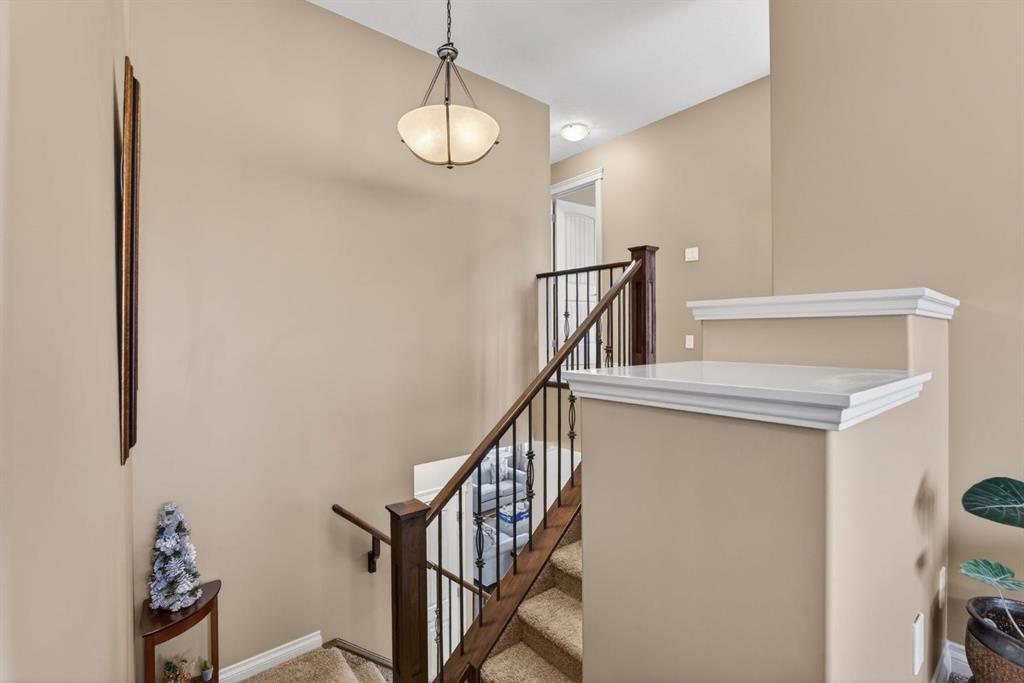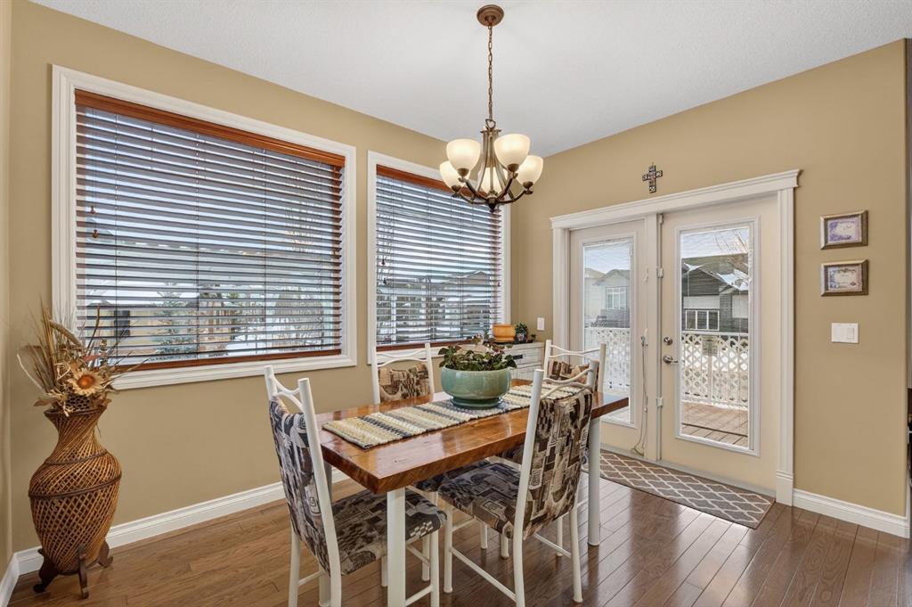 Welcome to this beautifully maintained two-storey home in the highly sought-after community of Air Ranch in Okotoks. Offering over 2,900 sq ft of developed and air conditioned living space on a desirable 7300+ sq ft corner lot . This spacious home is fully loaded with thoughtful upgrades, a functional layout, and a sunny south-facing backyard. It is perfectly designed for comfortable family living and entertaining. Step inside to a bright and inviting main floor featuring an open-concept design with large windows outfitted with Hunter Douglas window treatments that flood the space with beautiful natural light. The spacious living room is anchored by a cozy gas fireplace, creating the perfect place to unwind. The kitchen is both stylish and practical, complete with a large island, granite counter tops, an upgraded stainless steel appliance package including a gas stove, a generous sized walk-through pantry, and ample elegant cabinetry, seamlessly connecting to the breakfast nook and providing easy access to the backyard. A convenient mudroom adds everyday functionality with a storage bench . Upstairs, you’ll find a generous bonus room outfitted with an inviting corner gas fireplace, making this an ideal place for a family hangout, media space, or playroom. There are three good sized bedrooms that offer beautiful mountain views. The primary suite provides a relaxing retreat with a spacious walk-in closet and a luxurious 5-piece ensuite featuring dual vanities, a soaking tub, and an elegant fully tiled shower and extra storage. A full 4-piece bathroom and convenient upper-level laundry that hosts front load washer and dryer and a convenient laundry sink that is accessible to the primary closet complete this floor. The builder designed and professionally developed basement expands your living space with a spacious recreation room featuring a custom wet bar, an additional bedroom with a murphy bed, and a 3-piece bathroom making it a great space for guests or extra living space. The outside of the home is a standout feature allowing you to enjoy the fully fenced south-facing backyard showcasing a spacious two-tiered deck with a gas line for BBQ, ideal for summer gatherings and family fun and a shed for convenient storage of yard tools. The extra wide driveway offers an abundance of additional parking options. The spacious double attached garage is ideal for the car enthusiast, hobbyist, or organized homeowner, featuring epoxy floors, heavy duty overhead storage, and a custom Proslat wall organization. Extra bonuses include a Kinetico water softener and vacuflo central vacuum system. This fabulous home is located close to walking paths, parks, and all the great amenities, this home offers the perfect balance of space, comfort, and location. Don’t miss your chance to see this one today.