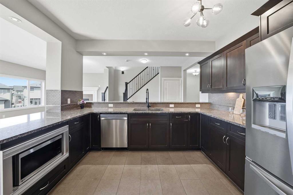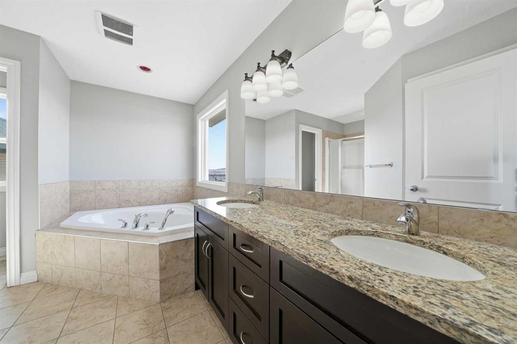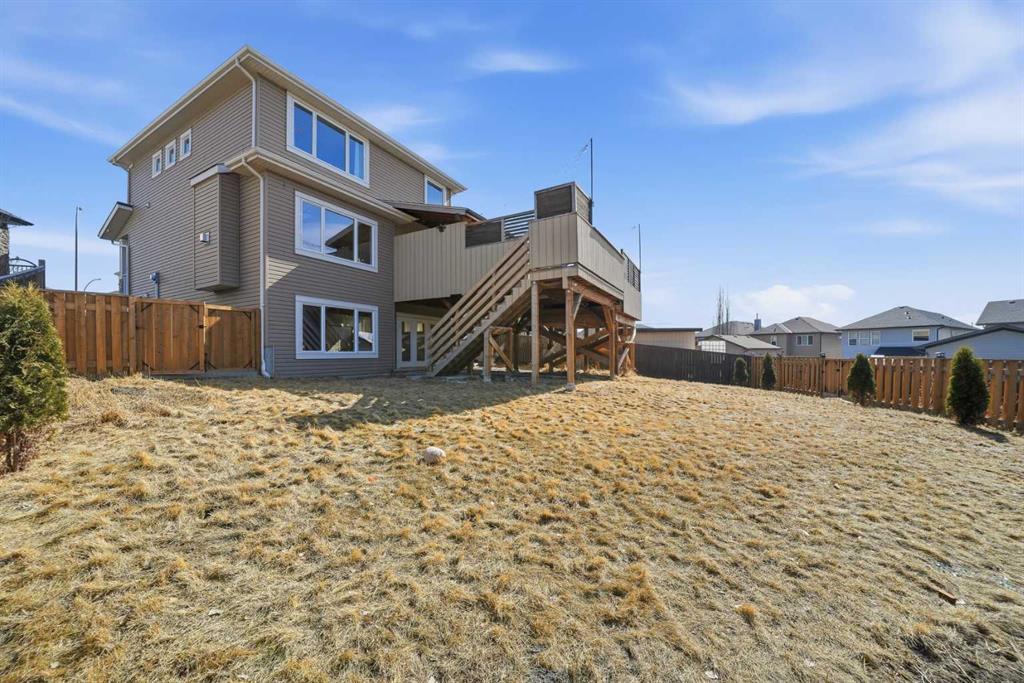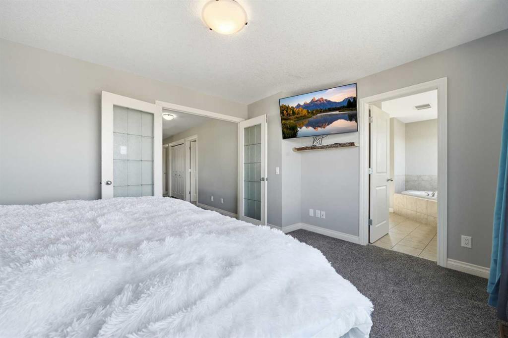 Welcome to 110 Heritage Place — a truly one-of-a-kind, custom-built Assured Home set on an expansive 8,600 sq. ft. lot in a quiet cul-de-sac. Enjoy breathtaking mountain views, a private yard, RV storage, and a massive heated oversized attached double garage. Thoughtfully updated with refreshed flooring and a newly painted basement, this home offers a clean, move-in ready feel while showcasing pride of ownership throughout. Step inside to a spacious ceramic tile foyer with convenient access to a 2-piece powder room and the impressive garage, complete with built-in cabinetry, workbenches, extensive storage, and lift-ready capability — ideal for car enthusiasts. Adding to the home’s thoughtful design, a premium smart dog door activated by your dog’s collar is located near the garage entrance, leading to a covered ramp and fully fenced dog run — a rare and convenient feature for pet owners. The heart of the home features a chef-inspired kitchen with ample counter and cupboard space, a Whirlpool fridge/freezer combo, and a Samsung induction oven. The open dining area leads to a stunning 700 sq. ft. deck with a built-in hot tub and wiring for sound and heat, perfect for year-round entertaining. The inviting living room is anchored by a cozy gas fireplace. Upstairs, brand-new carpet leads to a bright hallway and a spacious primary retreat with French doors, a custom built-in king-size bed, integrated lighting, and incredible mountain views. The ensuite offers a corner soaker tub, granite countertops, and a double vanity. Two additional bedrooms share a Jack & Jill bathroom, along with a dedicated laundry room and a large bonus room filled with natural light. The walk-out basement provides excellent flexibility with its own living space, appliances, and laundry — ideal for extended family or guests. A secondary suite would be subject to approval and permitting by the City/Municipality. Outside, the expansive backyard offers room for gardening, outdoor living, and rare on-site RV storage. With its unique design, recent updates, and versatile layout, this home is an exceptional opportunity for large or multigenerational families, or buyers seeking added flexibility and long-term value.