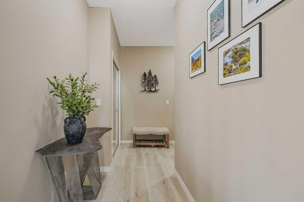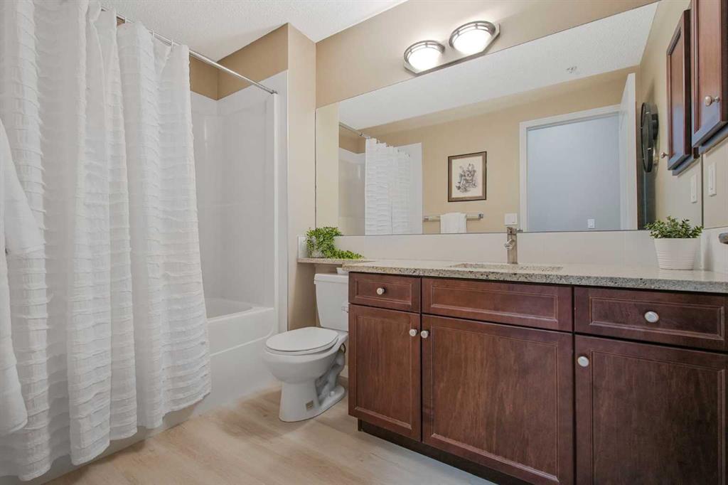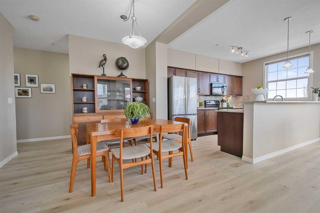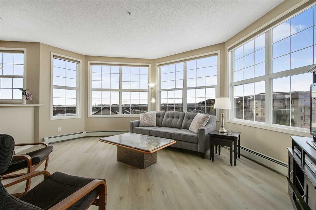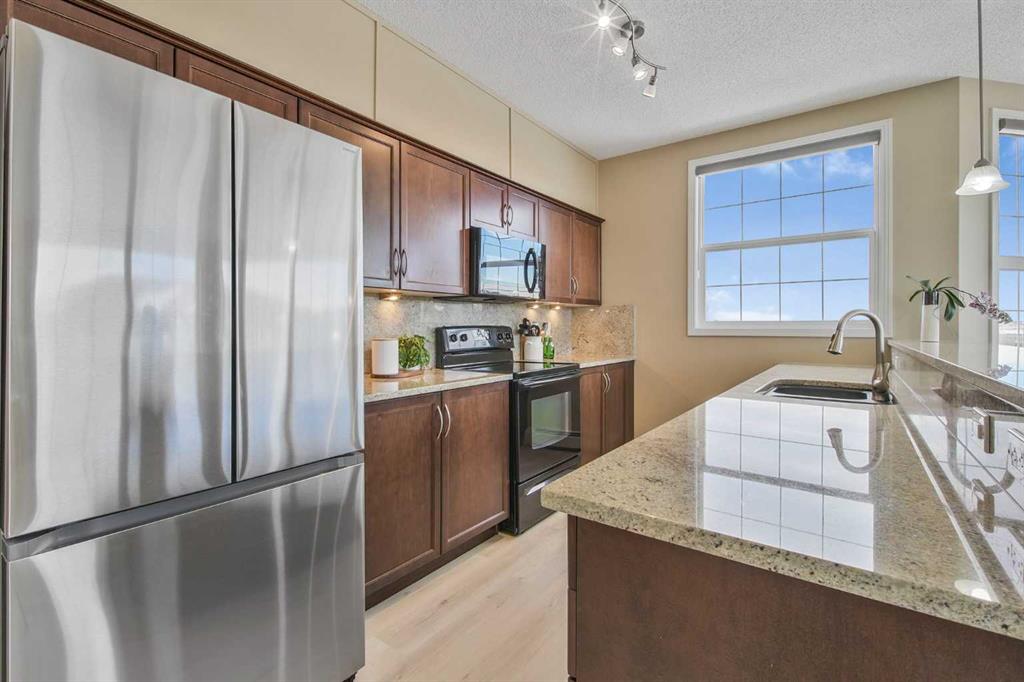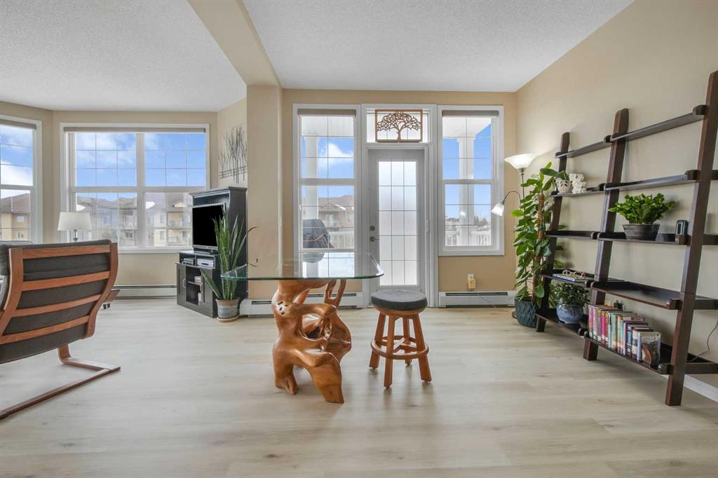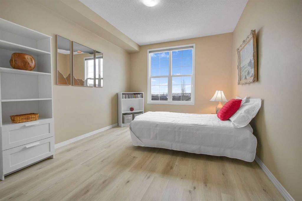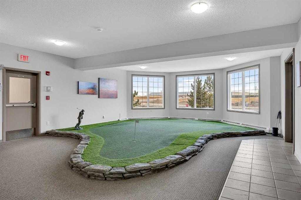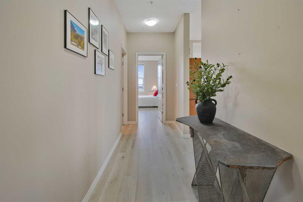 OPEN HOUSE SATURDAY APRIL 4TH 2-4 PM - VIEWS, VIEWS & MORE VIEWS! The wow factor this home presents the moment you walk through the door is undeniable. Expansive windows draw your eye immediately to sweeping town and valley views stretching toward the mountains while filling the home with natural light, creating a space that feels both elevated and incredibly inviting. Offering OVER 1,200 sq ft, this beautifully maintained 2 bedroom, 2 bathroom residence combines spacious design with LOCK & LEAVE CONVENIENCE. Thoughtfully updated with luxury vinyl plank flooring, granite countertops and backsplash, PREMIUM REMOTE HUNTER DOUGLAS BLINDS worth over $12,000, and a new oversized Samsung refrigerator. The open layout supports both comfortable everyday living and effortless entertaining. The generous living and dining area feels more like a bungalow than a typical condominium. The living space extends effortlessly onto the private balcony, enhanced by a custom retractable sliding screen doors allowing seamless indoor outdoor living. The kitchen sits at the heart of the home with ample cabinetry, functional workspace and a seamless connection to the main living area, allowing you to remain part of the conversation while preparing meals or hosting guests. The primary suite is a true retreat with walk in closet and private ensuite, while the second bedroom offers flexibility for guests, a home office or hobby space. Located in the highly sought after Penncross complex in Crystal Green, residents enjoy a quiet, exceptionally well managed building distinguished by its unique architectural design, with charming rooflines, varied elevations and a courtyard centered layout creating visual character and a true sense of community. Amenities include themed common areas on each floor, a well equipped fitness room, beautifully maintained courtyard with outdoor BBQ area, TWO TITLED HEATED UNDERGROUND PARKING STALLS, assigned storage and elevator access. Just steps from Crystal Ridge Golf Course and with YEAR-ROUND LAKE PRIVILEGES at Crystal Shores Lake including swimming, skating and recreation, this location offers an exceptional lifestyle balance of recreation, tranquility and convenience. Whether downsizing, relocating or simply seeking a brighter place to call home, this standout property represents one of the most desirable condo opportunities currently available in Okotoks. AND YES… THE VIEWS REALLY ARE THAT GOOD.