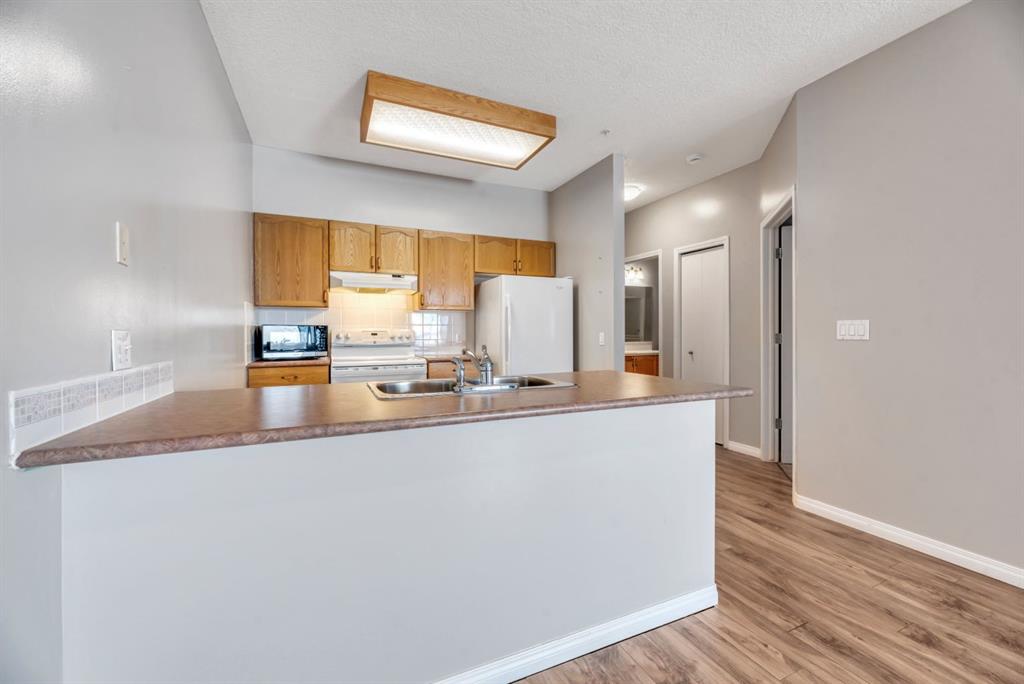 #106–3 Parklane Way, Strathmore – Comfortable 55+ Living with Exceptional Amenities Welcome to easy, maintenance-free living in this bright main floor condo offering over 770 sq. ft. in a well-maintained 55+ building in Strathmore. This inviting home features an open floor plan designed for comfort and convenience, with durable laminate flooring and a functional kitchen complete with an eat-up counter—perfect for casual meals or entertaining. The spacious layout provides a comfortable living area filled with natural light and easy main-floor access, ideal for those seeking a relaxed, accessible lifestyle. Residents of this friendly community enjoy an impressive list of on-site amenities, including: Wellness room, Library, Hair salon, Guest suite for visiting friends and family, Craft room and workshop area, Fully equipped kitchen for resident gatherings and social events, Outdoor RV parking area. The condo fees offer outstanding value, covering:Parking,Snow removal, Water and sewer,Trash removal, Heat, Cable TV, Grounds maintenance, Access to all building amenities. If you're looking for a welcoming 55+ community with excellent amenities and low-maintenance living, this main-floor unit at #106–3 Parklane Way is a fantastic opportunity.Enjoy the comfort, community, and convenience of Strathmore living where you are surrounded by beautiful pars, walking paths, Kinsman Park and Lake. Book your showing today!