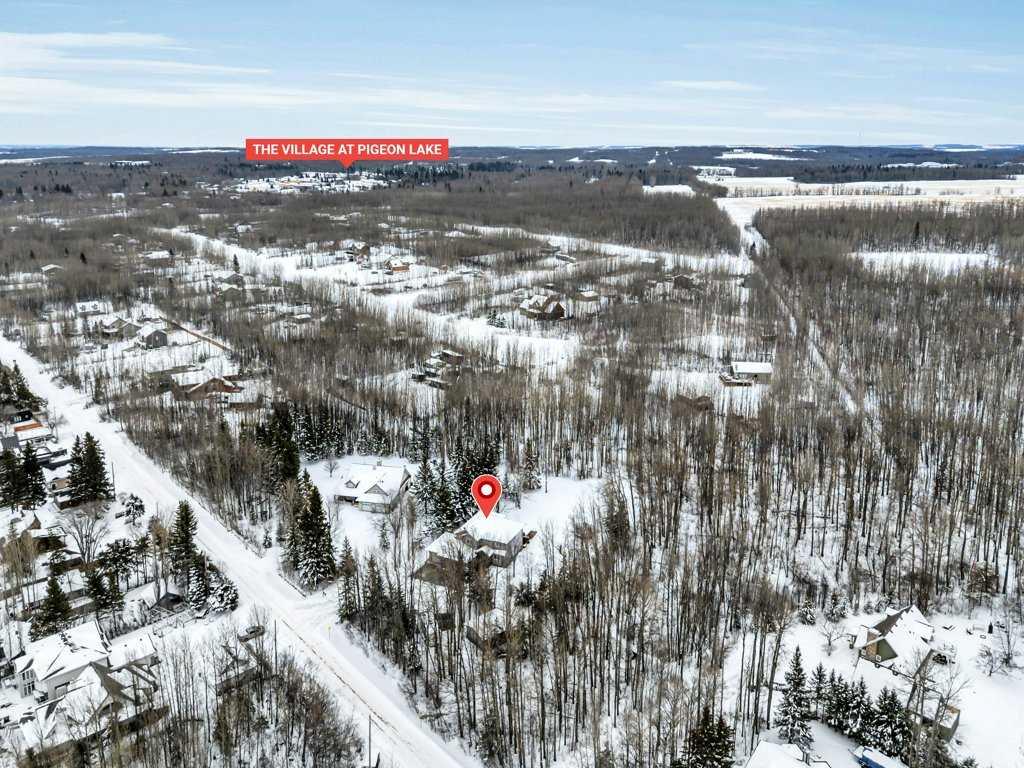 Welcome Home to #111 in the Heart of Crystal Springs where your Lake Life Begins! This 1.77 acre YES...you read that correctly...1.77 acre parcel is Perfectly situated Directly across from Lake Access, near The Village of Pigeon Lake, Golf, Dining, Spa & Shops. Very well maintained 4 bdrm, 3 bath home. The Soaring Ceiling in the living room with a cozy gas fireplace greet you as you step in the spacious entry. Beautiful Kitchen cabinetry and a bright dining area in this open concept design allow for large gatherings. Oversized windows for natural sunlight. Triple Garage & Detached Workshop. The Privacy of this expansive lot cannot be overstated, a ravine on one side and treed area behind with nature walking trails. Recent upgrades to this family home make it move in ready. They include Kitchen appliances 3 years ago, New flooring, Upgraded Power & new Roof on Detached Workshop and Eavestrough Guards. Imagine waking up with all these options. Wind up your day around the huge firepit area. 5'crawl space.