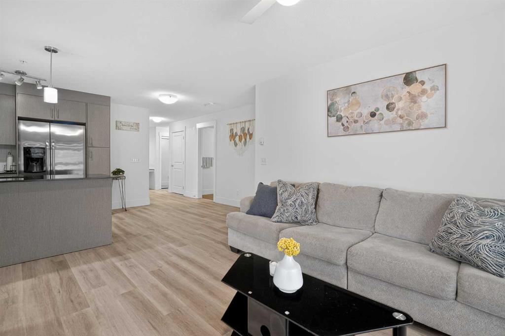 Discover exceptional ground-floor living in this brilliantly lit corner unit at #4106, 240 Skyview Ranch Road NE. Spanning roughly 940 square feet, this two-bedroom, two-bathroom residence welcomes you with a wonderfully spacious and dedicated entryway, instantly providing a house-like feel that keeps the main living areas distinct and clutter-free. Moving inside, the open-concept living room is bathed in gorgeous natural light courtesy of the coveted South and East-facing windows, creating a warm and inviting atmosphere throughout the day. The interior boasts a refined, modern aesthetic with crisp paint and durable luxury vinyl plank flooring, both newly updated in 2025. Cooking and entertaining are effortless in the stylish kitchen, beautifully finished with sleek quartz countertops, a casual breakfast bar, and a stainless steel appliance package. The primary bedroom serves as a private retreat complete with his and hers closets and a full ensuite bathroom, while the generous second bedroom and additional bathroom offer fantastic versatility for family or a home office. What truly sets this property apart is the unparalleled convenience of its layout. Ground-level patio doors open directly to the outside, allowing you to bypass elevators and communal hallways entirely. This creates a seamless daily routine, especially for families, as students can step out the door and stroll straight across the street to Prairie Sky School. Outdoor enthusiasts will love having soccer and baseball fields just steps away, and commuting is a breeze with a nearby bus stop and quick access to local restaurants and shopping. Complete with a heated underground parking stall conveniently located right next to the elevator, plus abundant street parking directly outside your patio for guests or a second vehicle, this home flawlessly combines smart design with an unbeatable, walkable lifestyle.
