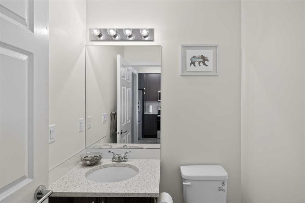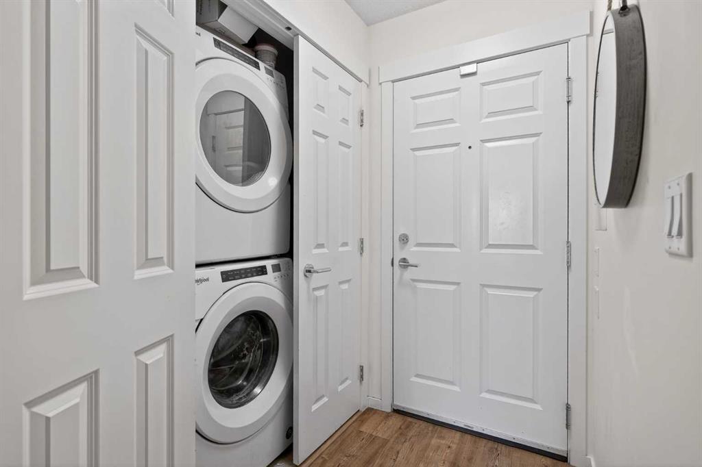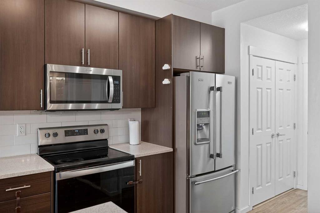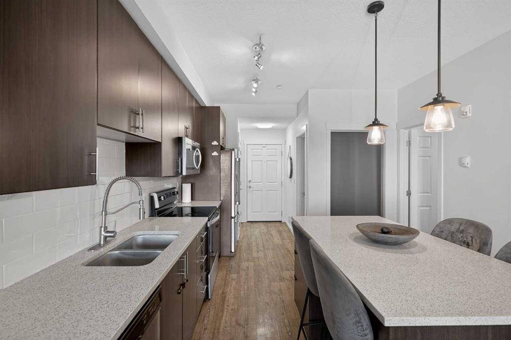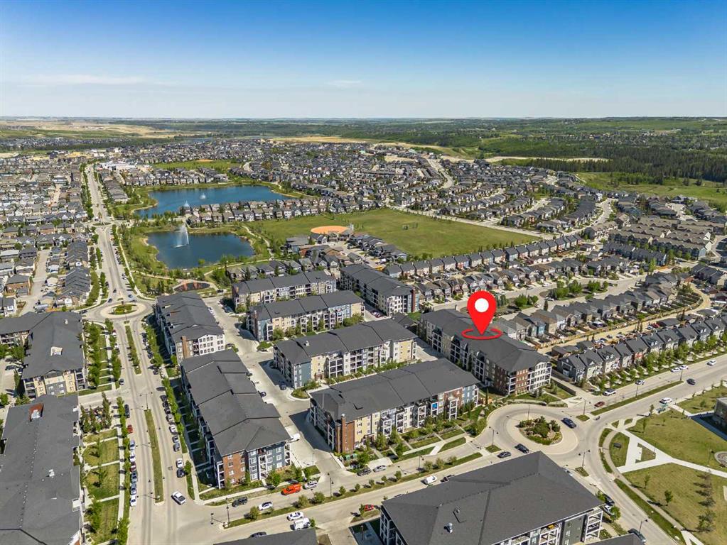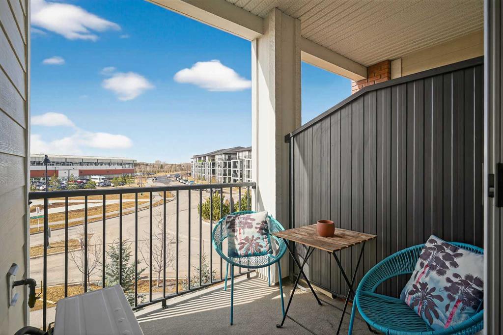 ** OPEN HOUSE SAT APRIL 4th 2-4PM ** Welcome to this beautifully appointed 2-bed 2-bath condo in the sought-after community of Legacy, an exceptional opportunity for first-time buyers or savvy investors. Positioned to capture west-facing views, this inviting home offers the perfect balance of modern design and everyday functionality. Inside, the open-concept layout creates a bright and welcoming atmosphere. The stylish kitchen is the heart of the home, showcasing quartz countertops (both kitchen and baths), contemporary cabinetry, stainless steel appliances, and a generous island that doubles as a casual dining space, perfect for gathering with family or hosting friends. The living area flows effortlessly towards the outdoors through sliding patio doors that open onto your west-facing balcony with gas hookup, creating the perfect spot for evening barbecues while taking in spectacular sunsets. The thoughtfully designed primary suite features a convenient walk-through closet leading directly into a private 4-piece ensuite, offering both comfort and practicality. A versatile second bedroom and half bath provide flexibility for guests or a home office. Stackable laundry is conveniently located adjacent to the kitchen for everyday ease. Comfort is ensured year-round thanks to a professionally installed air conditioning unit, a rare and valuable upgrade in condo living. Additional highlights include a titled underground parking stall (B54) and secure storage unit (B10) located in the heated parkade. Beyond the home itself, the lifestyle here is exceptional. Just moments away is the breathtaking 300-acre Pine Creek Nature Reserve, offering expansive green space, wildlife, and scenic pathways perfect for walking, cycling, and exploring nature. Residents also enjoy easy access to the shops, dining, and services of Legacy Township, along with nearby transit, grocery stores, fitness studios, coffee shops, and everyday amenities. With low condo fees, stunning views, and a prime location surrounded by nature and convenience, this is a rare opportunity to own a home that truly offers everything. Schedule your private showing today and discover why Legacy is one of Calgary’s most desirable communities to call home.