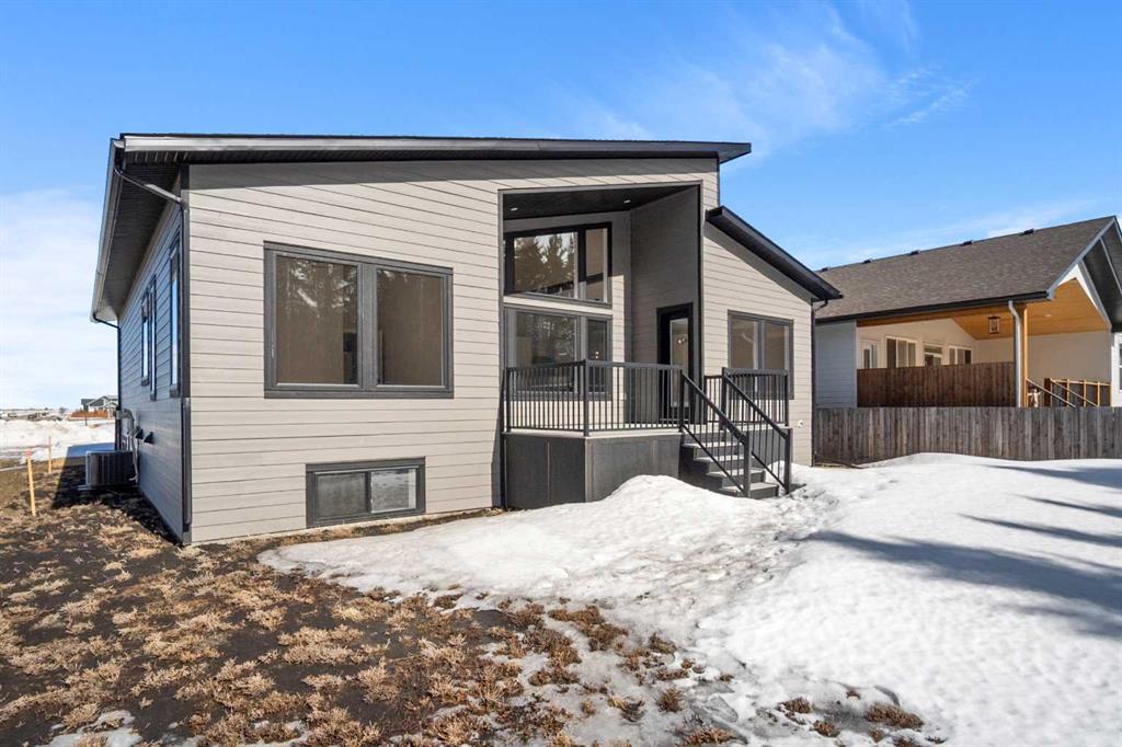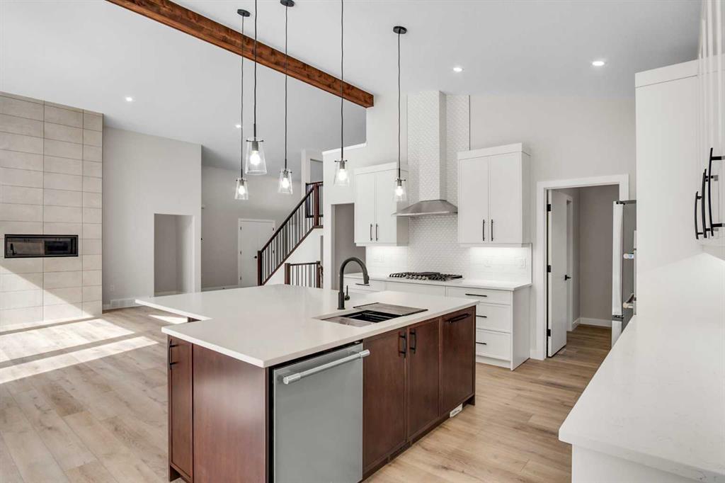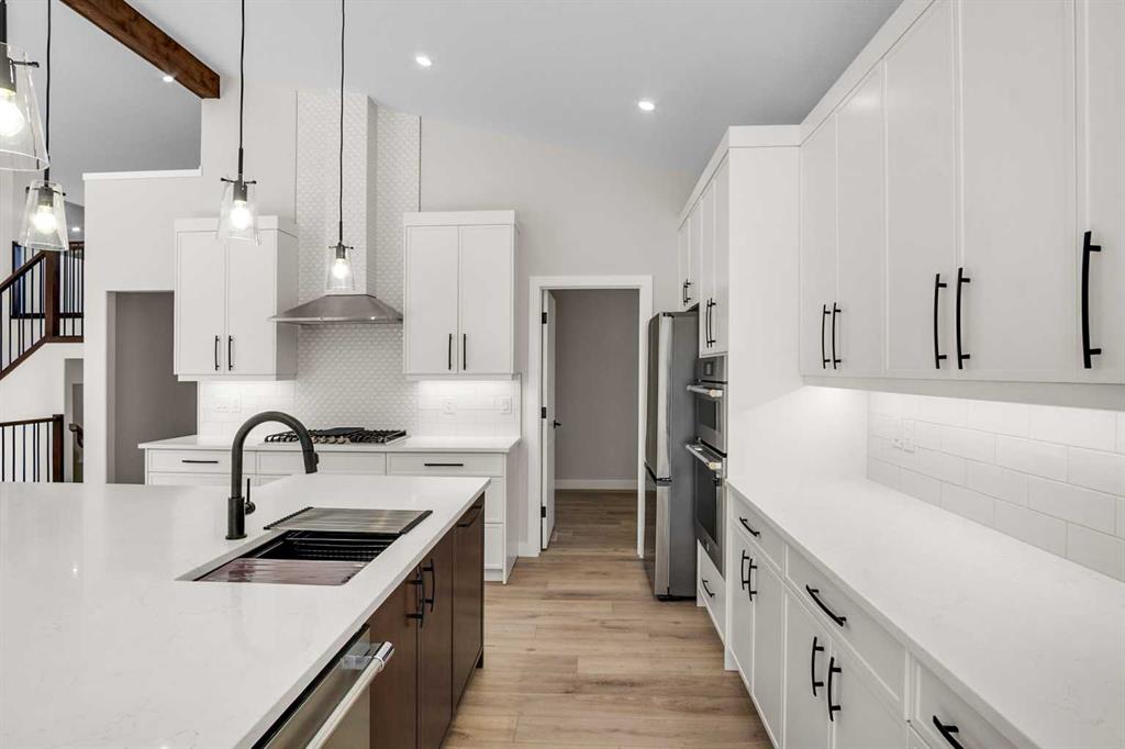 Welcome to this beautifully crafted brand-new bungalow in the Vistas development. With a bonus room above the garage and backing onto a scenic walking path and Imperial Estates Acreages, this home offers both privacy and accessibility. From the moment you step through the grand 8-foot entrance door, you are welcomed into a meticulously designed 4-bedroom, 3-bathroom residence that blends contemporary style with everyday comfort. A mix of luxury vinyl plank, plush carpet, and ceramic tile flooring creates a seamless and sophisticated ambiance throughout. At the front of the home, a spacious bedroom is perfectly positioned near a beautifully appointed 4-piece bathroom, ideal for guests or a private home office. The primary suite is a sanctuary, boasting a generous walk-in closet and a luxurious 5-piece ensuite with a standalone soaker tub offering breathtaking mountain views, a dual vanity, and a separate water closet for added privacy. Above the heated triple-car garage, a versatile bonus room provides endless possibilities—whether a charming playroom, a refined home library, or a serene music retreat. The gourmet kitchen is an entertainer’s dream, featuring sleek quartz countertops, a gas cooktop, double wall ovens, a built-in dishwasher, and an oversized island with seating on all sides. A butler’s pantry, complete with a secondary sink and ample shelving, connects to the adjoining laundry room, ensuring effortless organization. The living room exudes sophistication, centered around a floor-to-ceiling tiled gas fireplace, while oversized windows flood the space with natural light. Step outside onto the no-maintenance composite deck, complete with modern railing and a gas BBQ hookup, perfect for seamless indoor-outdoor entertaining. The fully developed basement is an exceptional extension of the home, featuring 9-foot ceilings, in-floor heating, a spacious mechanical room, abundant storage, a large open living area, a stylish 4-piece bathroom, and two additional well-sized bedrooms. Completing this remarkable home is the heated triple-car attached garage, offering ample space for vehicles, hobbies, and storage. The front yard is beautifully landscaped with lush sod and will have a planted tree in the spring, adding to the home’s striking curb appeal. This residence is a true masterpiece of design and craftsmanship. Don’t miss the opportunity to make this extraordinary home yours—schedule your private viewing today!